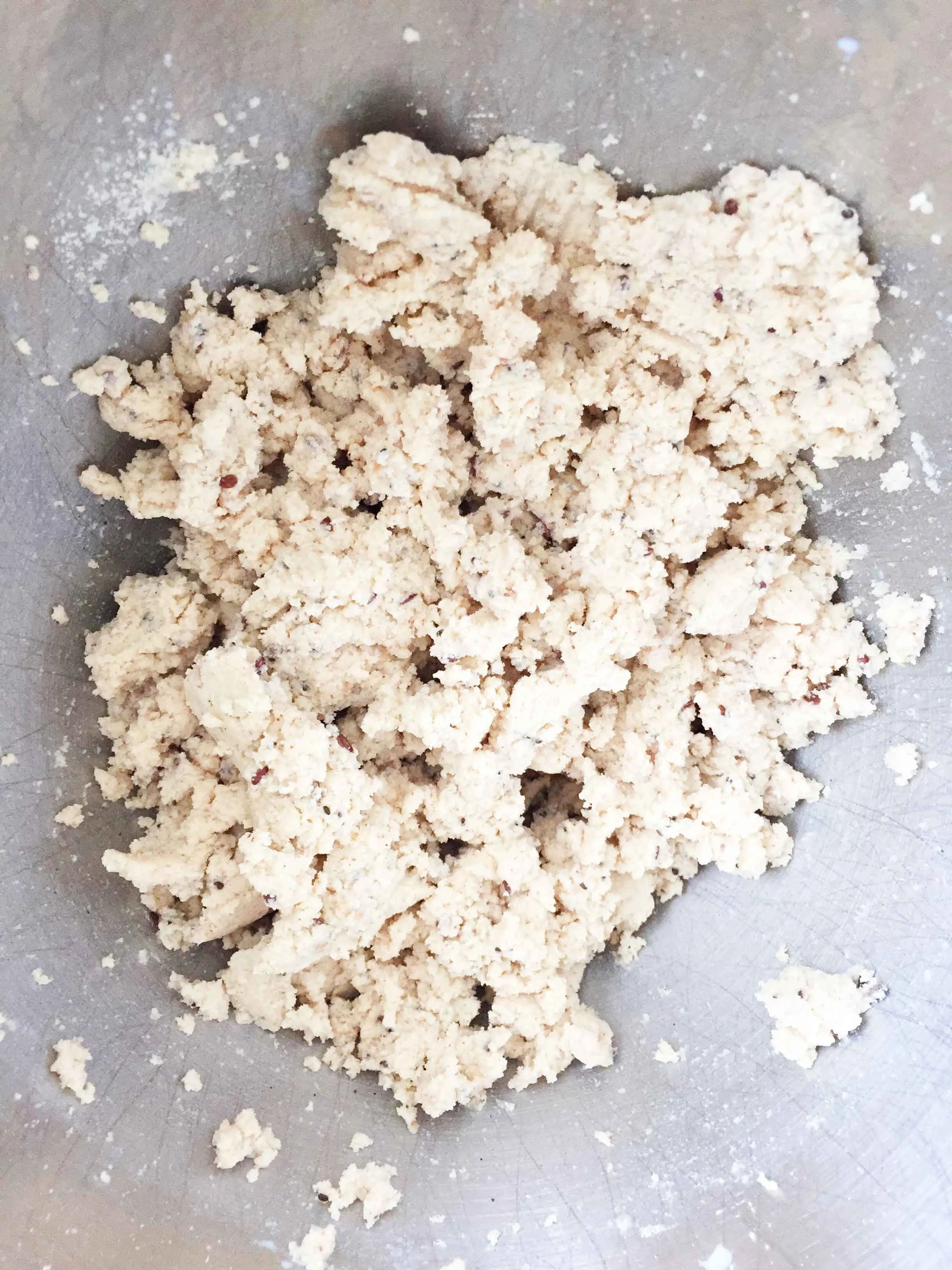 Continue to add in more milk, 1-2 Tbsp. at a time as needed until you get a super thick and 'crumbly' batter.