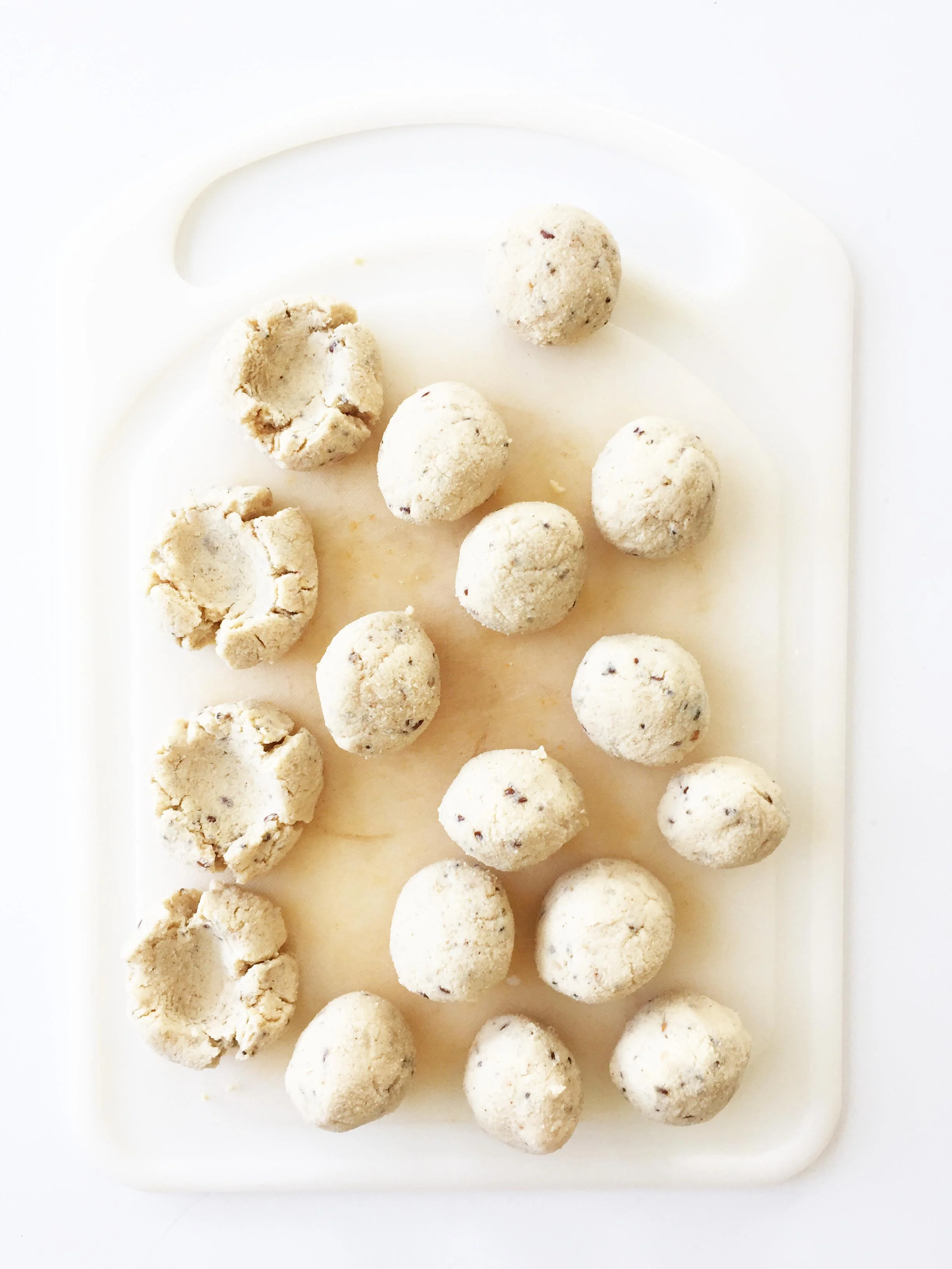 Carefully press a dumb into the middle of each ball to form a 'thumbprint'.