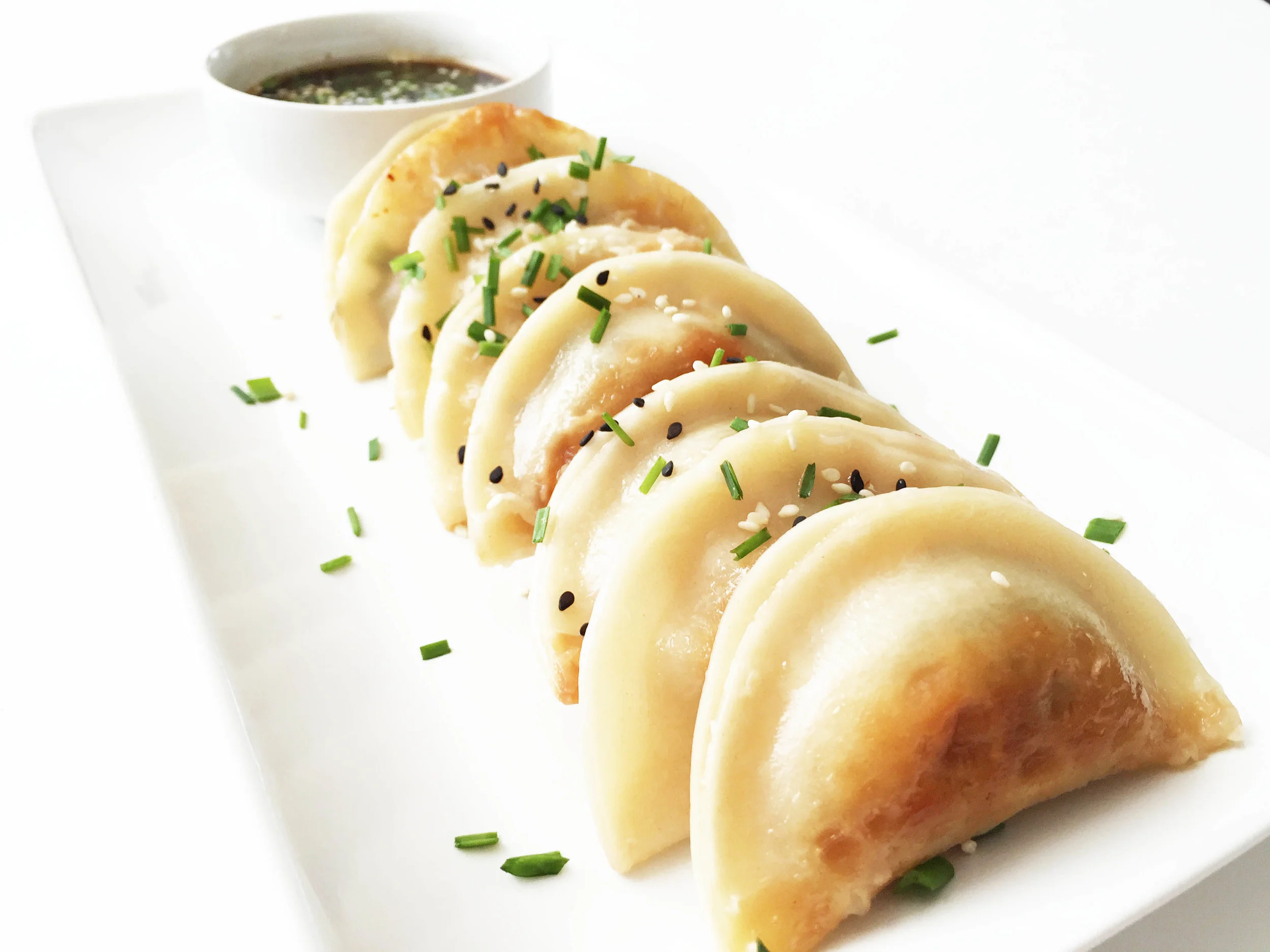 Peach Jalapeño Chicken Potstickers & Spicy Soy Dipping Sauce