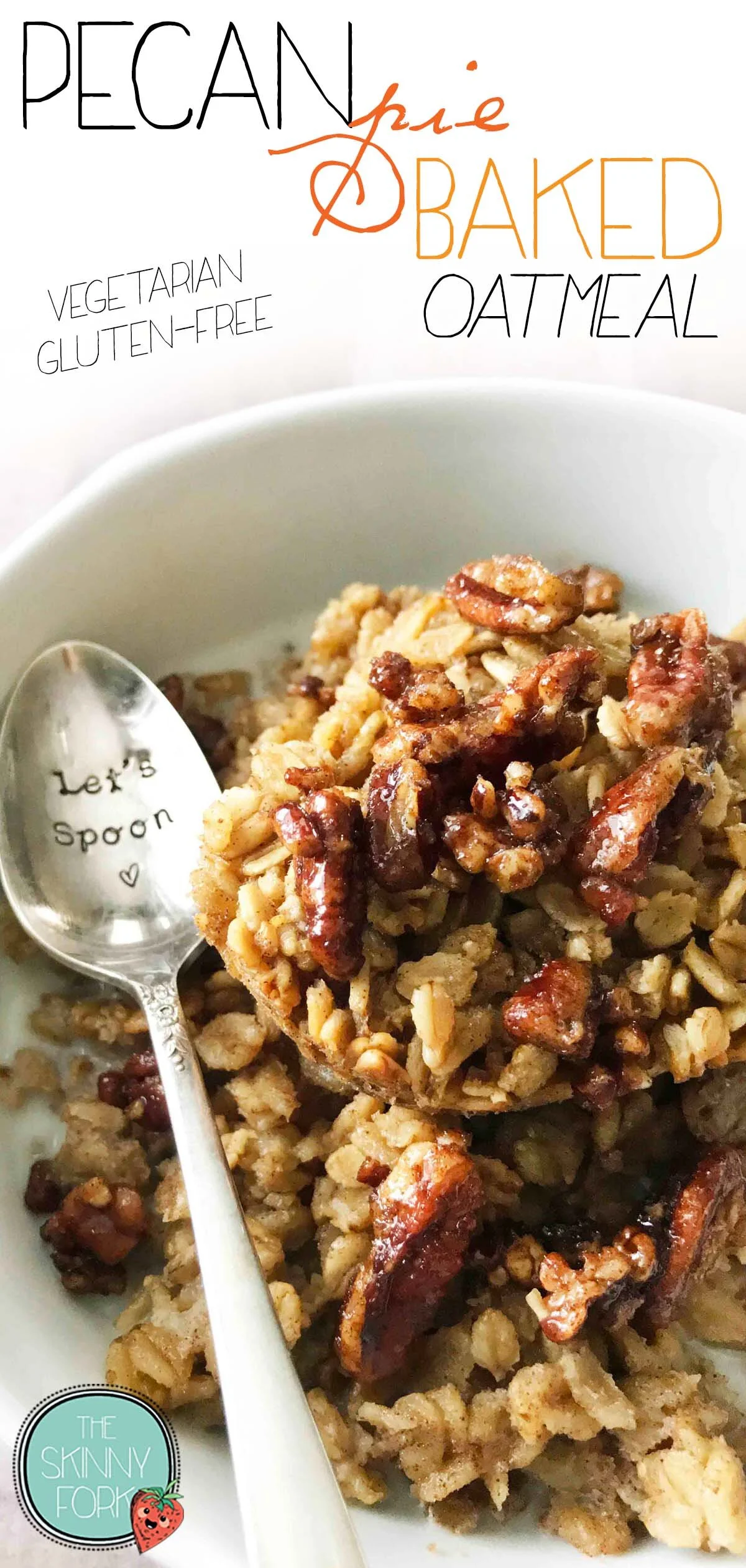 TheSkinnyFork.com Pecan pie in the form of a bowl of oatmeal! Complete with a candied pecan topping and perfect on a cool Fall morning. Prep Time: 12 Hours & 10 Minutes • Cook Time: 30 Minutes