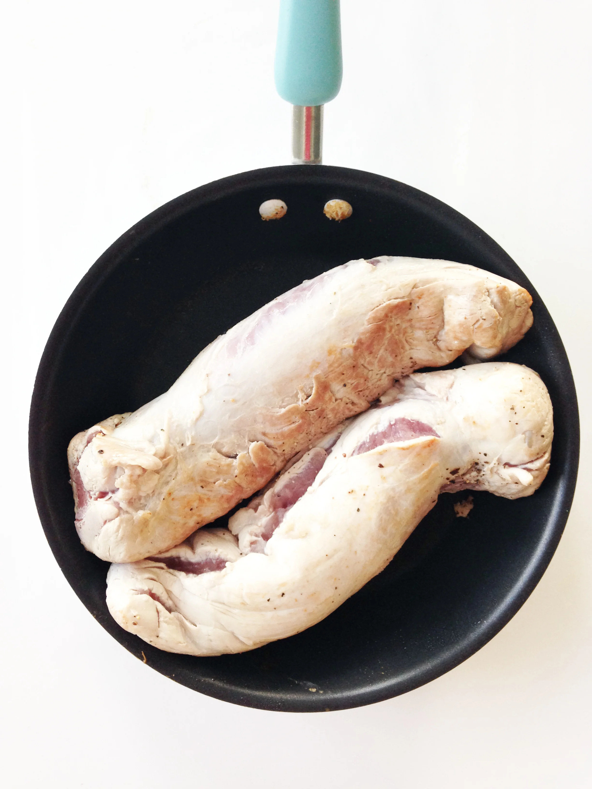 Lightly coat a large skillet with non-stick cooking spray and sear the tenderloins off on a medium-high heat setting for a few minutes.