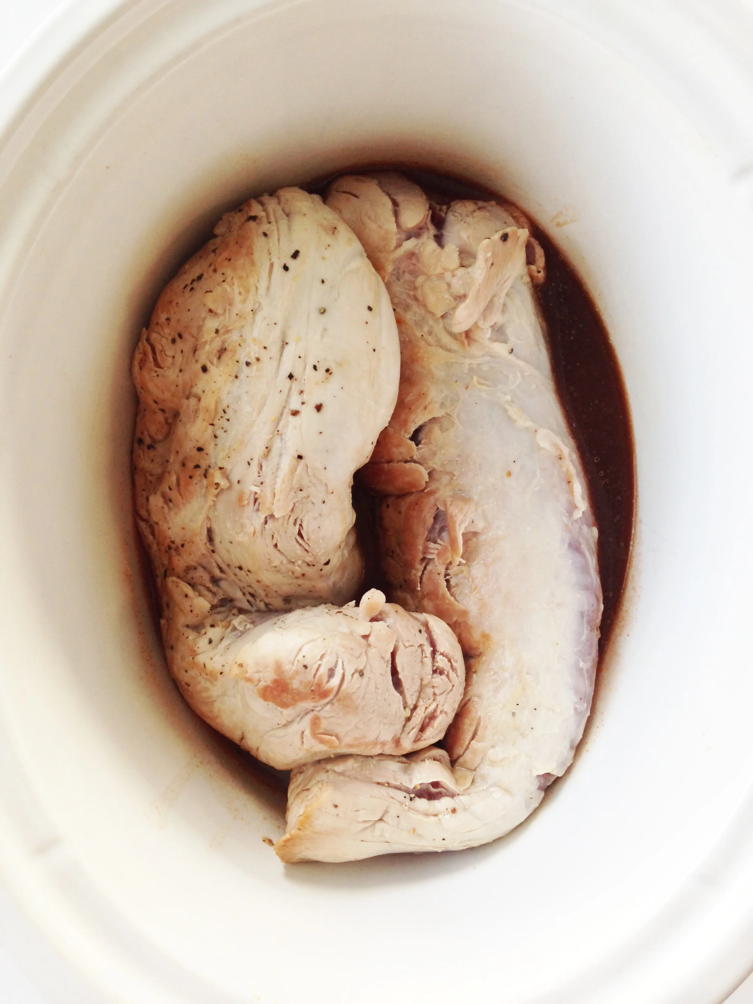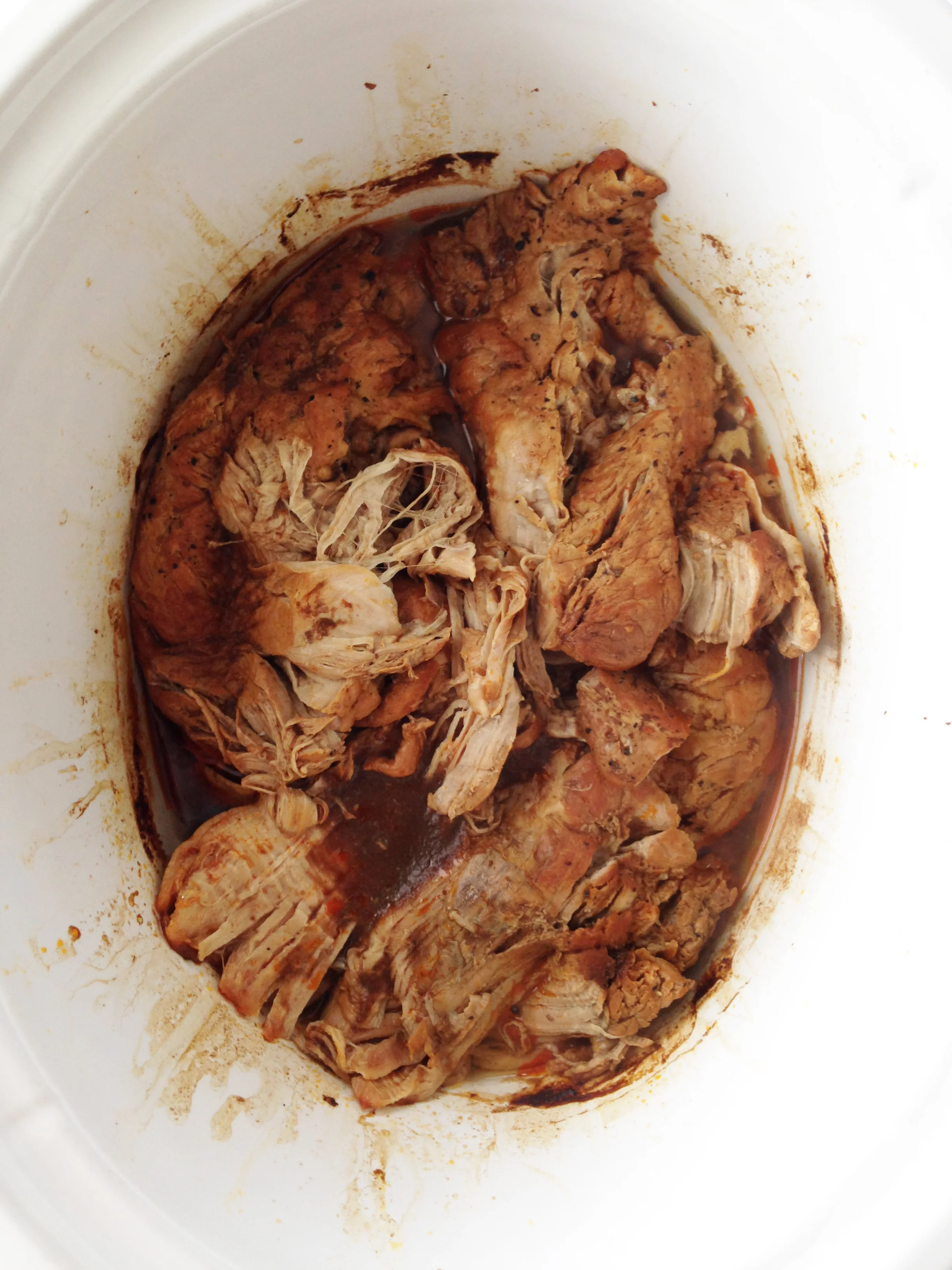 Transfer the pork into the crock pot as well, cover and cook on high for 4-6 hours or low for 6-8 hours.