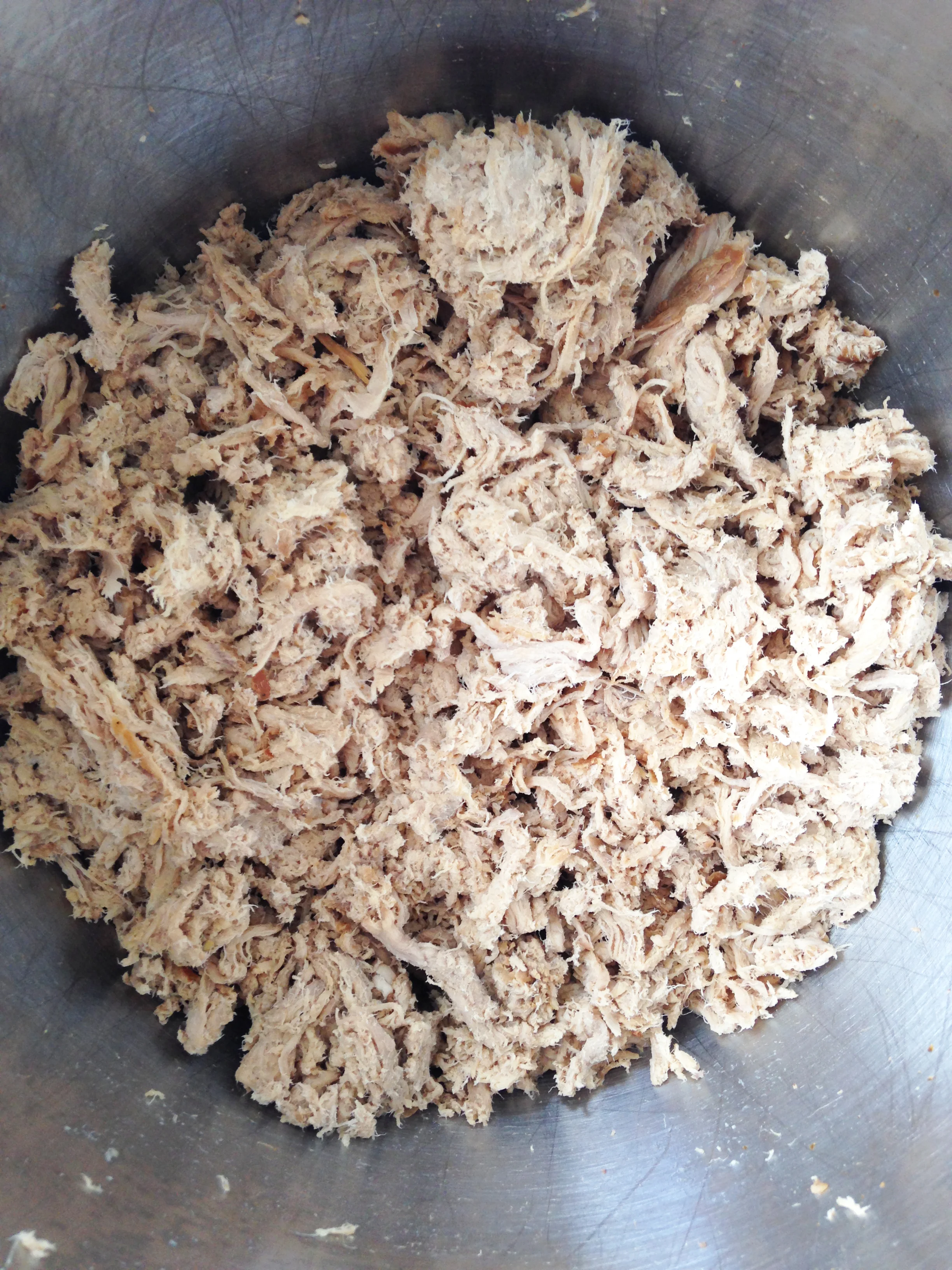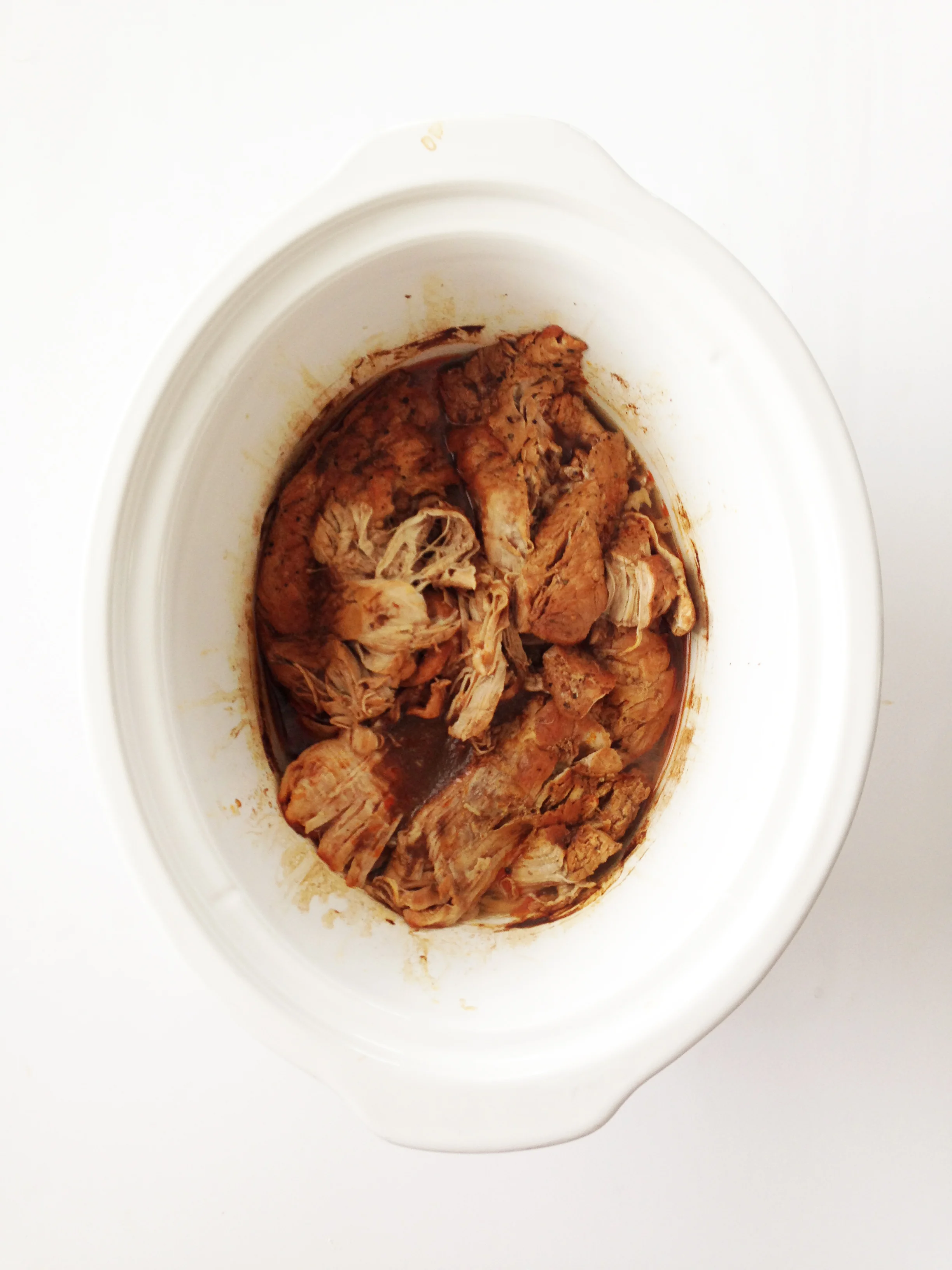 Shred via your method of choosing, whether with two forks or a stand mixer with the paddle attachment.