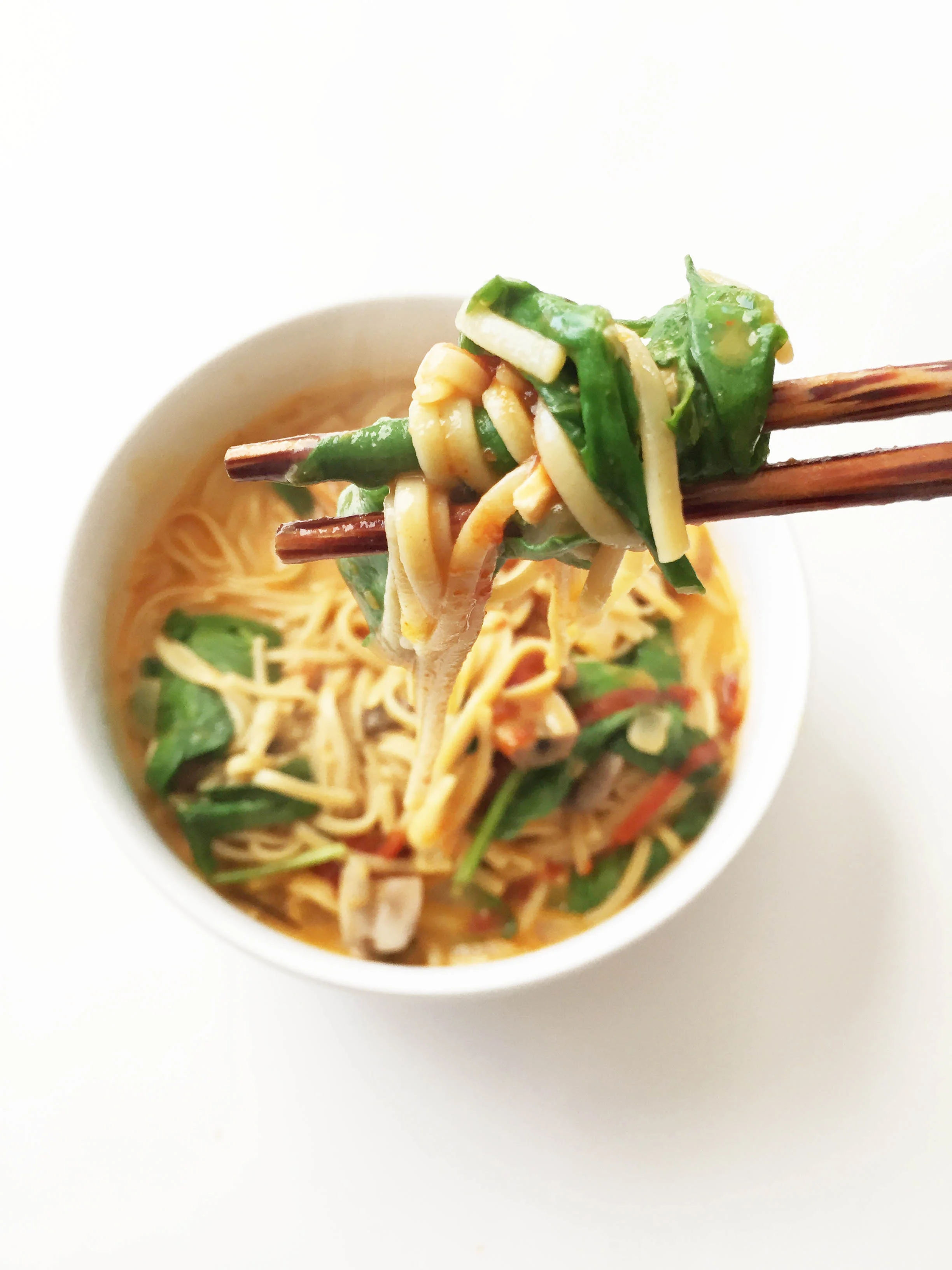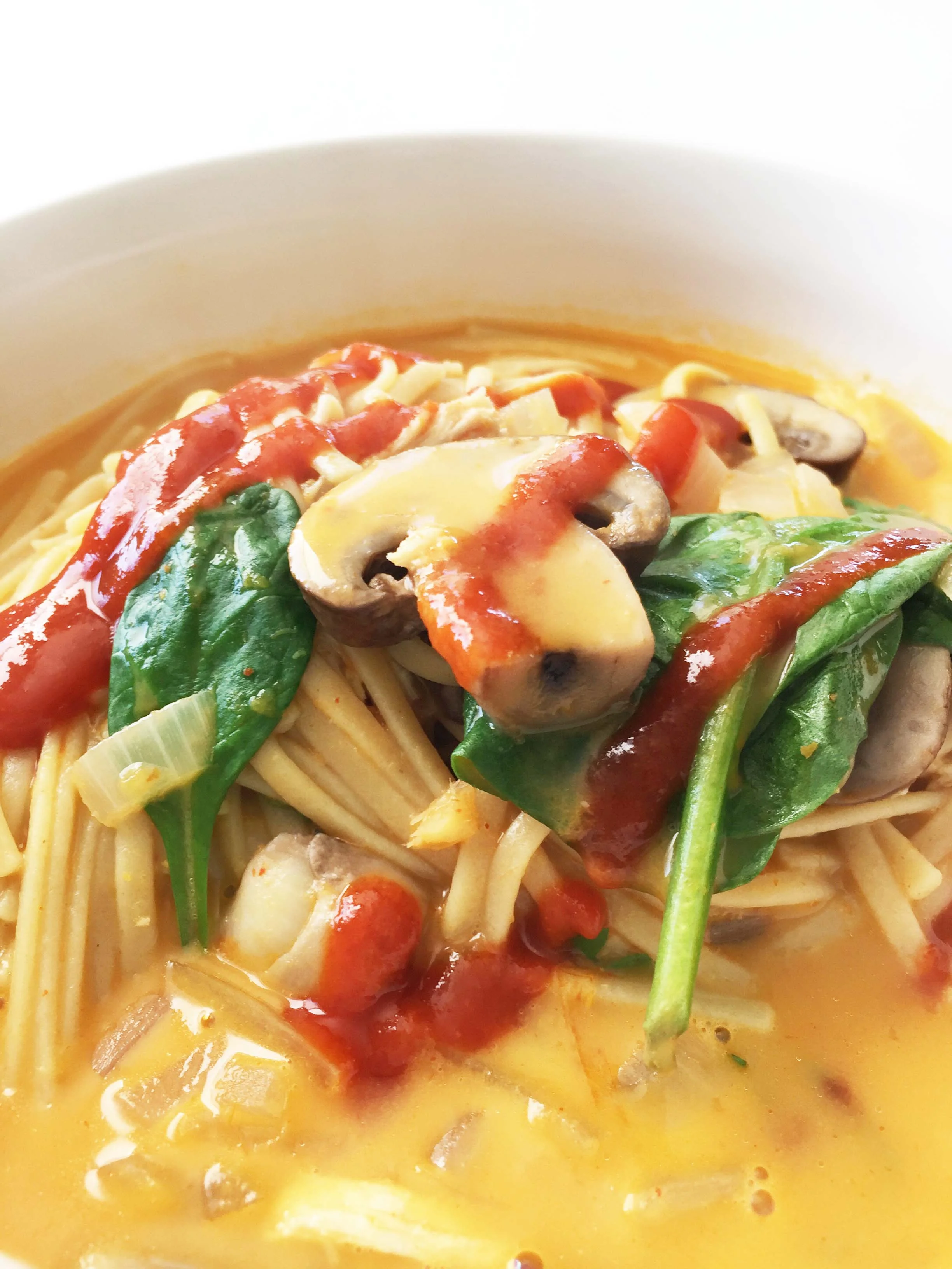 I know that I created a ramen recipe just a week or two ago, but I promise that this one is totally different and unique in it's own way from any traditional one. This yummy ramen is full of all those warm fall flavors that we all know and love; pumpkin, ginger, and plenty of spice.
