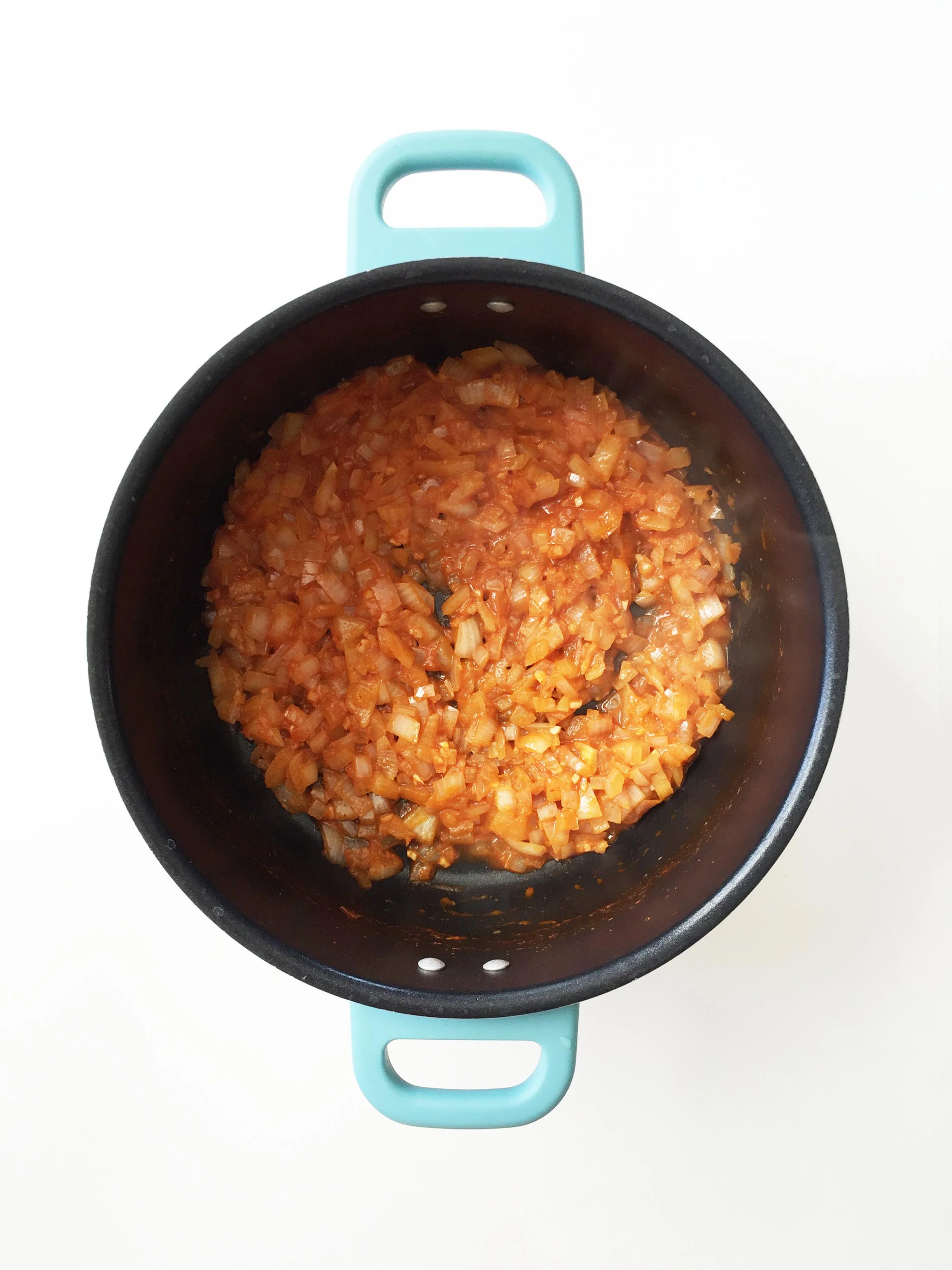 Add in the garlic, ginger, onion and butter; continue to cook down until the veggies are tender.