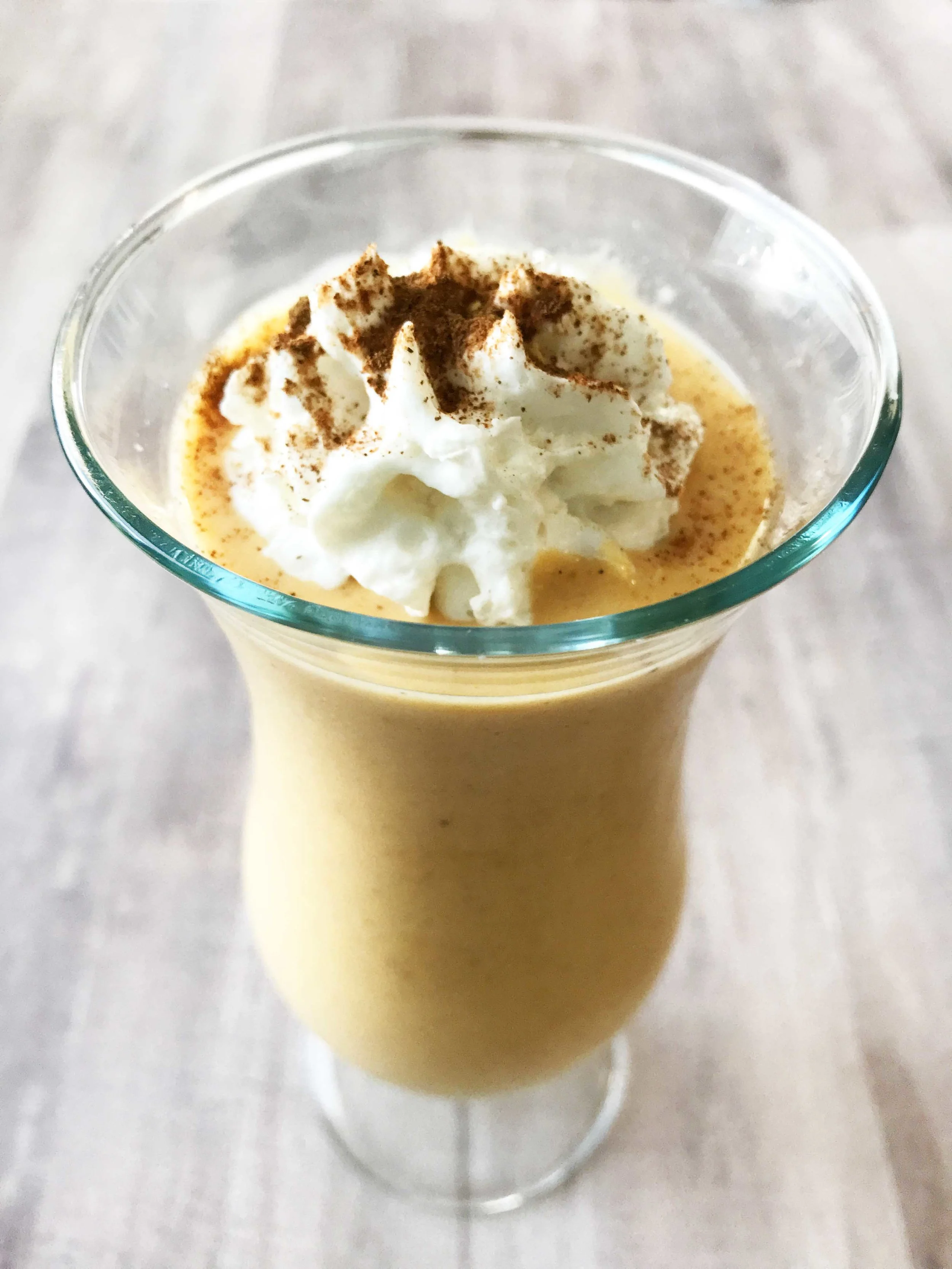 Top this smoothie off with a touch of dairy-free almond milk whipped cream and a sprinkle of ground cinnamon to really keep on par with those pumpkin pie vibes.