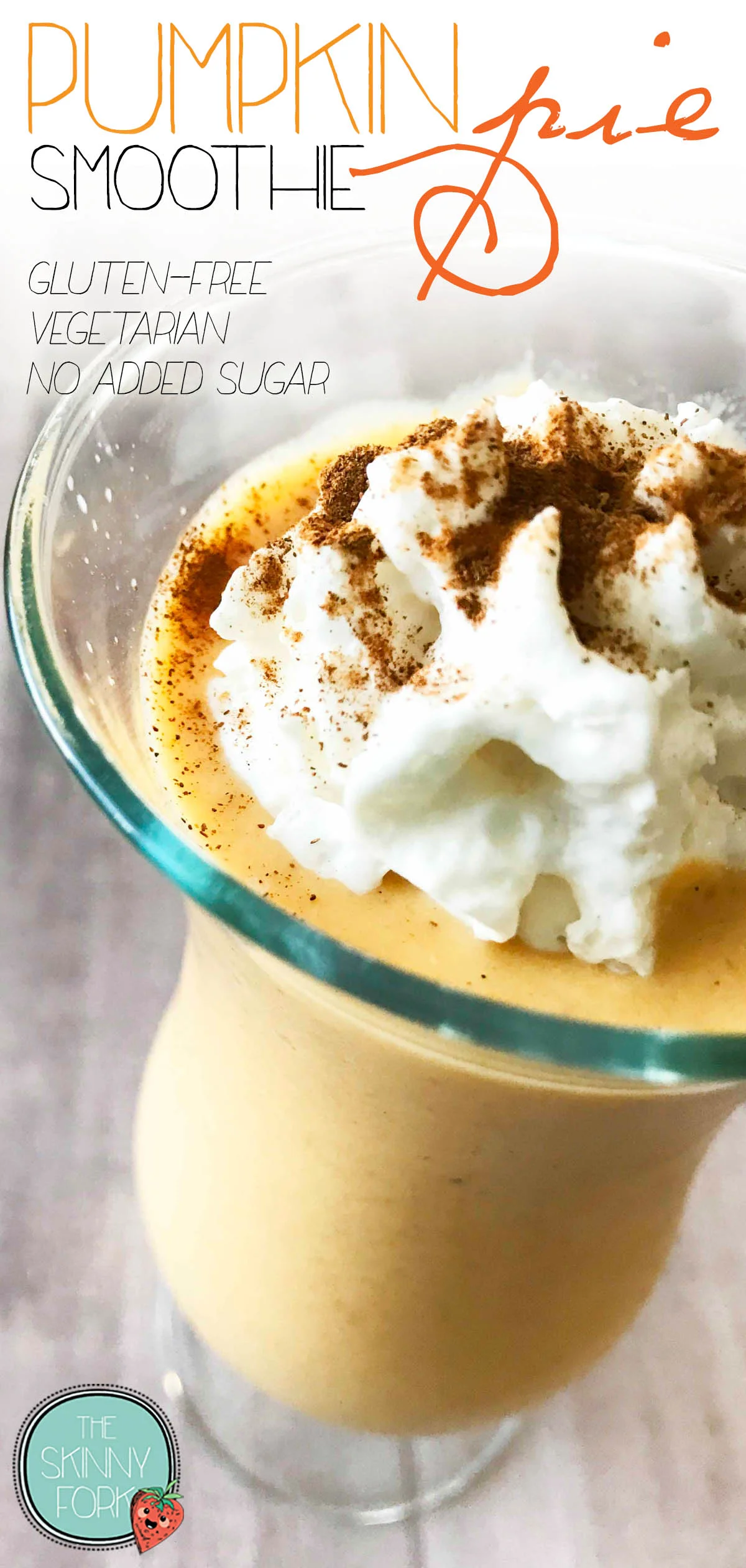 TheSkinnyFork.com Like pumpkin pie? Like smoothies? You'll love this healthy pumpkin pie smoothie! All the fplavors and spice of pumpkin pie in a guilt-free smoothie. Prep Time: 5 Minutes • Cook Time: 0 Hours