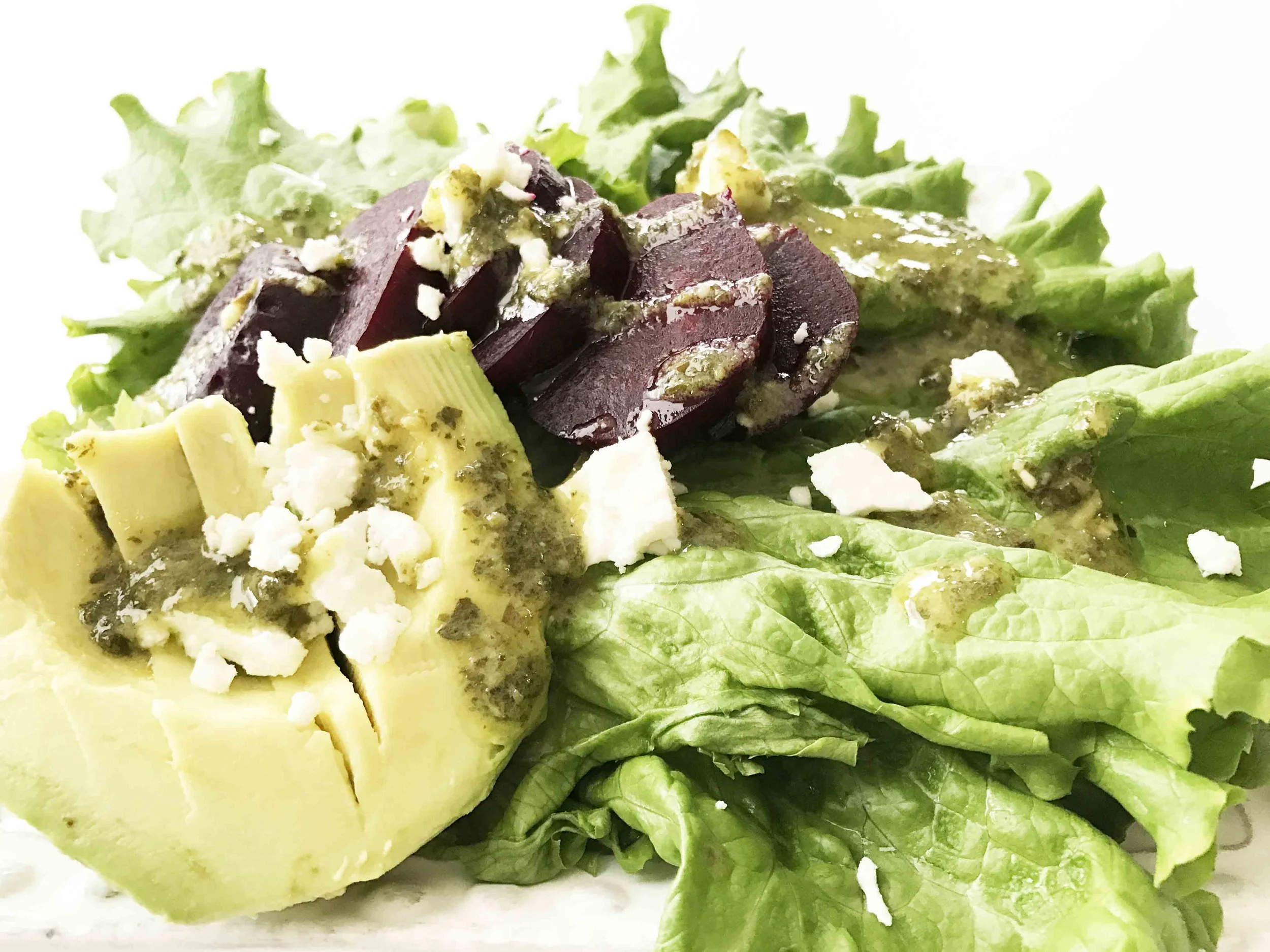 I enjoyed my beets over some fresh green leaf lettuce with reduced fat feta crumbles and a pesto vinaigrette for a perfectly fresh and seasonal salad at lunch today.