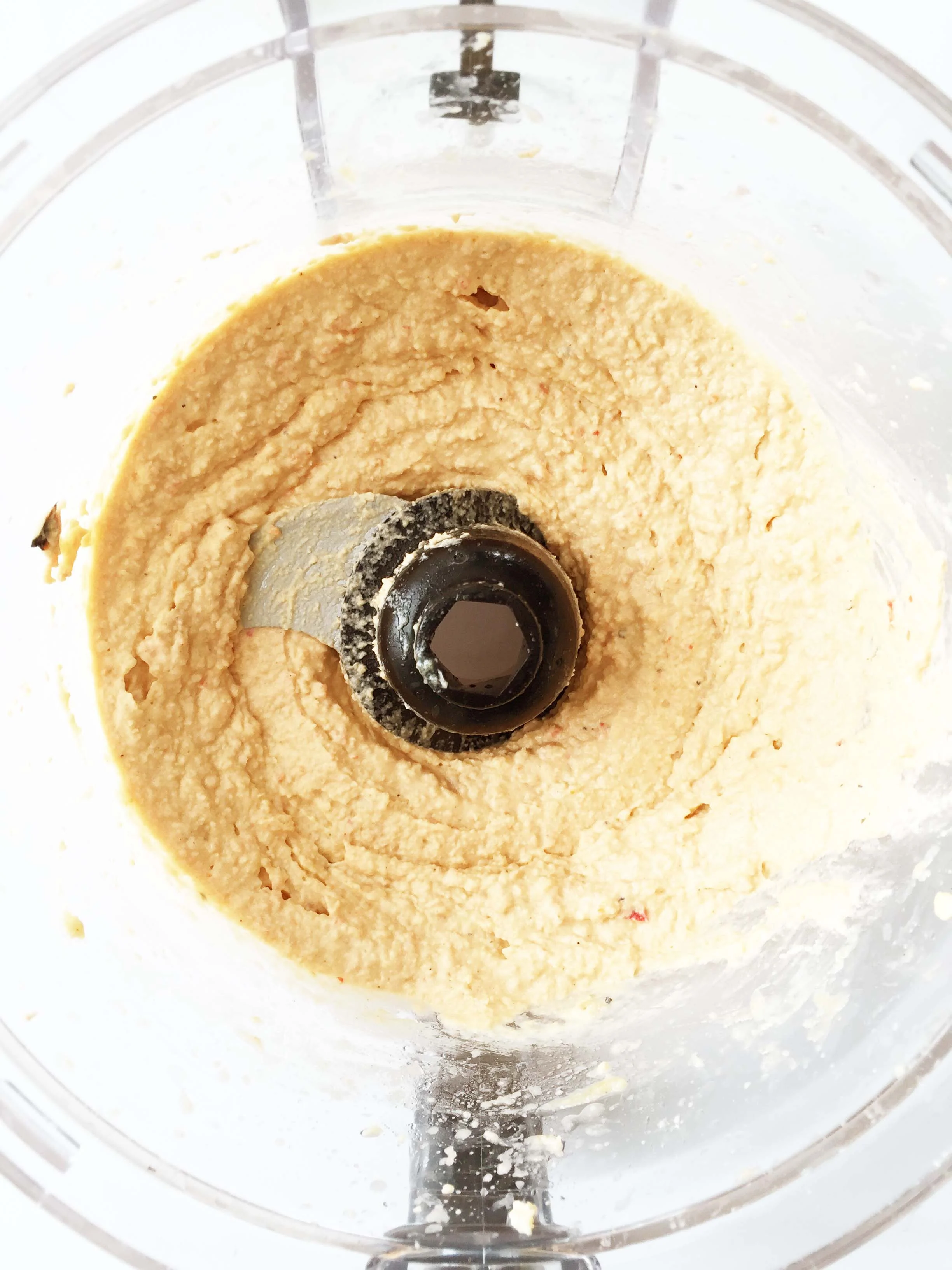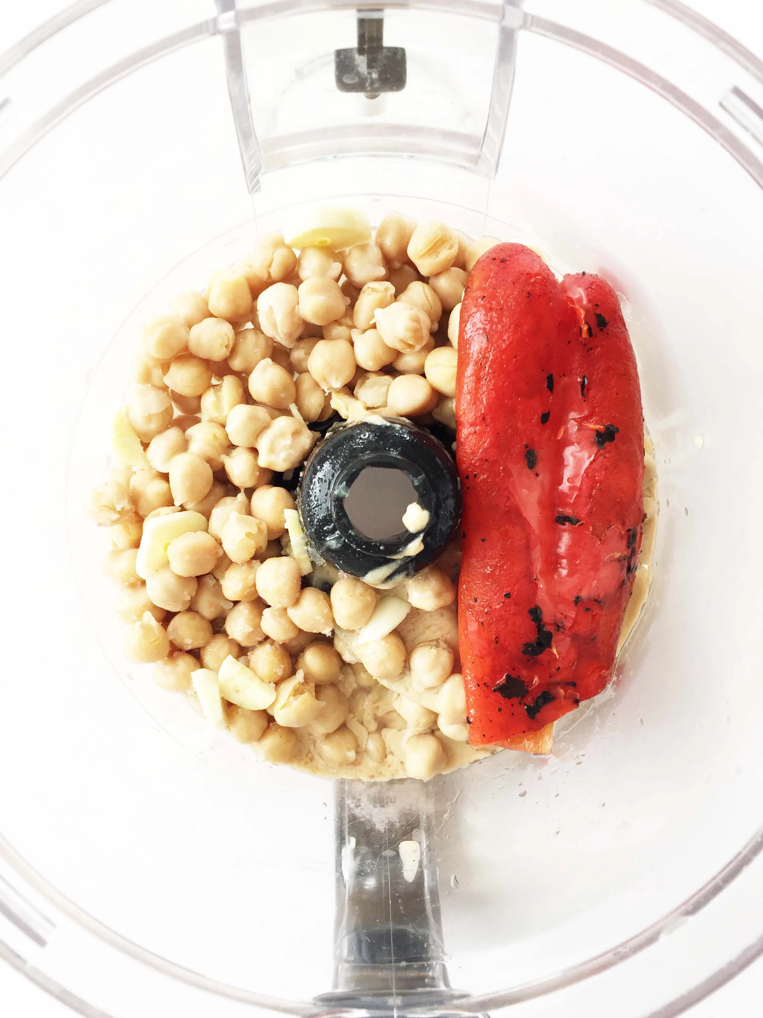 To make this hummus a little better-for-you, I used low sodium garbanzo beans and made my own roasted red bell pepper to avoid the ones jarred in oil. There's just no need for the oil for this today!