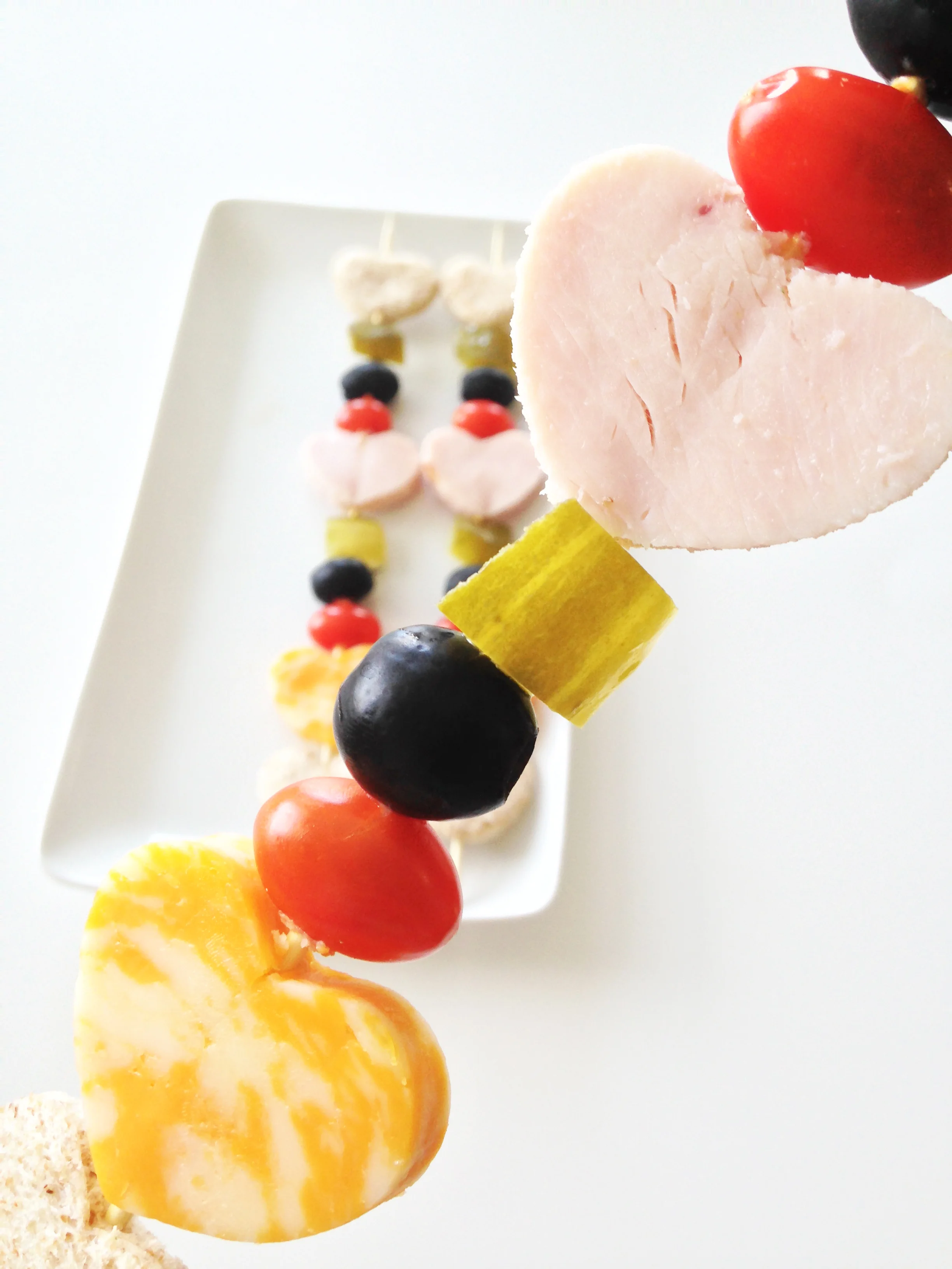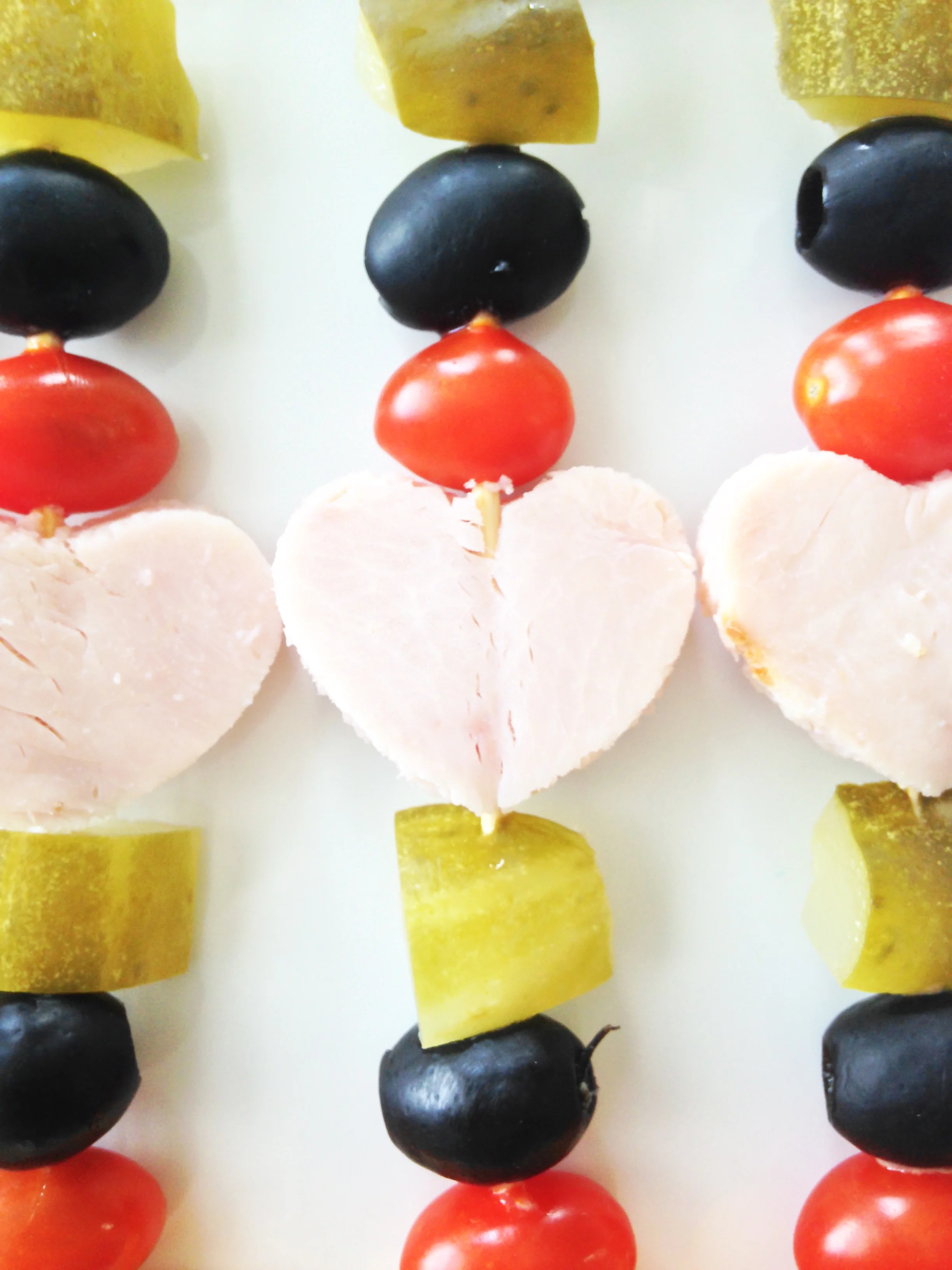 Really you could use any sort of meat, cheese, or stackable vegetables on these sticks, but I decided to stick with Lily's favorites. Well, aside for the tomatoes... she made me eat those. Other than that, she happily scarfed down all three skewers. Which, let me tell you, is an amazing feat. This girl eats like a bird on most days!