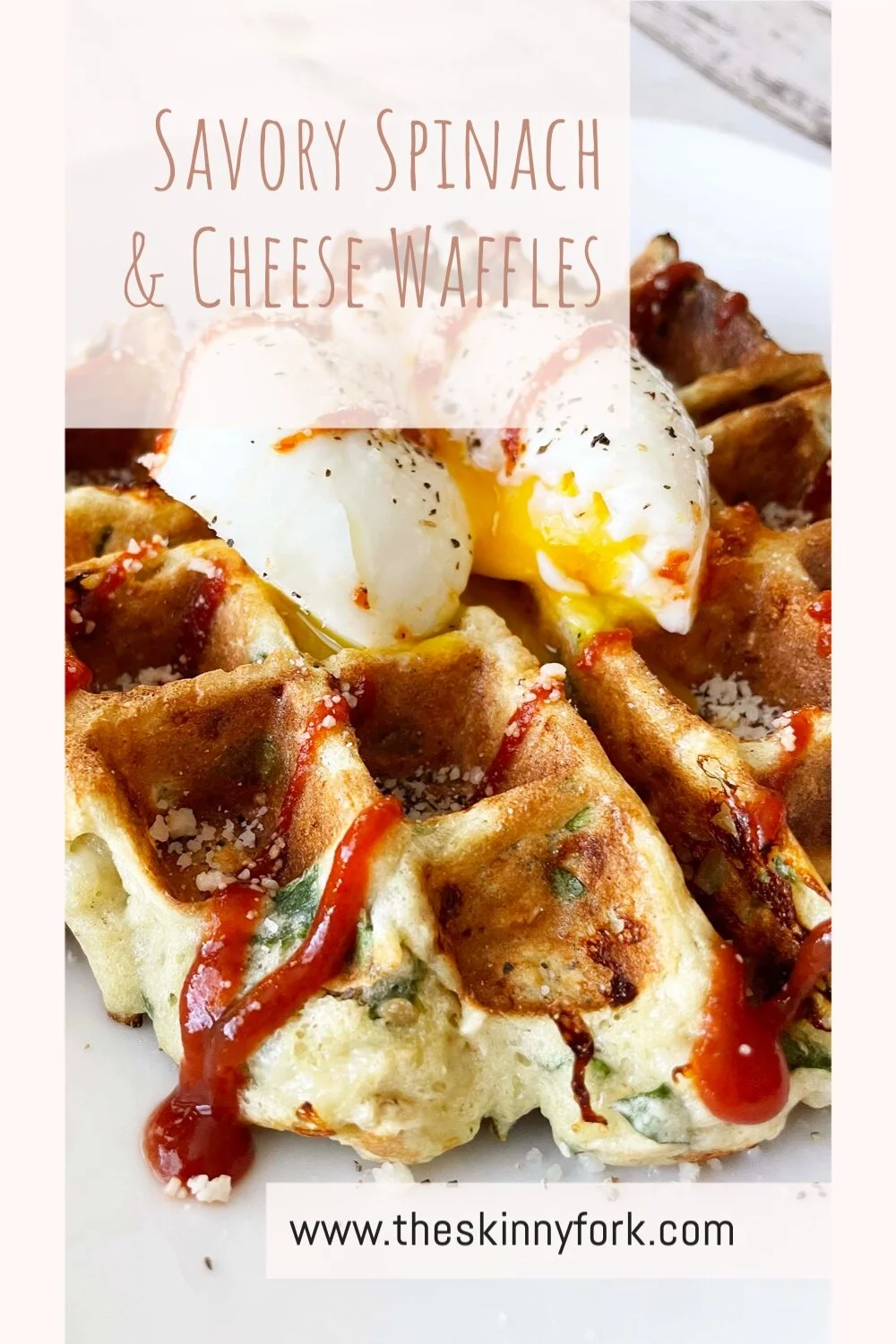 These Savory Spinach & Cheese Waffles are exactly that. Standard protein waffle mix with spinach and cheese added in. They’re super tasty and go great with an instant pot poached egg and a drizzle of sriracha on top.