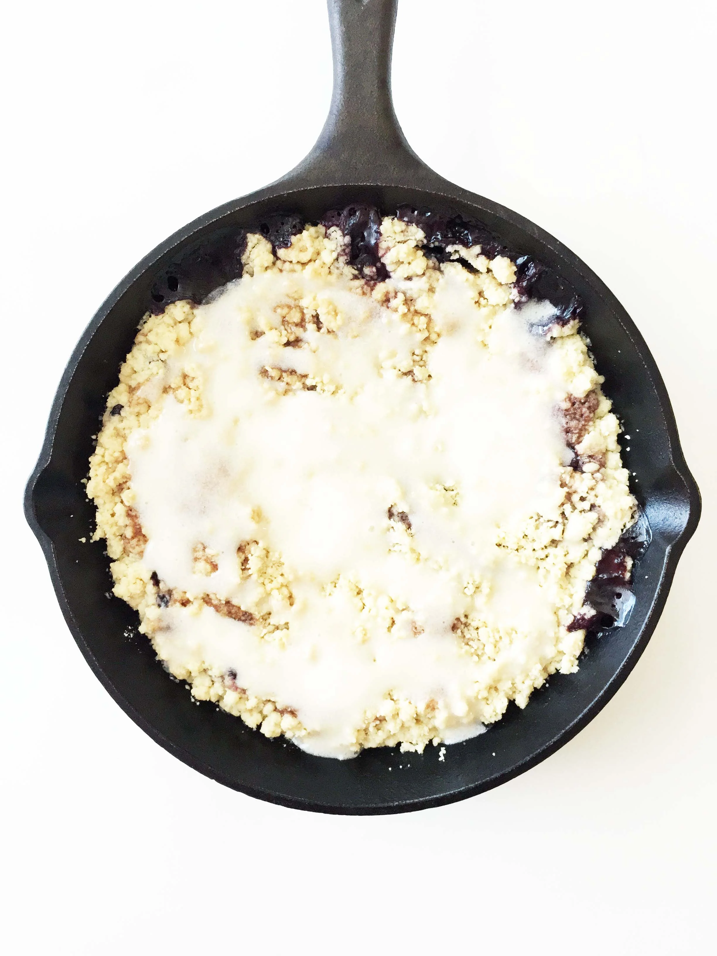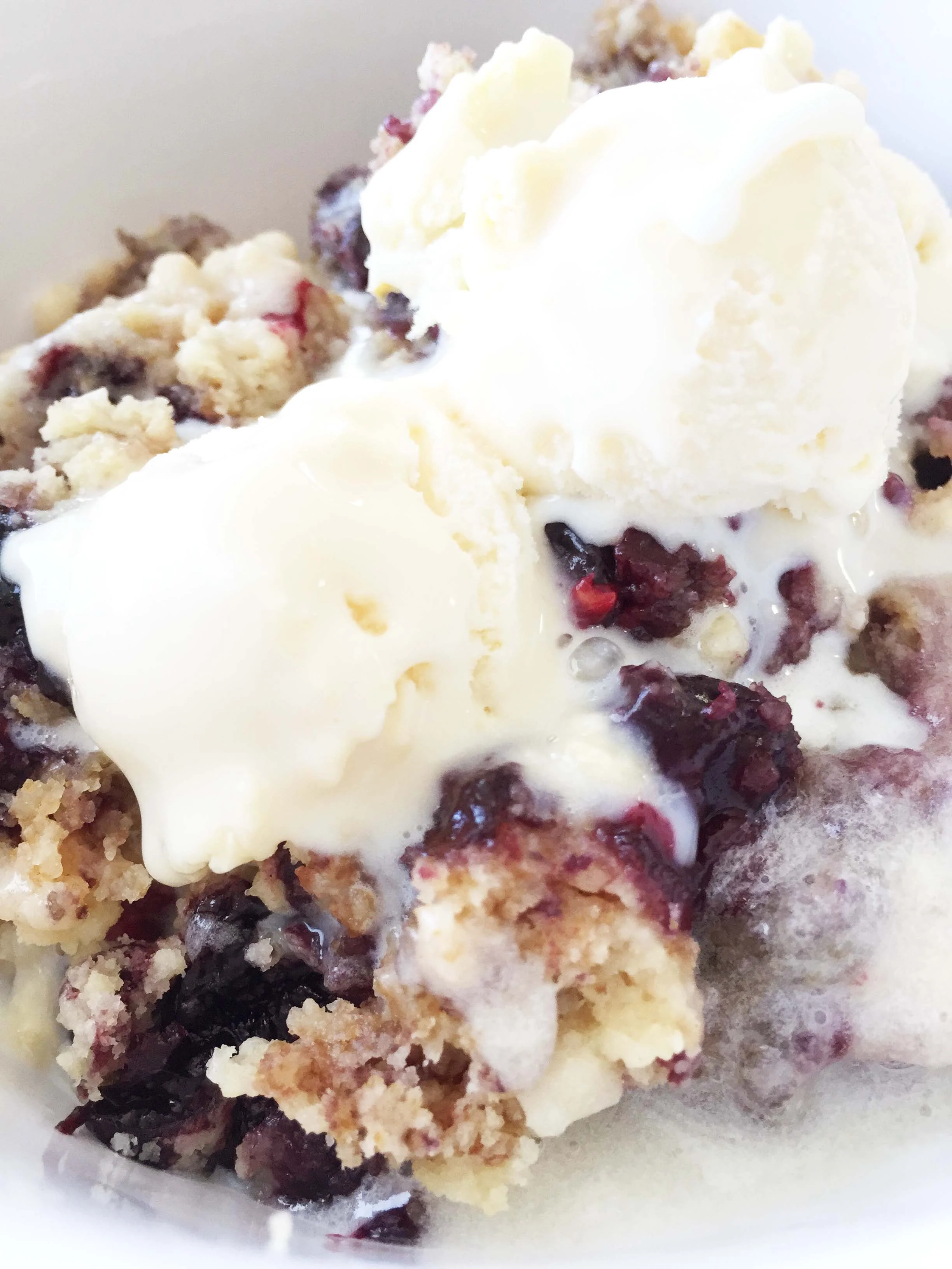 Drizzle half of the 'glaze' over the top of the cobbler and serve right away.