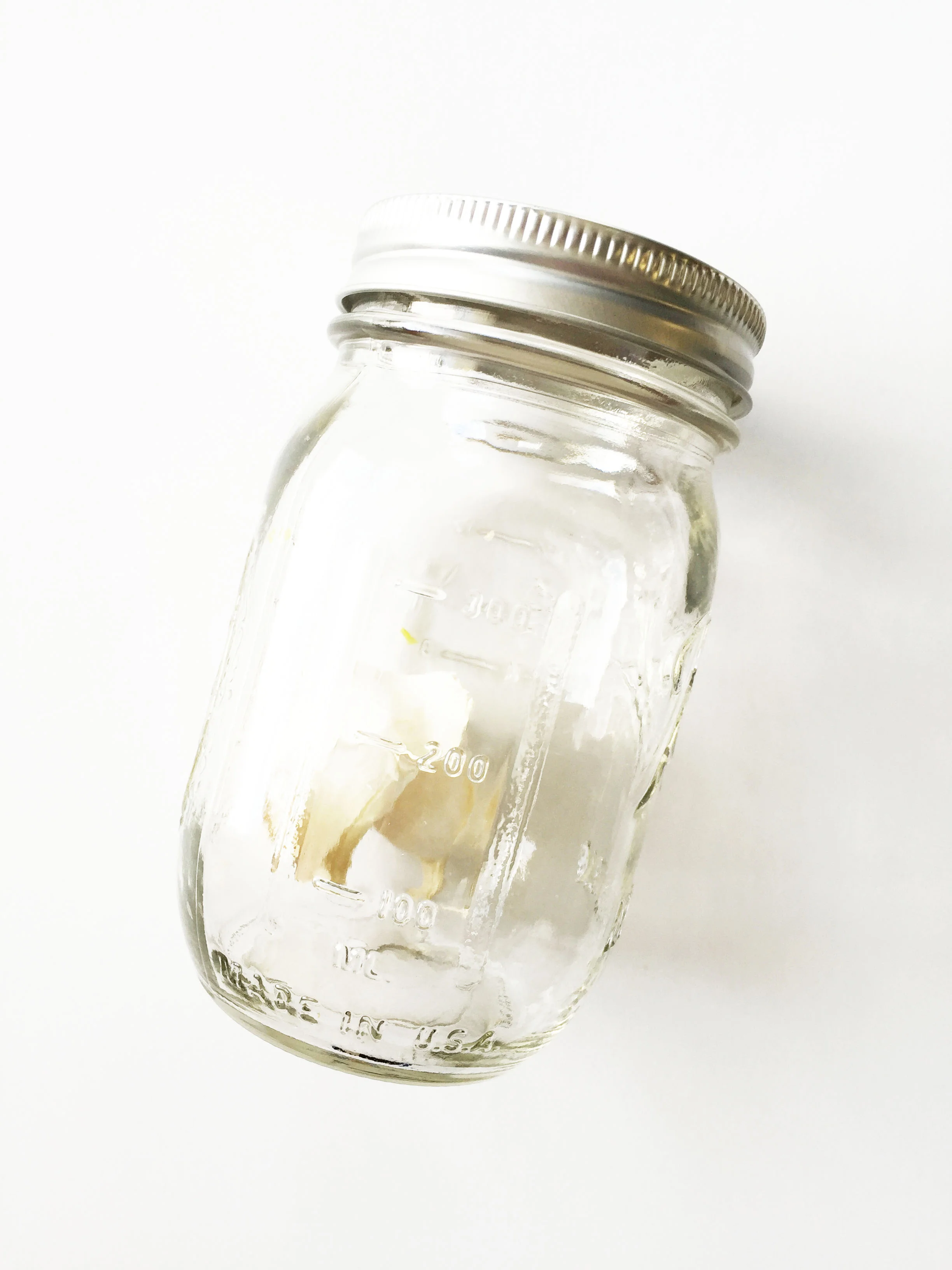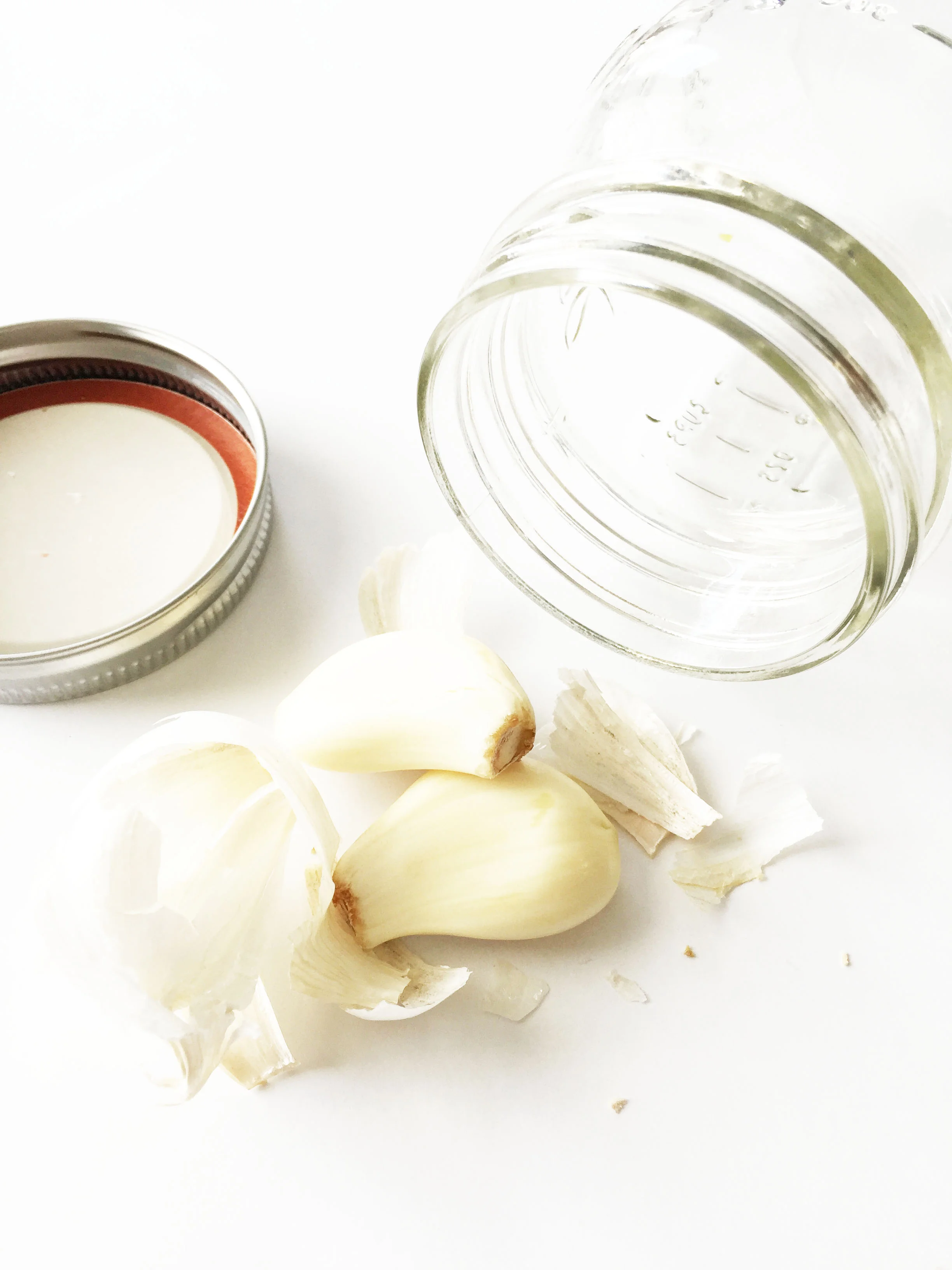 Toss the garlic cloves into a sealable container and give it a good hardy shake.