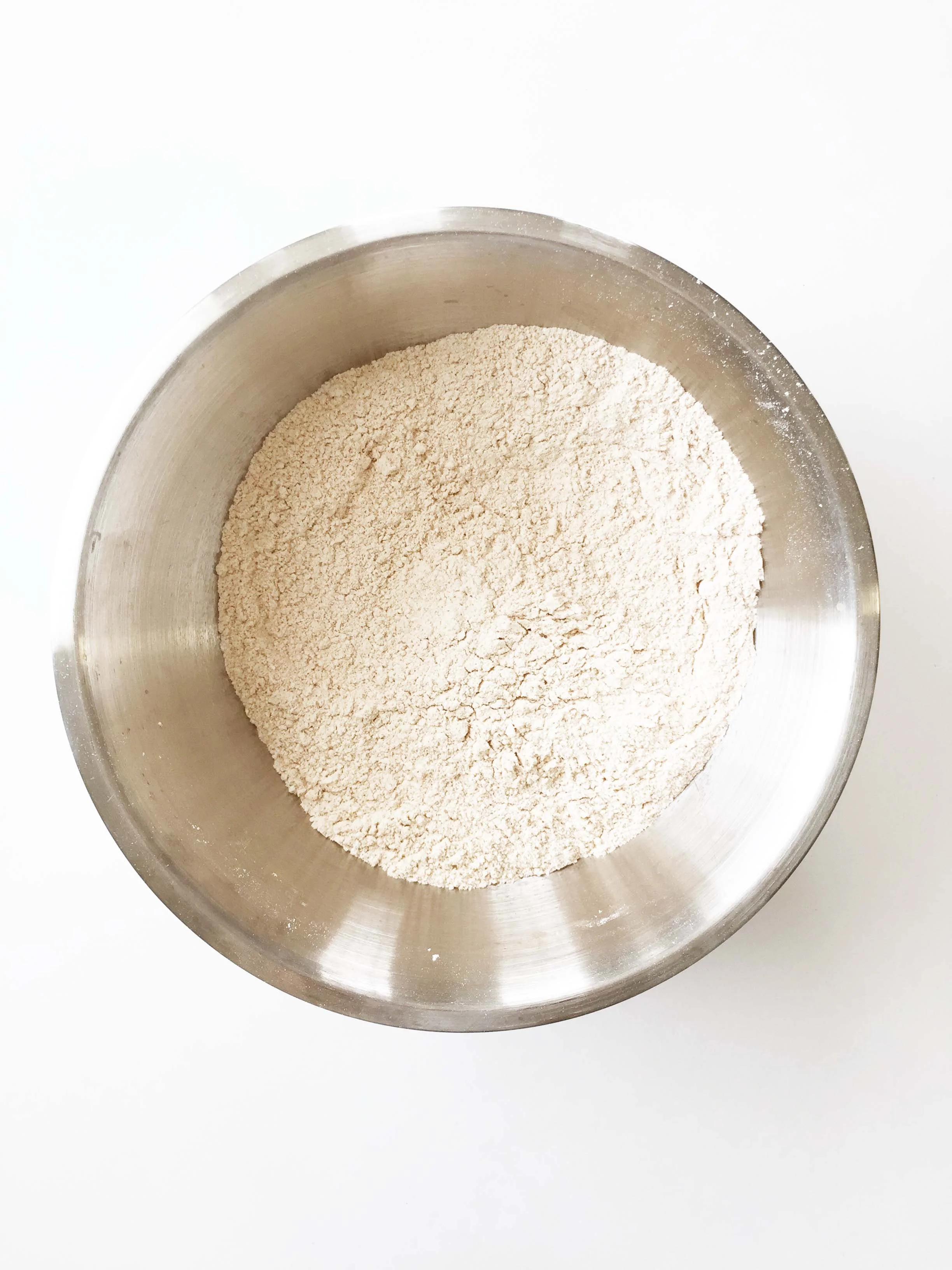 Combine 2 C. white wheat flour, 1 C. flour, 2 Tsp. baking soda, 1 1/2 Tsp. cinnamon, 1 1/2 Tsp. ginger, 3/4 Tsp. cloves and 1/2 Tsp. salt in small bowl; set aside.