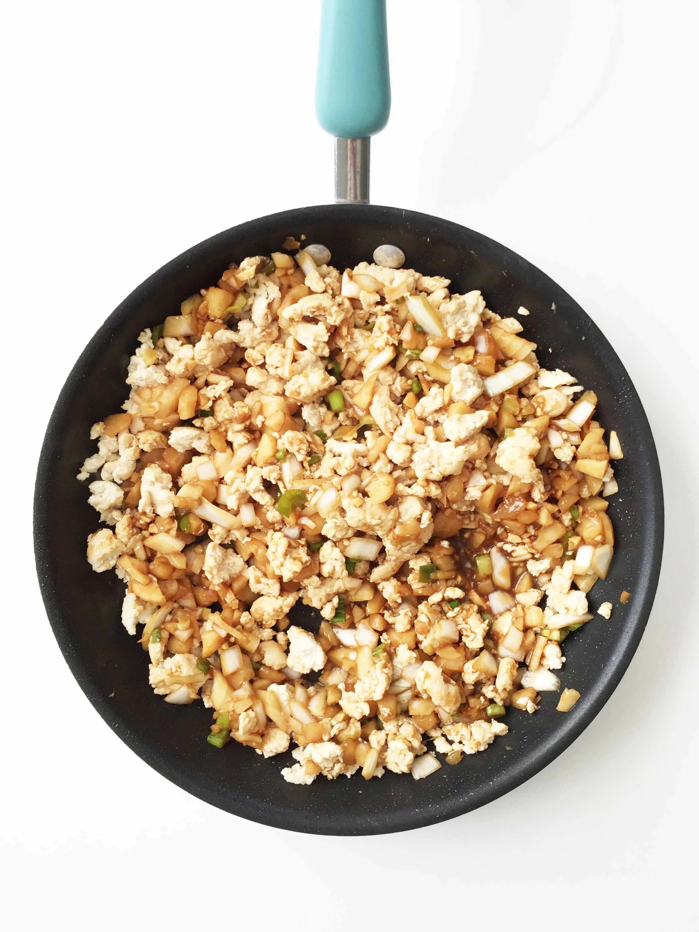 Plus, there's literally only 5 things that you need to dice, slice, and/or chop. Not bad at all considering the amount of flavor that you get in these lettuce wraps. Though, I would definitely suggest to have everything pre-chopped before you start cooking the chicken - just to make sure things go smoothly.