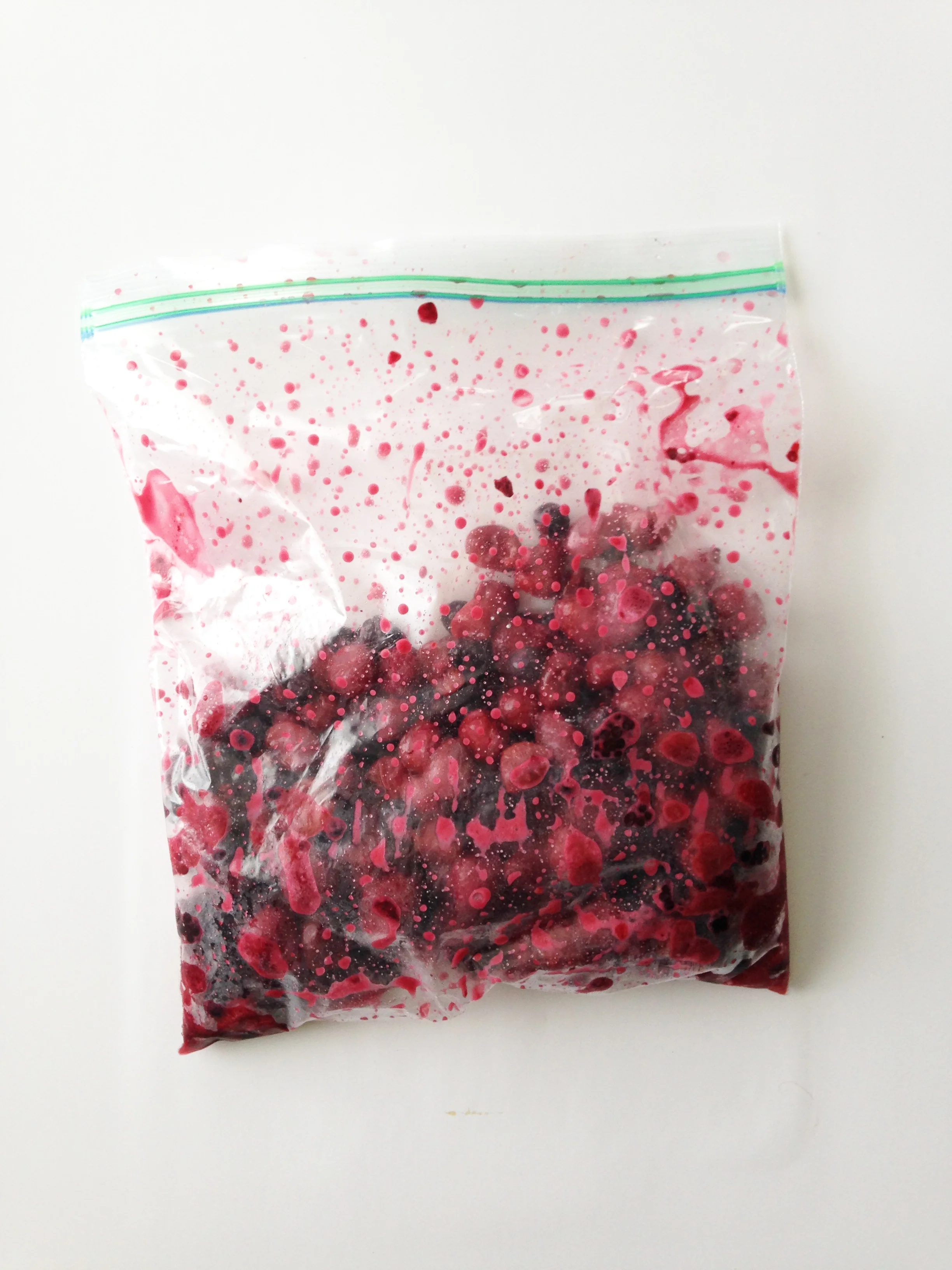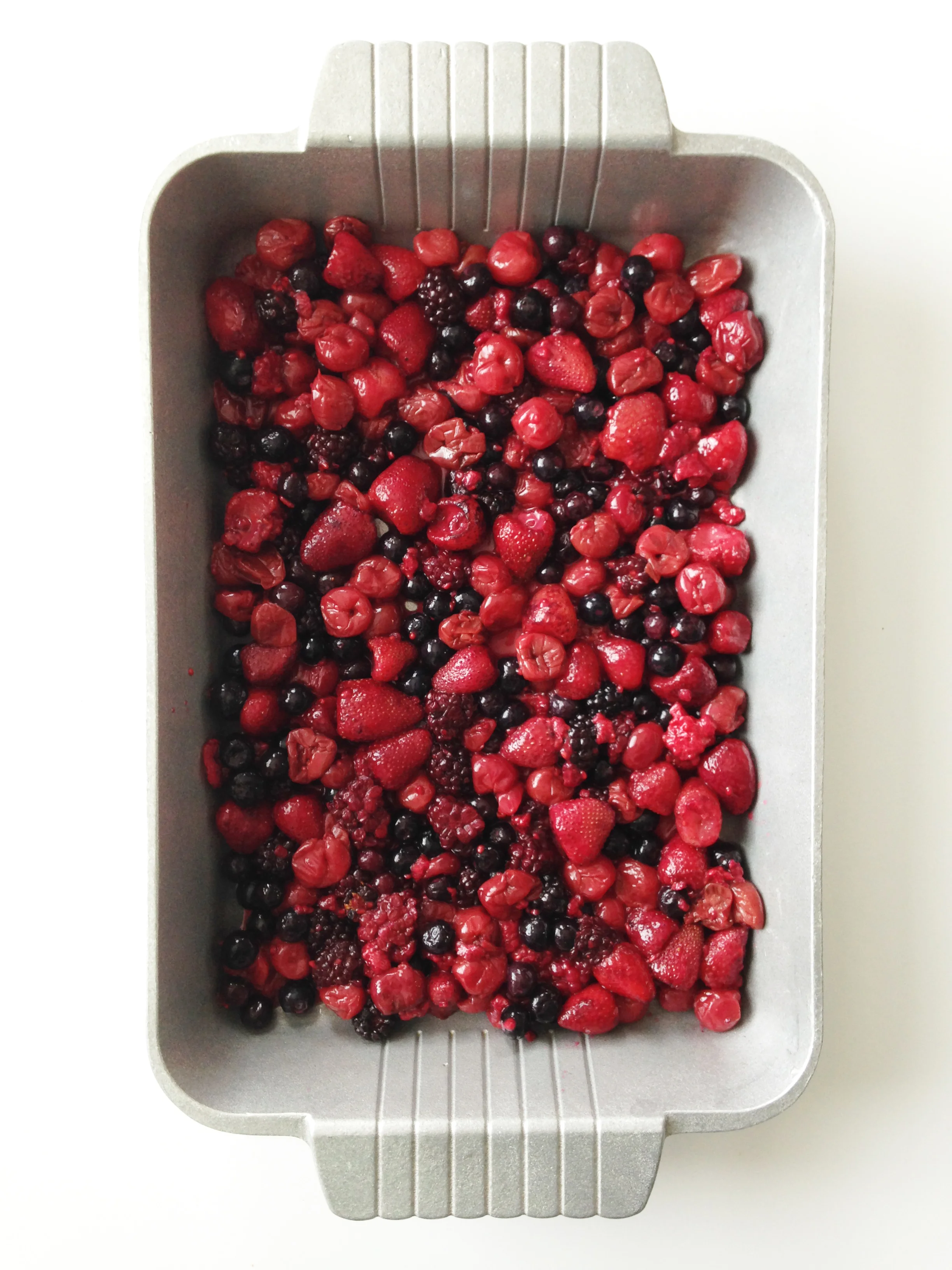Transfer the berries to the bottom of the prepared baking dish and set aside.