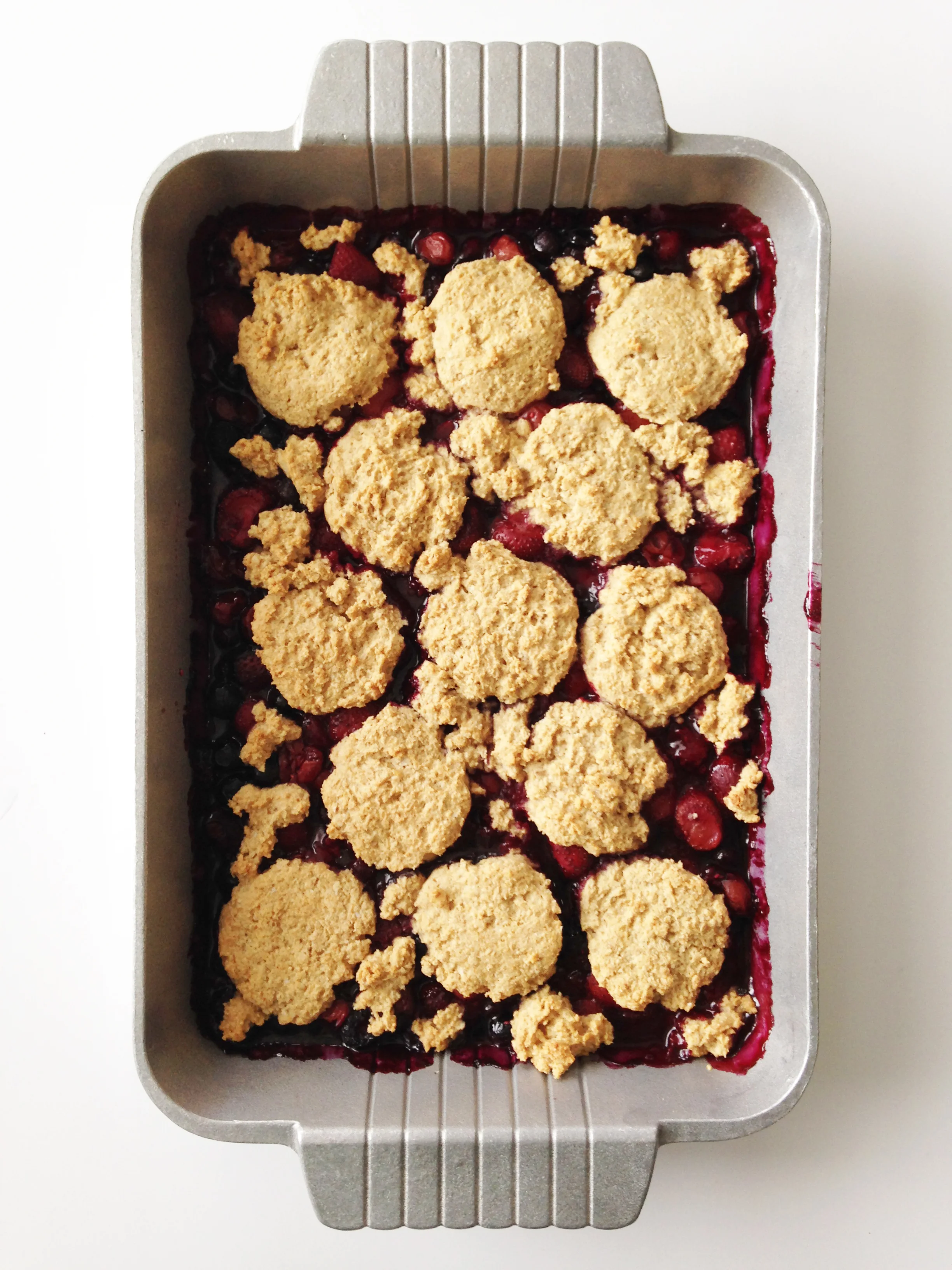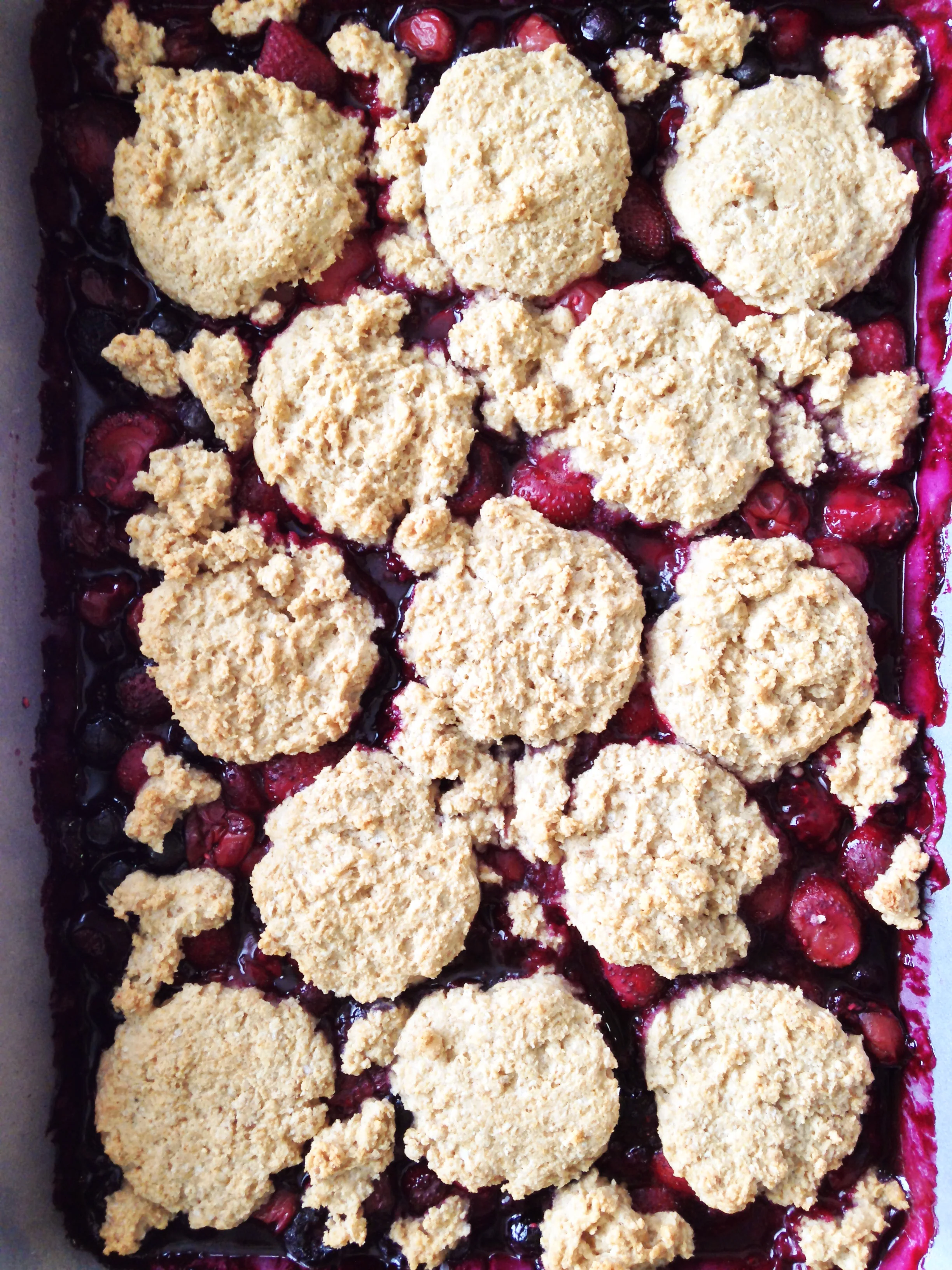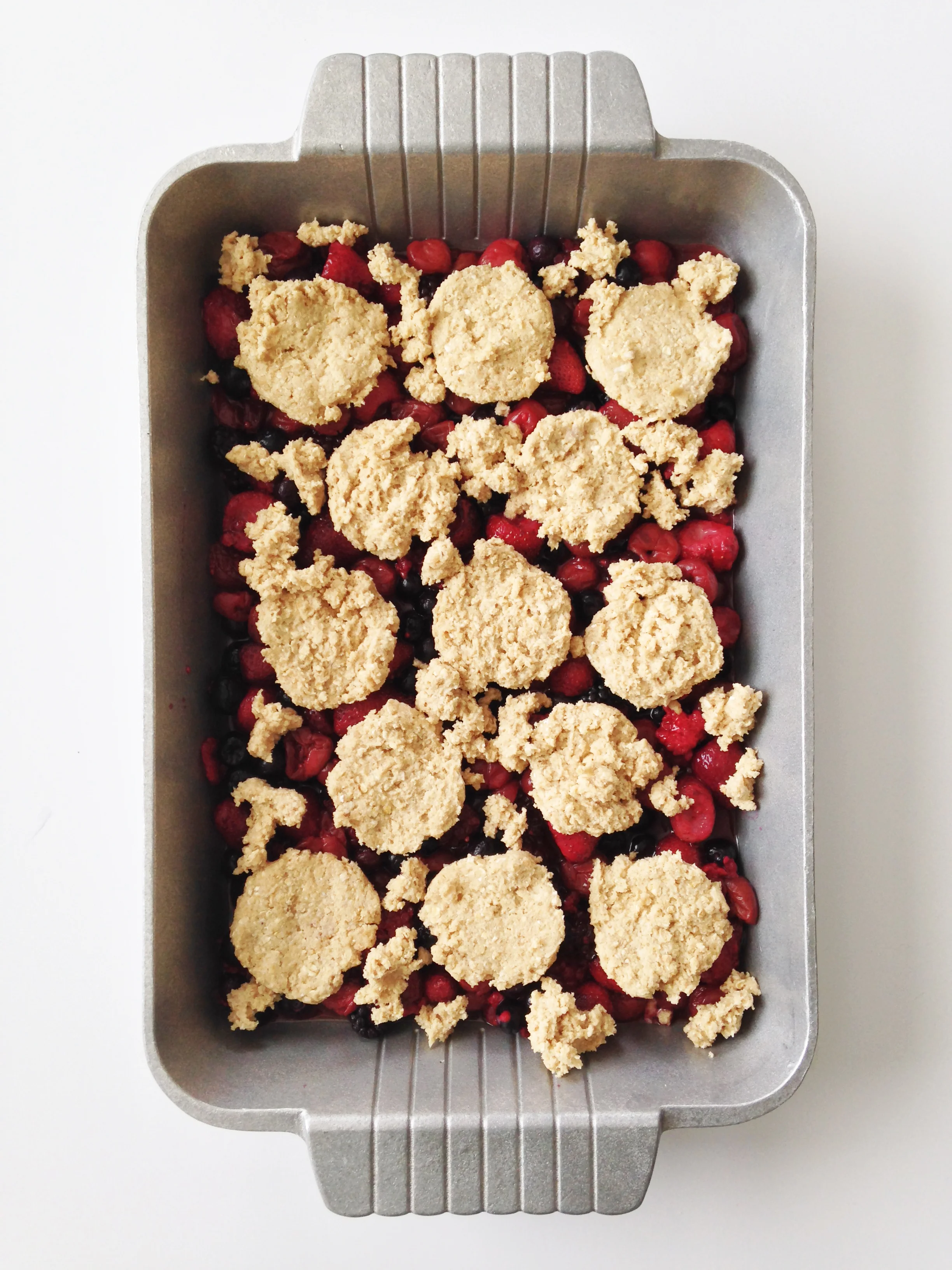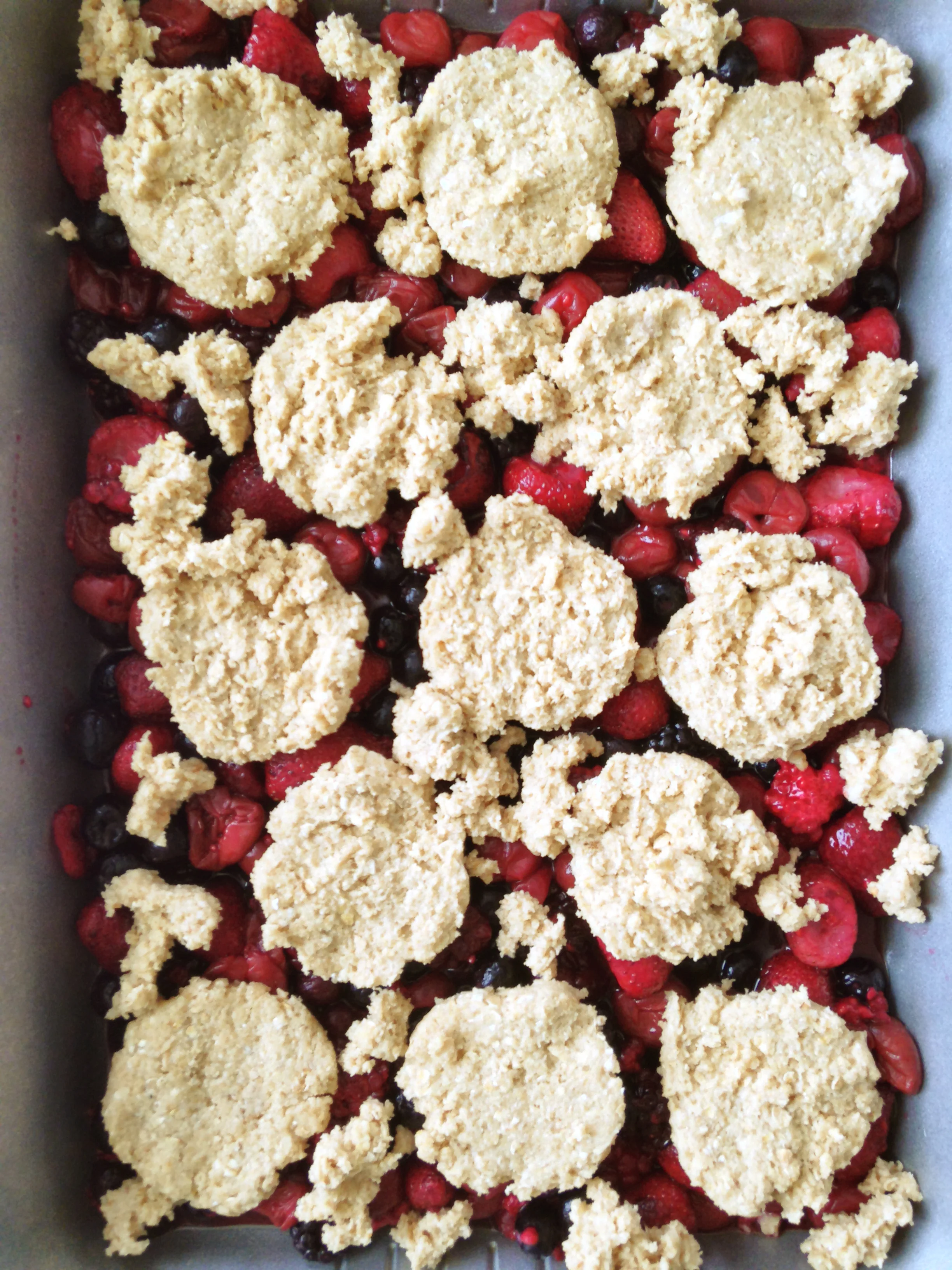 I had some left over so I just crumbled it and sprinkled it over the top of the berries... which in hindsight would probably work just as well for ALL of the dough for the cobbler.