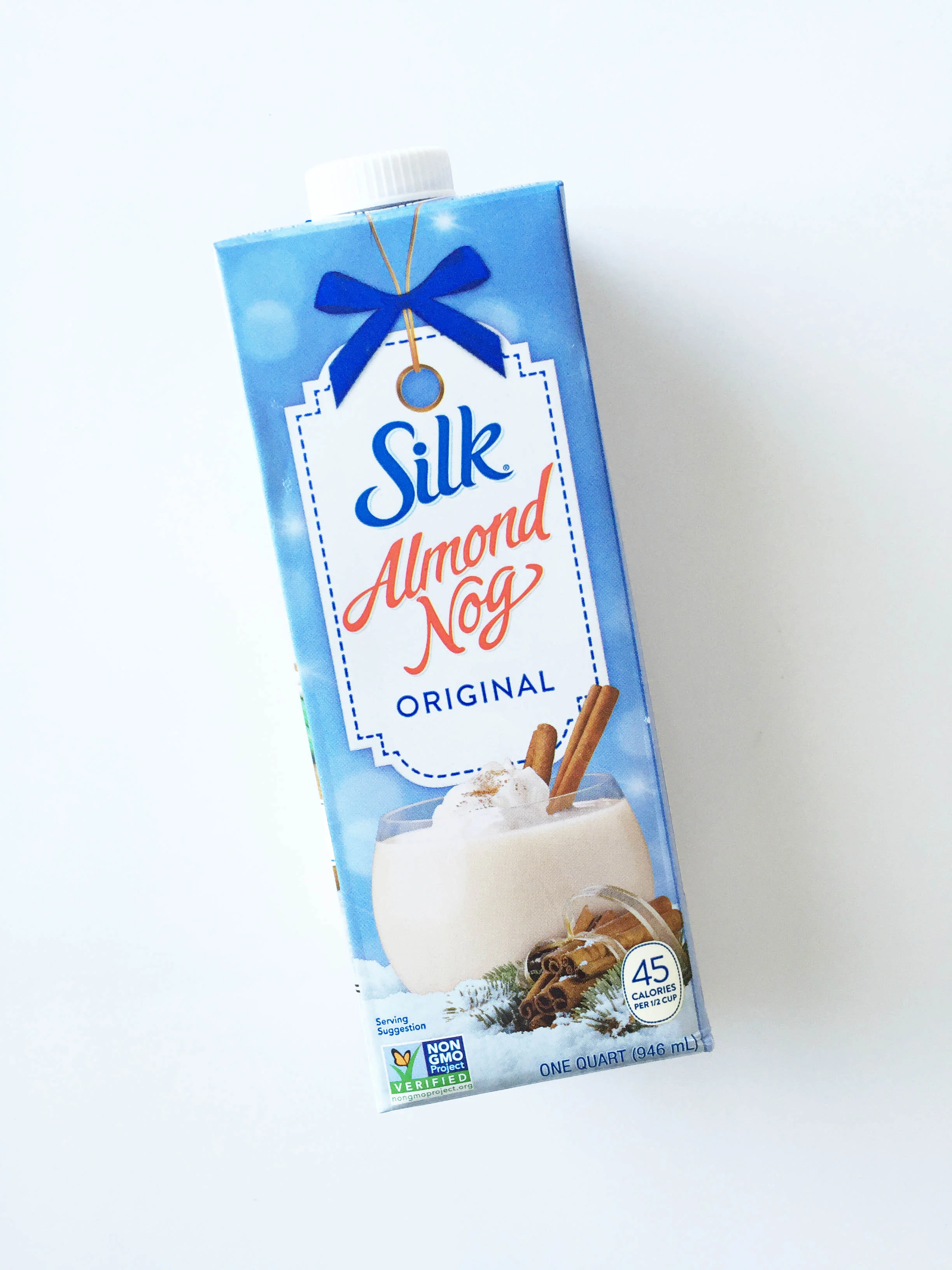 Last but not least, I used Almond Egg Nog which is made without eggs, dairy or saturated fat. Plus, it's only 45 calories in a serving, and you can't really beat that! This nog is pretty delicious; rich, smooth, and creamy. Perfect for my lovely (and festive) holiday treat here.