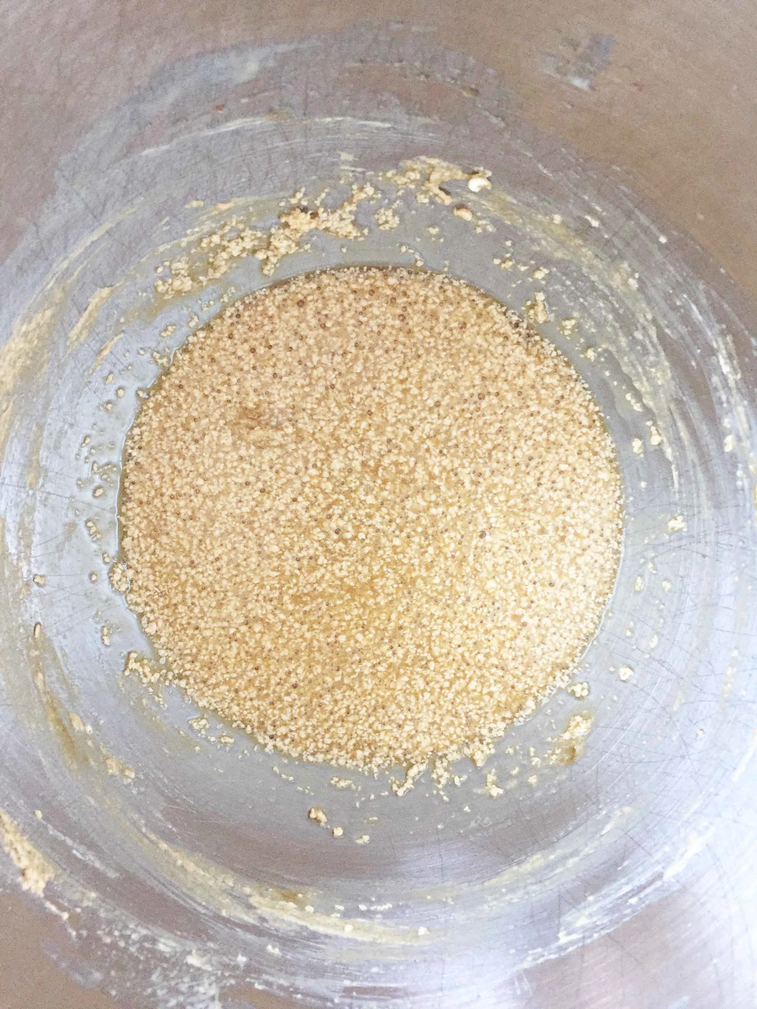 Beat together the 1/2 C. butter and 1/4 C. + 2 Tbsp. brown sugar blend into a large bowl together.