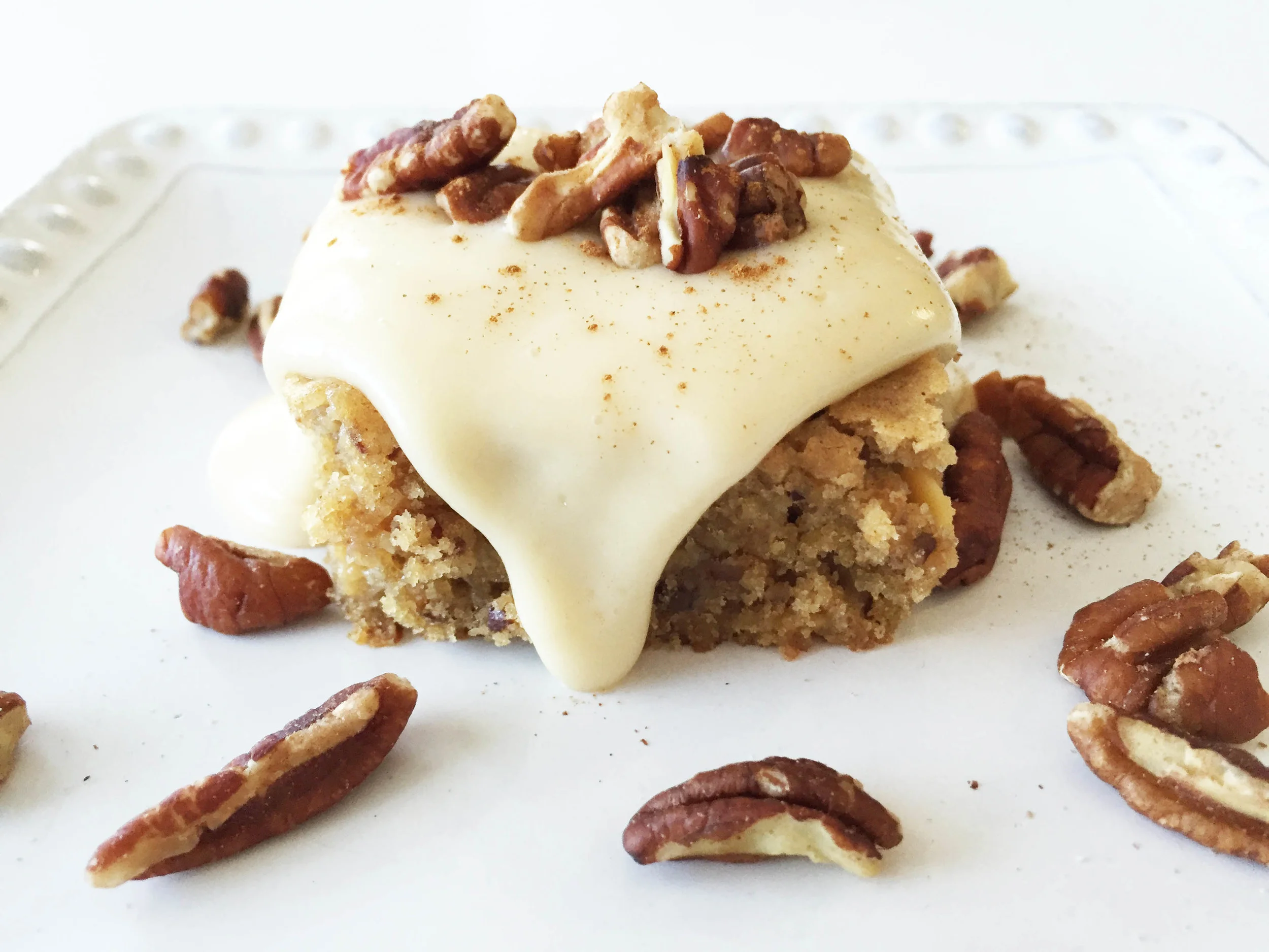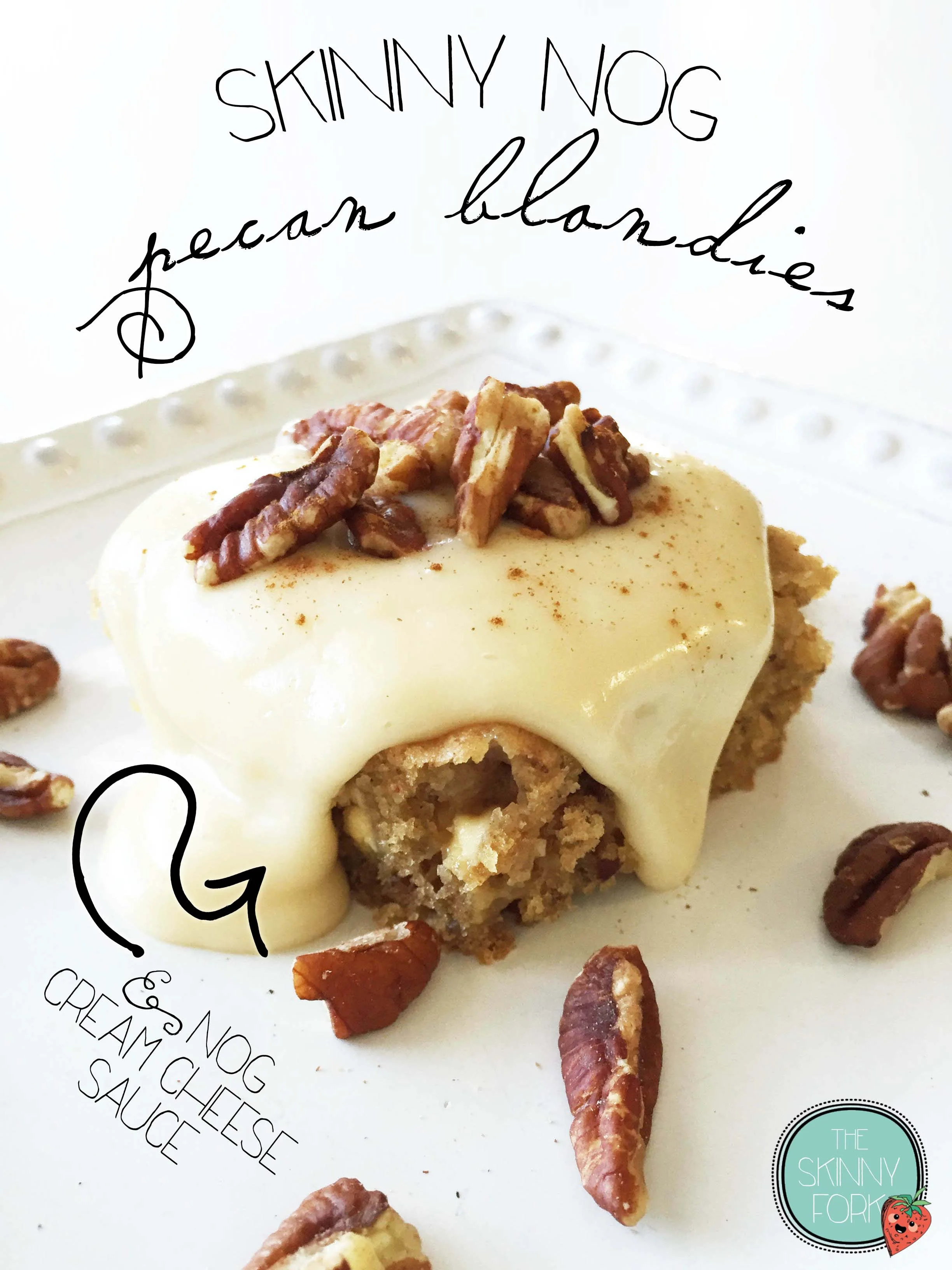 Skinny Nog Pecan Blondies & Nog Cream Cheese Sauce