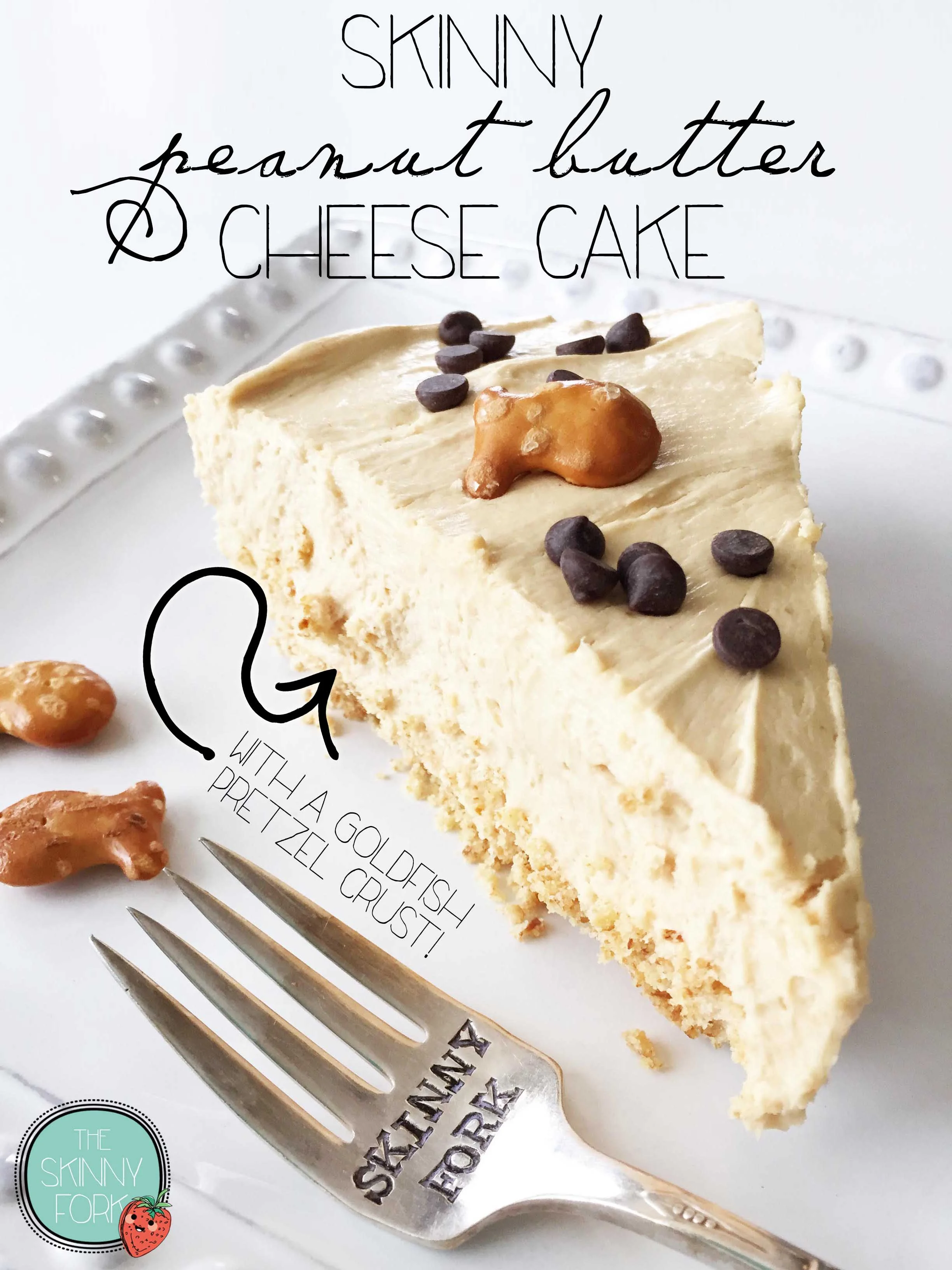 With spring fast approaching I knew that I wanted to create something light, sweet, rather guilt-free, and easy enough that it could be done while chasing around the kiddos or even make use of some helping little hands. This rich and creamy Skinny Peanut Butter Cheesecake was the perfect solution! I'm sure you're wondering by now... why I'm talking about a cheesecake rather than some sort of trail mix. Well, the answer is simple. The pretzel Goldfish snacks are what makes up the crust of this decadent beauty!