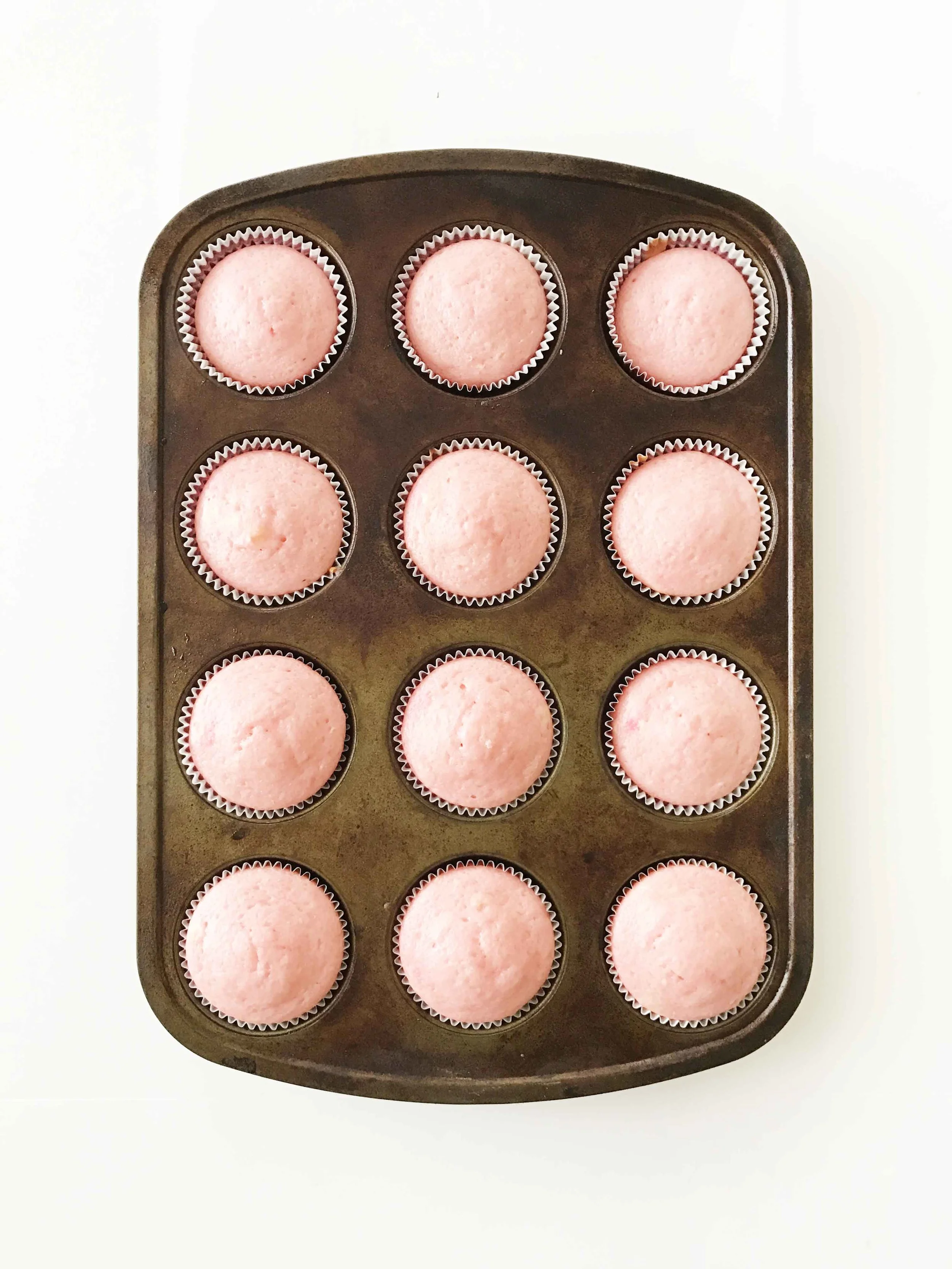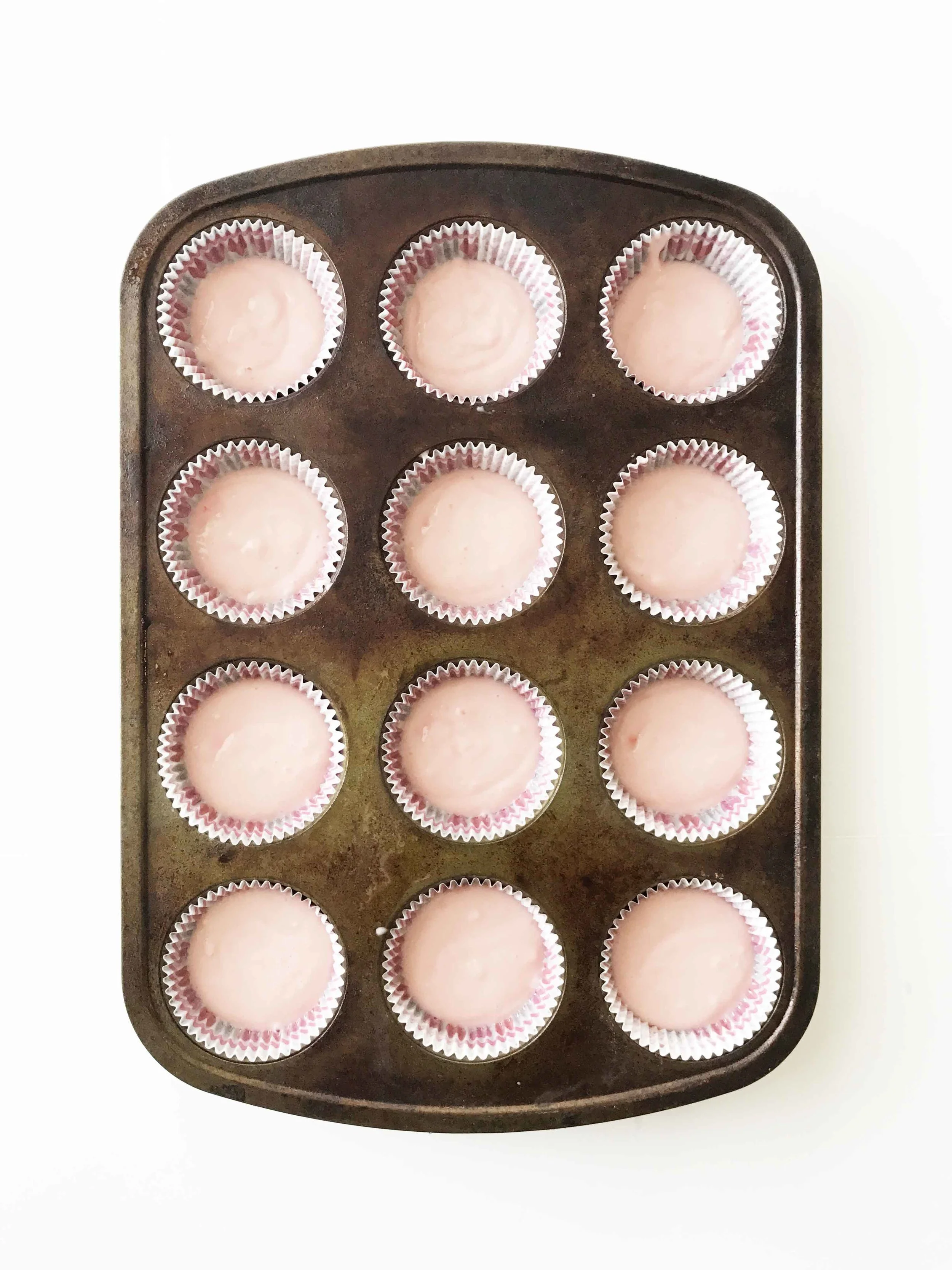 Divide the mixture evenly among the prepared cupcake pan with liners.