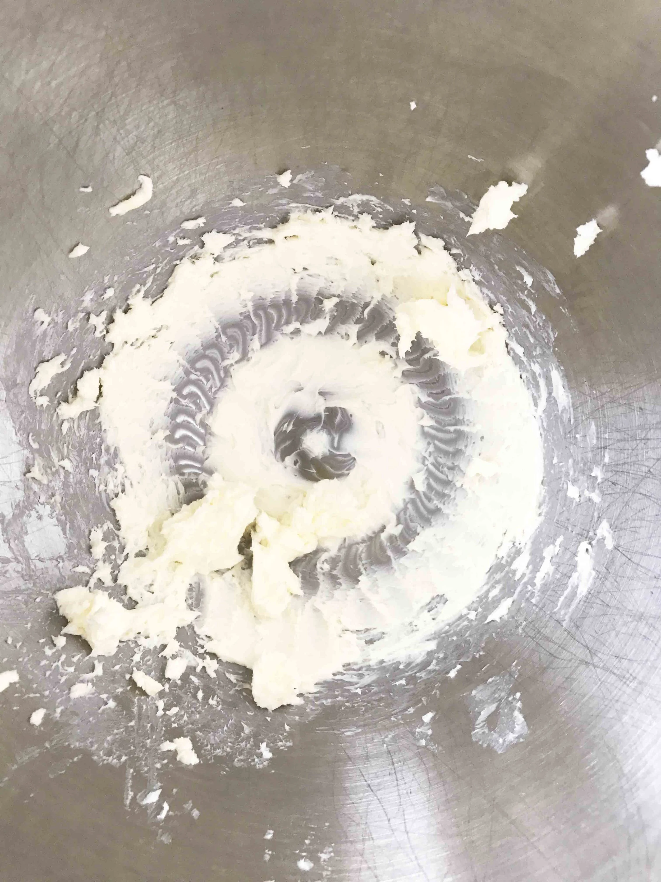 While they're cooling, whip the 1/2 C. butter up with a mixer (hand held or stand.)