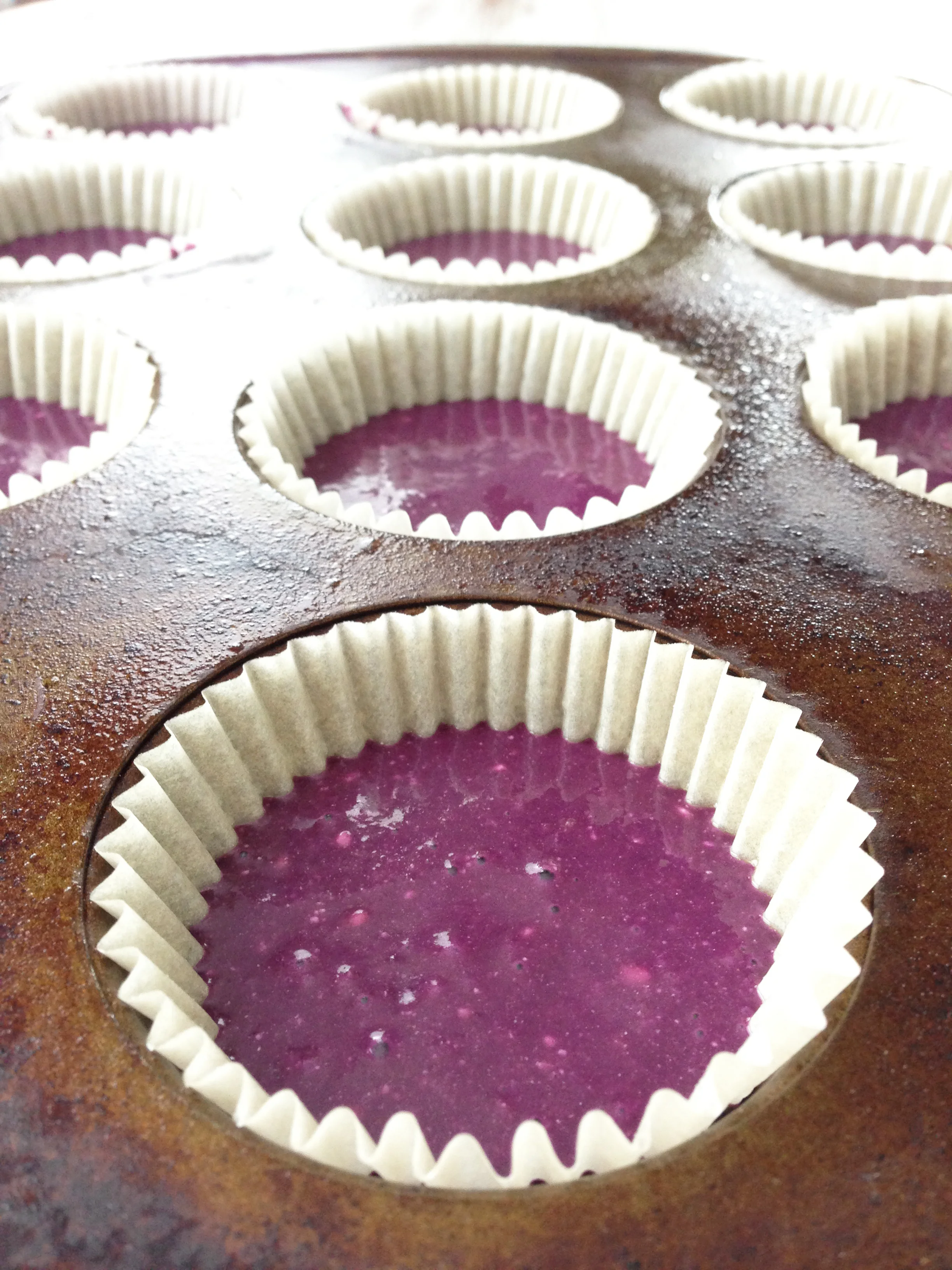 Preheat the oven to 350 degrees F. Line cupcake trays with liners. I also gave mine a light spritz of baking spray to prevent the cake from sticking to the papers.