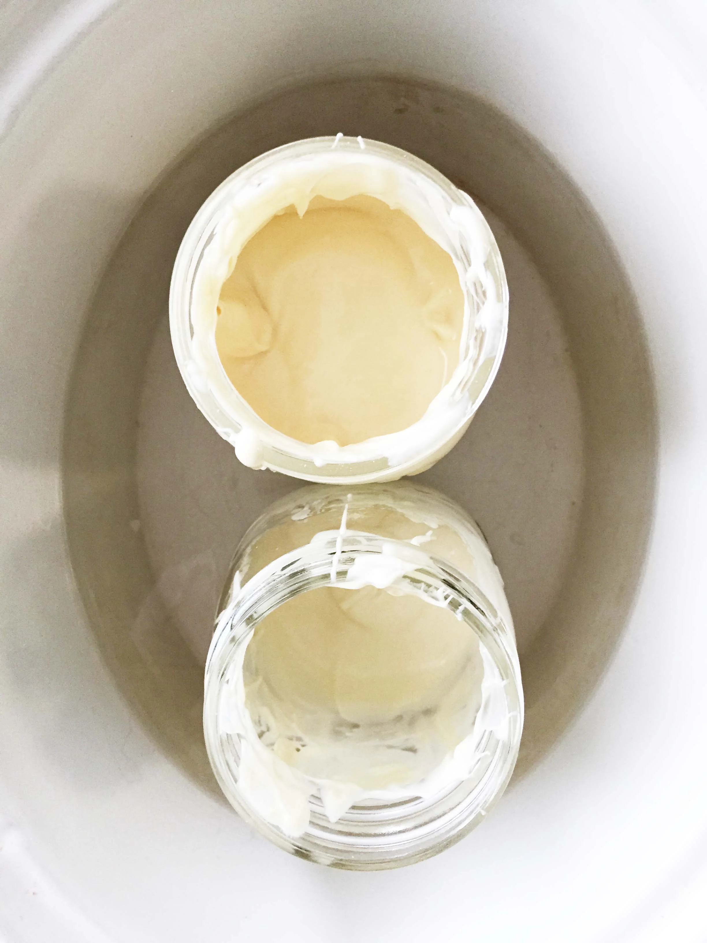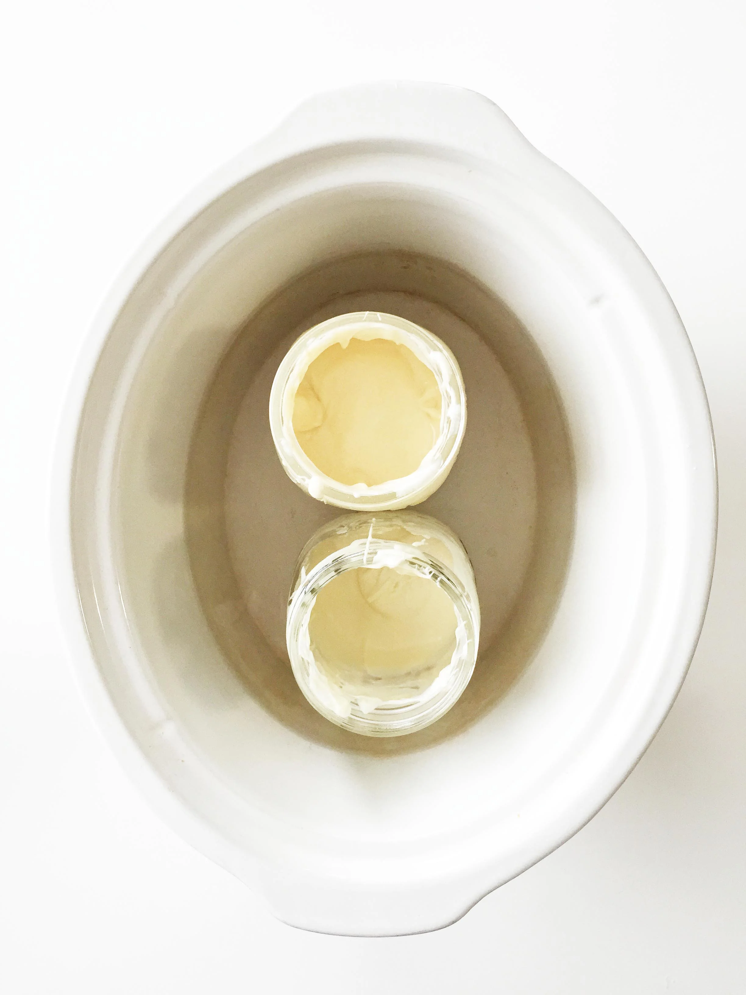 Carefully add water to the base of the crock pot to reach about halfway up the jars.