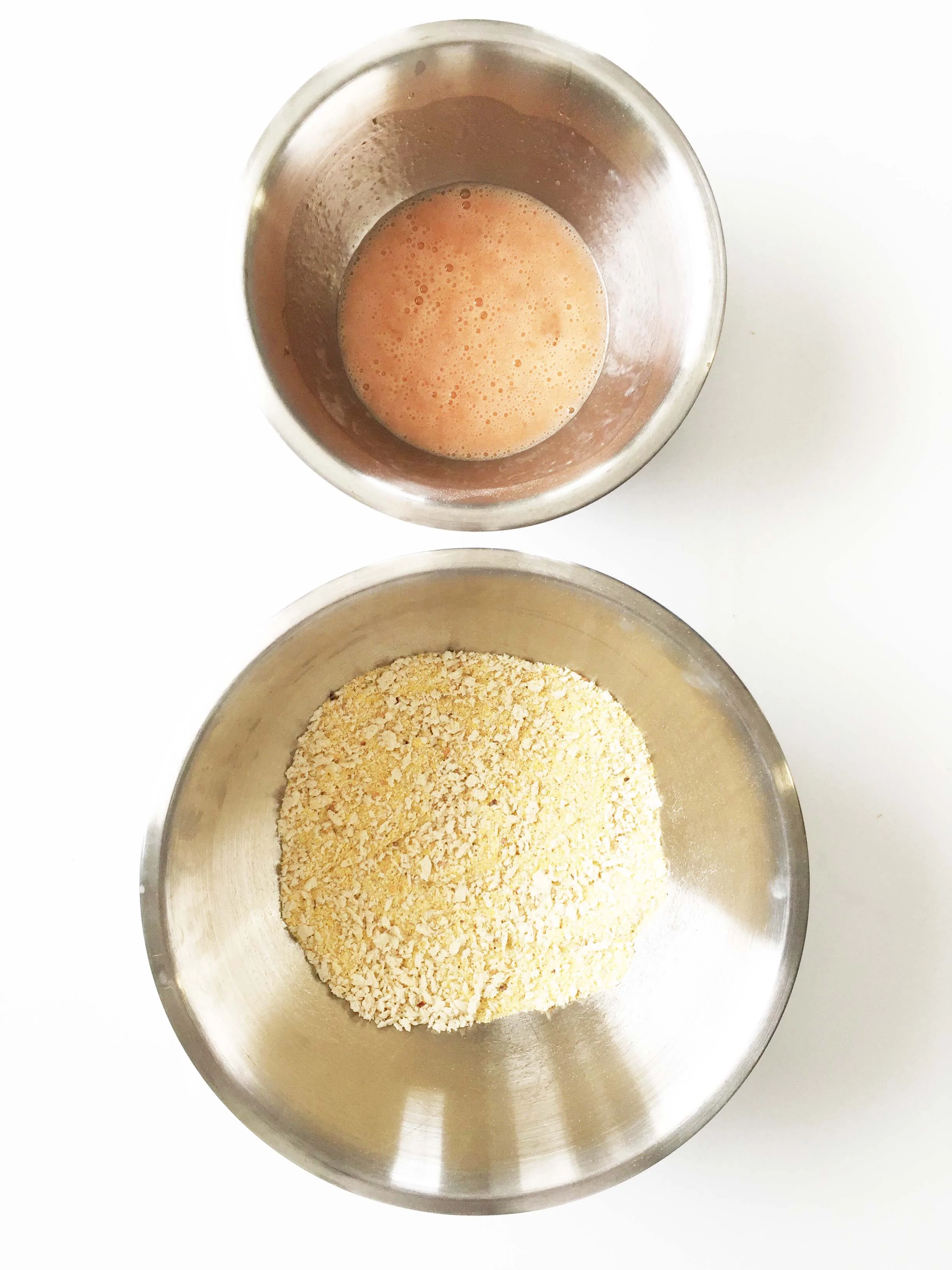In another bowl whisk together the 2 egg whites, 2 Tbsp. milk, and 2 Tsp. buffalo sauce.