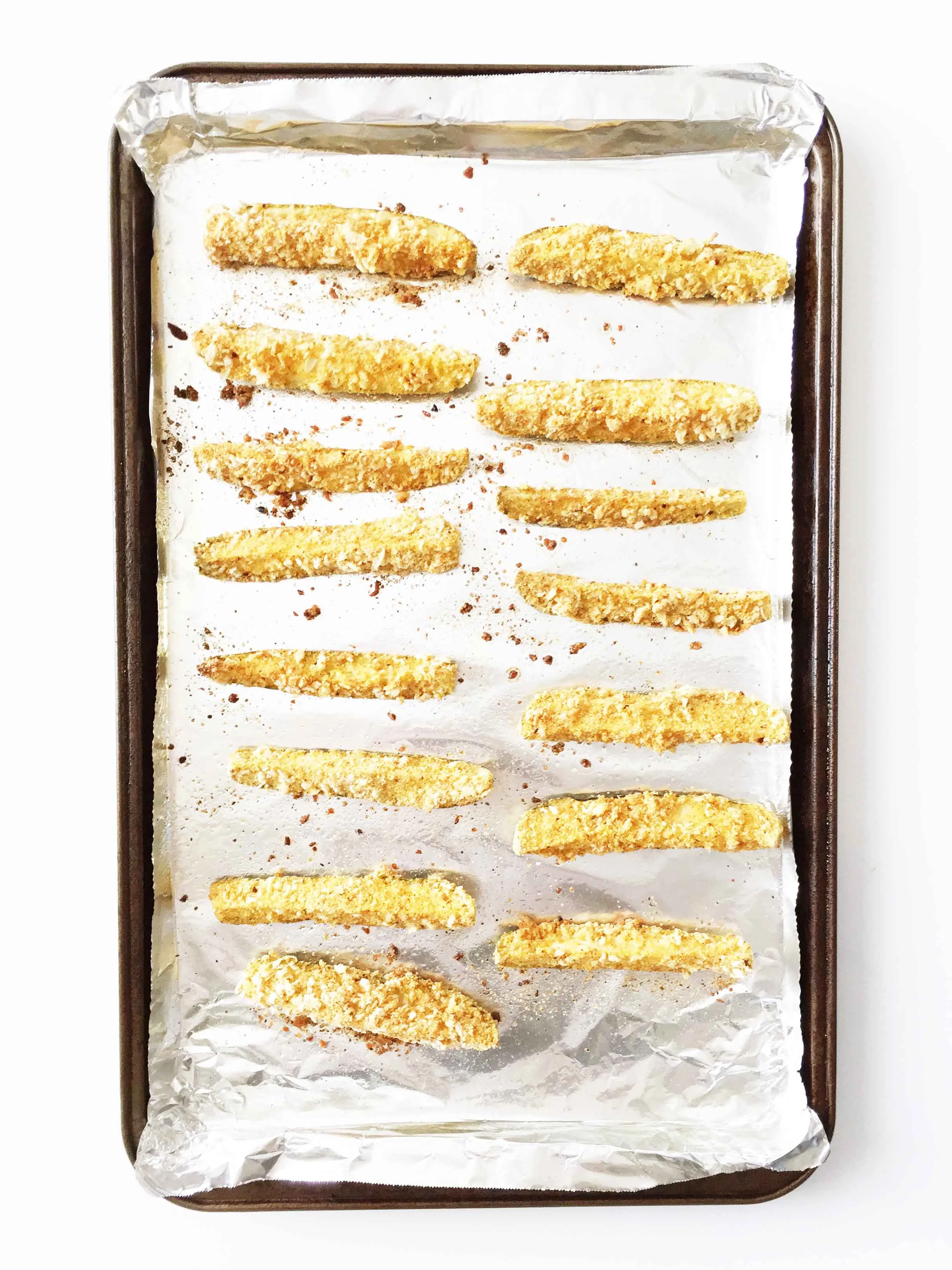 These pickles turned out fabulous! They were full of flavor and perfectly crisp without having to fry anything; which can be a tricky thing to accomplish. We all agreed that these faux fried pickles were actually more crispy than the ones we had come to know and love.