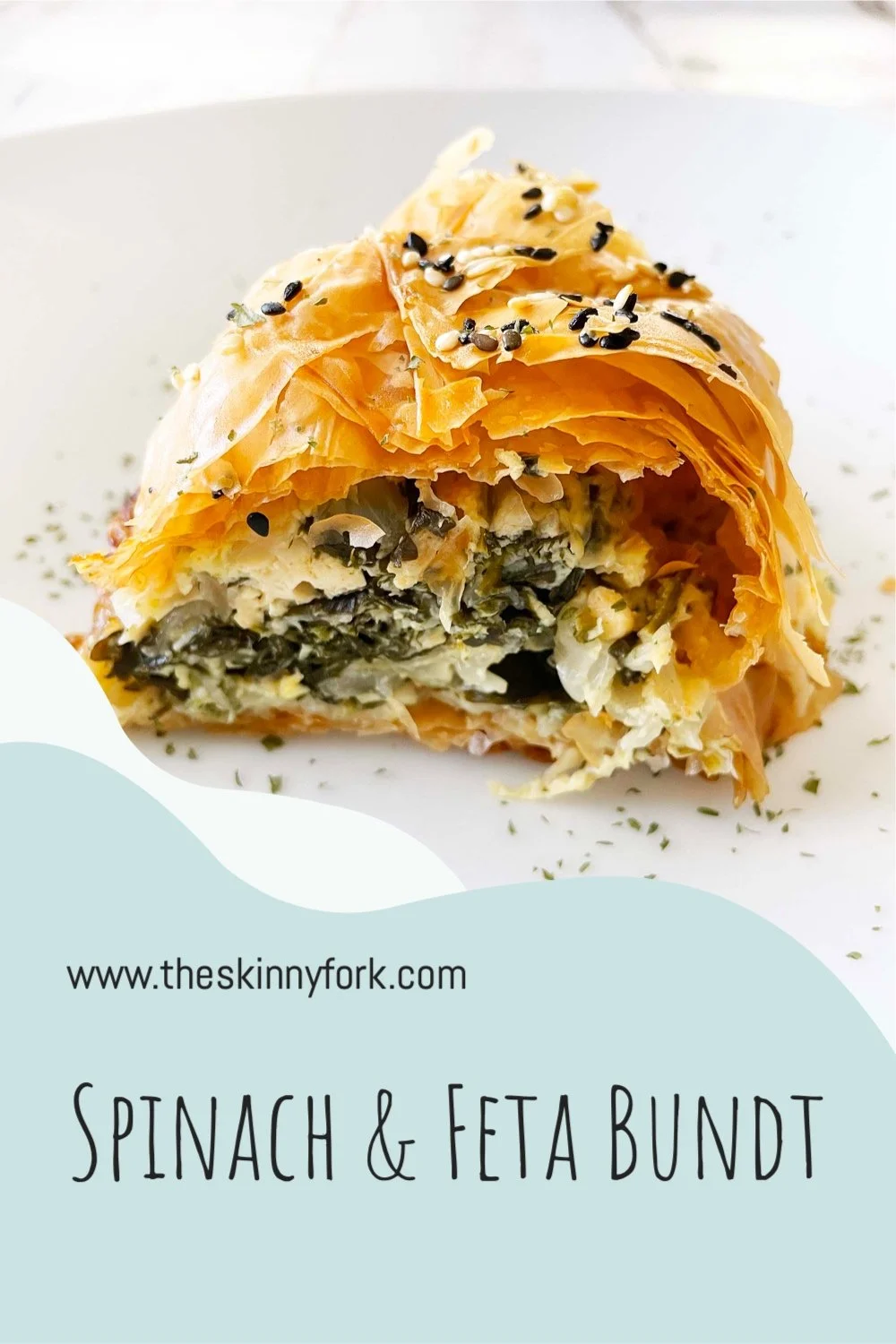 The original idea for this bundt looked pretty good. Sort of like a bundt version of a spanakopita, but I really wanted to put a healhified twist on it by swapping out the feta with a reduced fat version and using a whole lot less butter too! Other than that, it’s pretty much the very same.