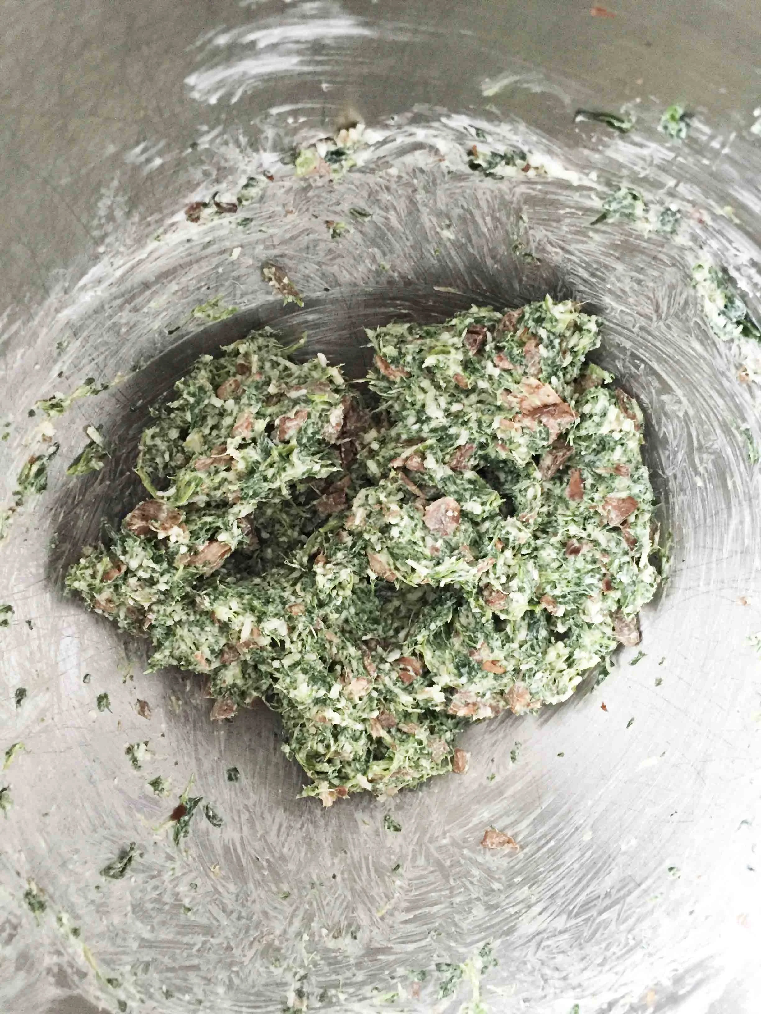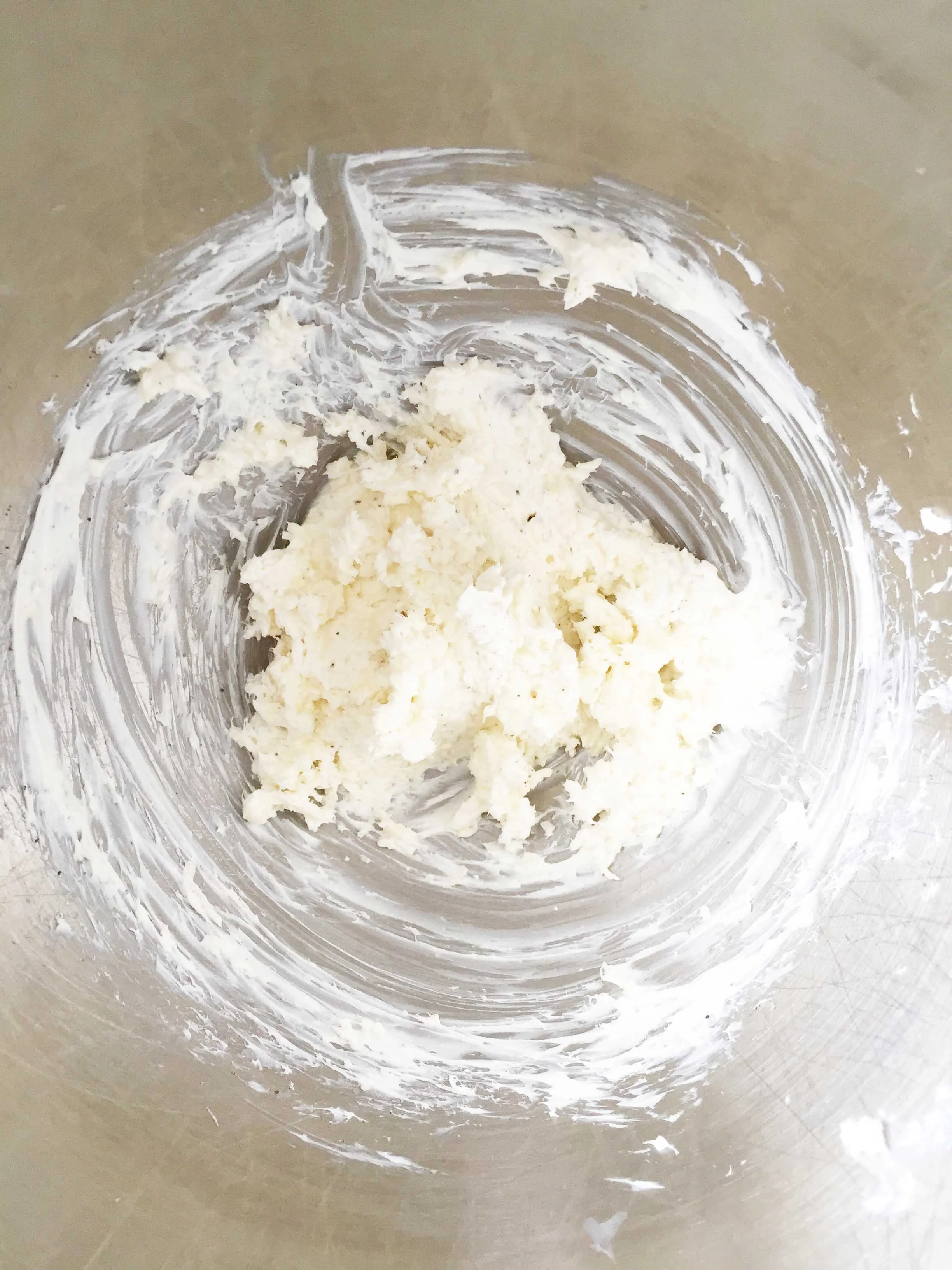 Beat together the 4 Oz. cream cheese, 1/2 C. shredded cheese, salt and pepper to taste until well combined.