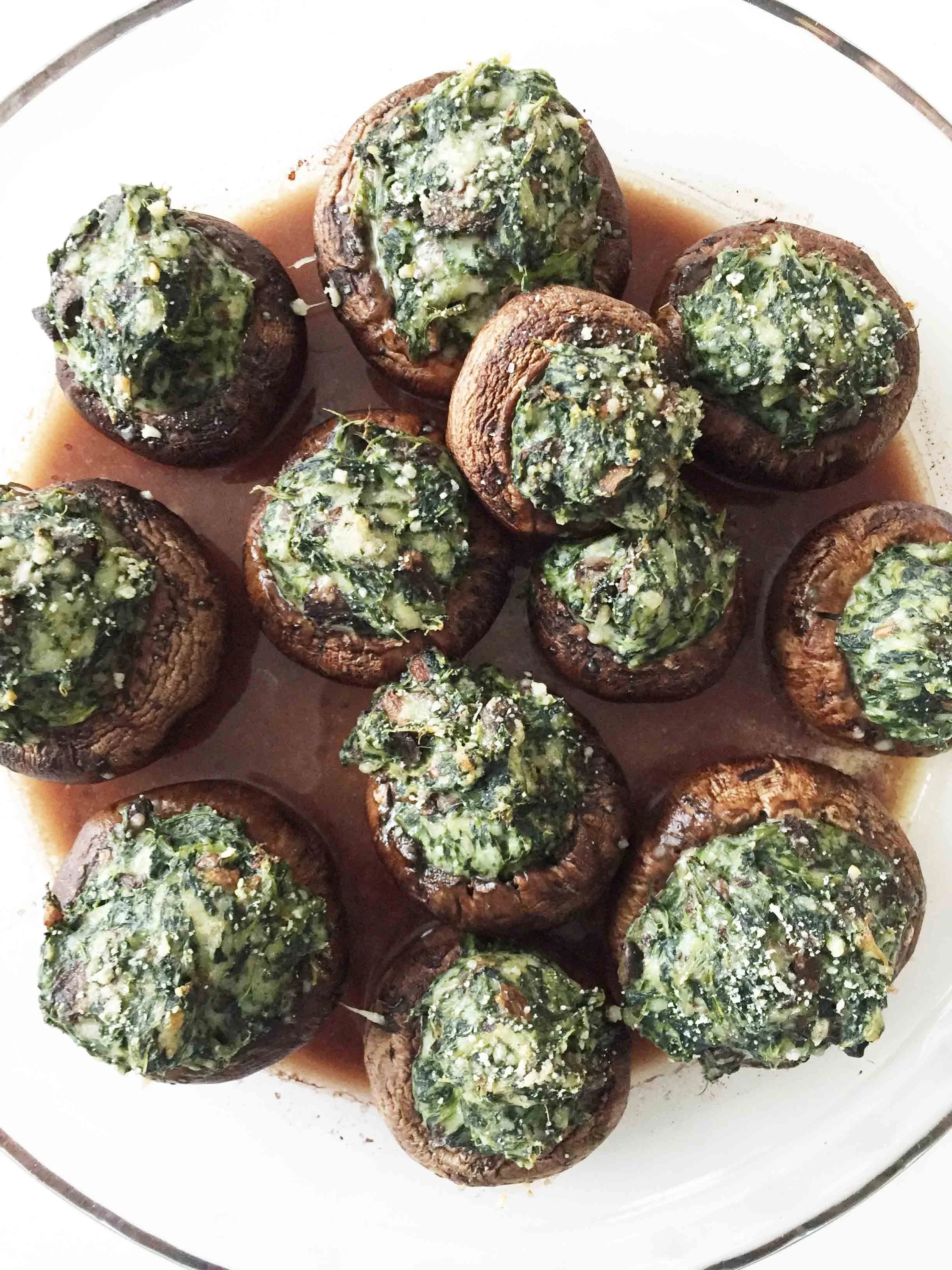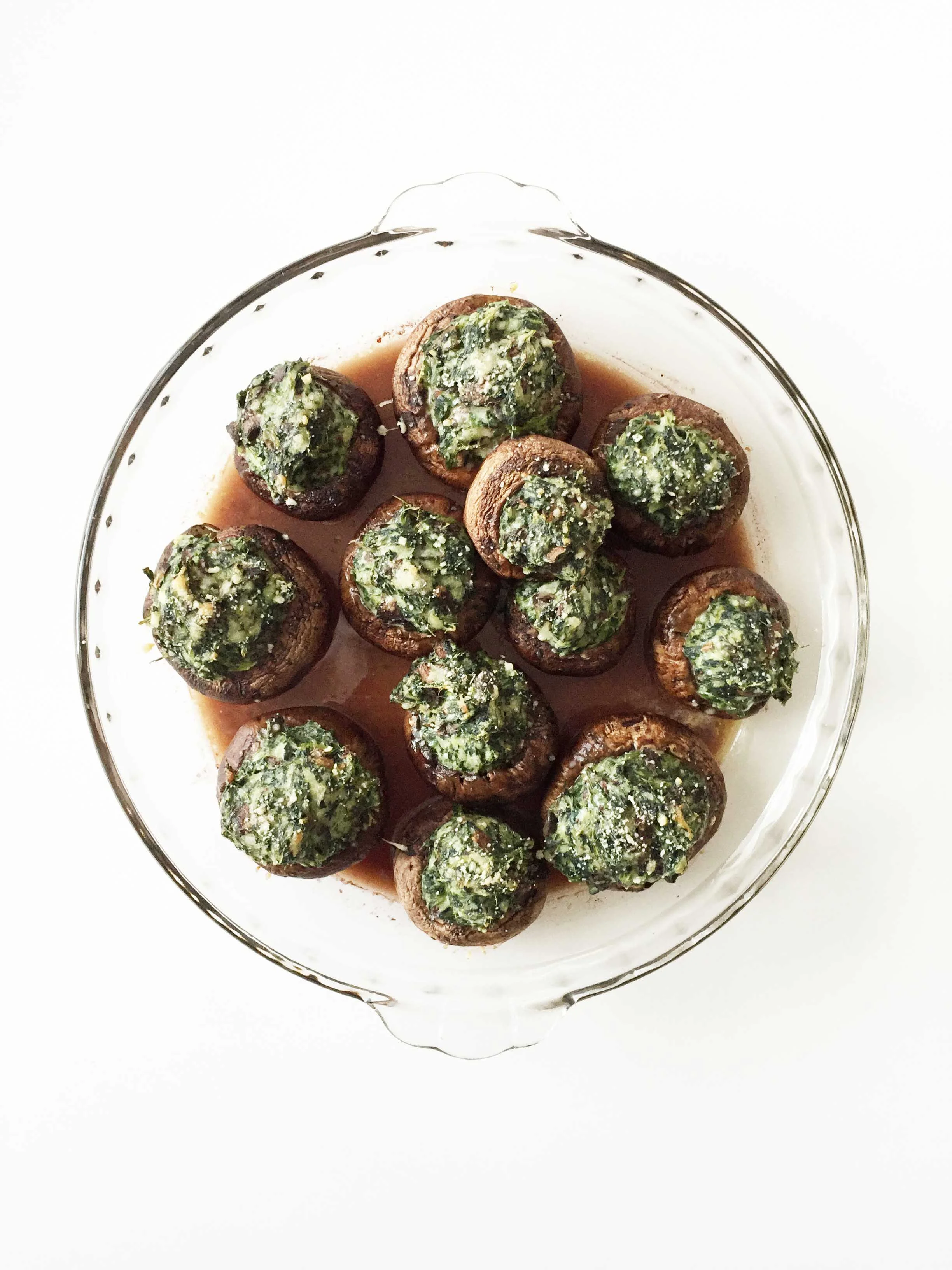 Spoon the spinach mixture into the mushroom caps to divide evenly.