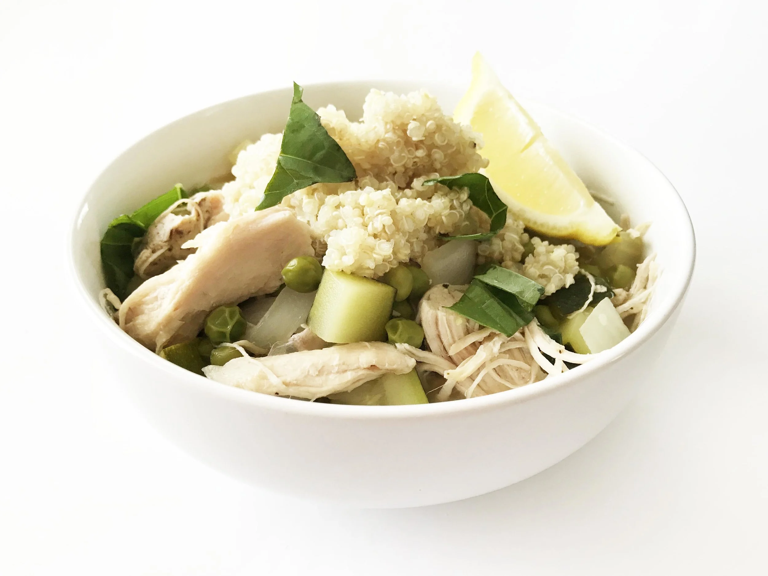 Divide the cooked quinoa evenly among bowls and top with the hot soup.