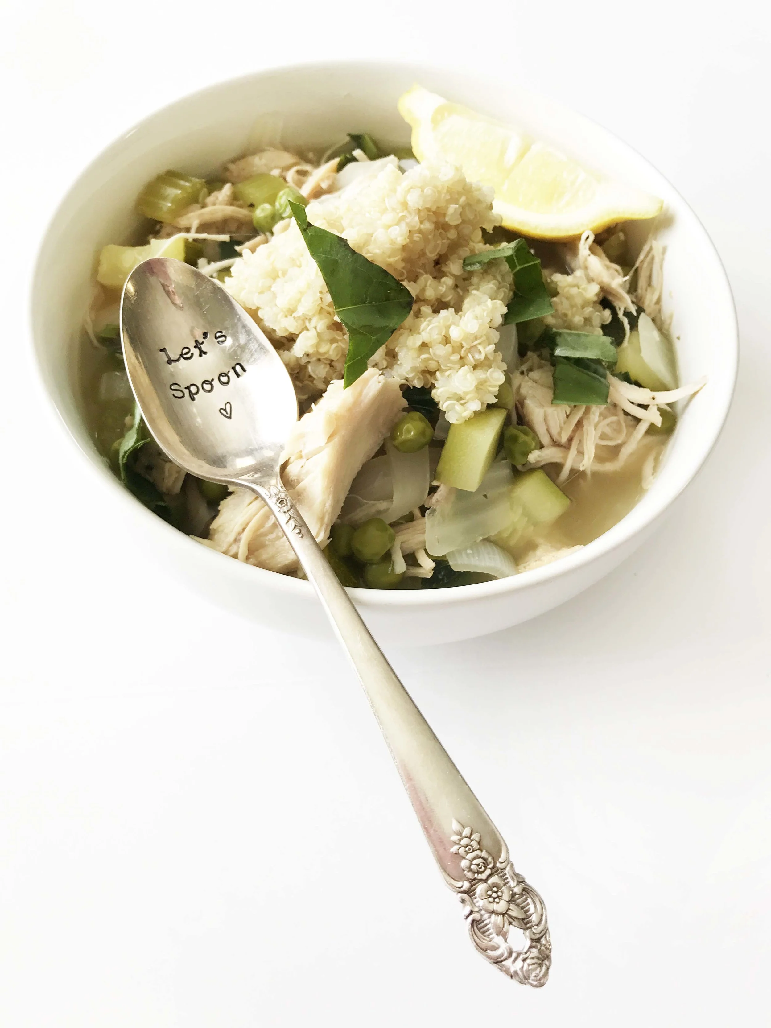 So, back to this Spring Chicken Soup! I've loaded this soup up with as many Spring-inspired fruits, herbs, and veggies as I possibly could. Peas, basil, lemon, oh my! Zucchini and some chicken too. For being a very minimal and basic soup, it's full of flavor. And even one of our more hot Spring days so far, it was perfectly delightful.
