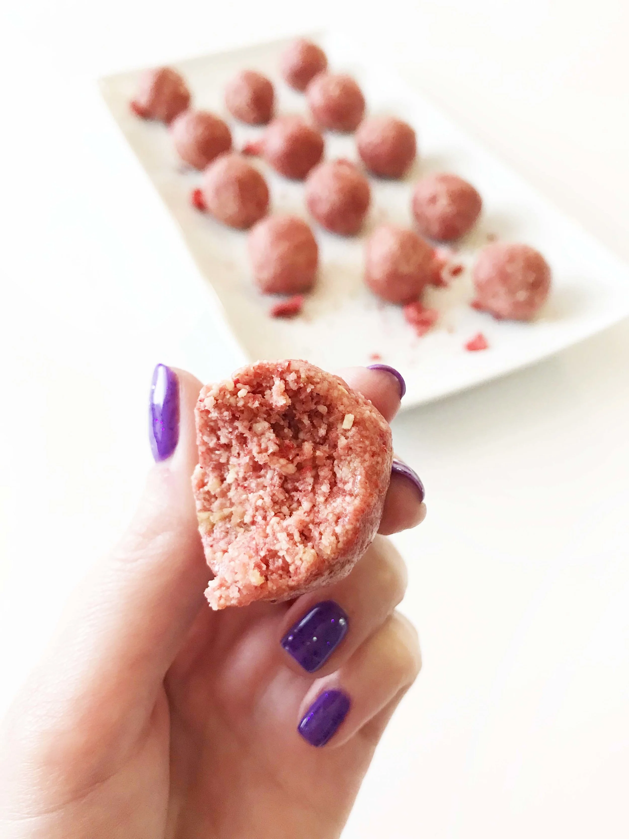 I know that for me, it's been one thing after the other. Every day there seems to be something important that NEEDS to be done. On top of all of that, I've been getting back into the swing of exercising. So right now, more than ever, my body is craving energy; every from good food and proper rest. That's why I decided to make myself these Strawberry Shortcake Energy Bites.