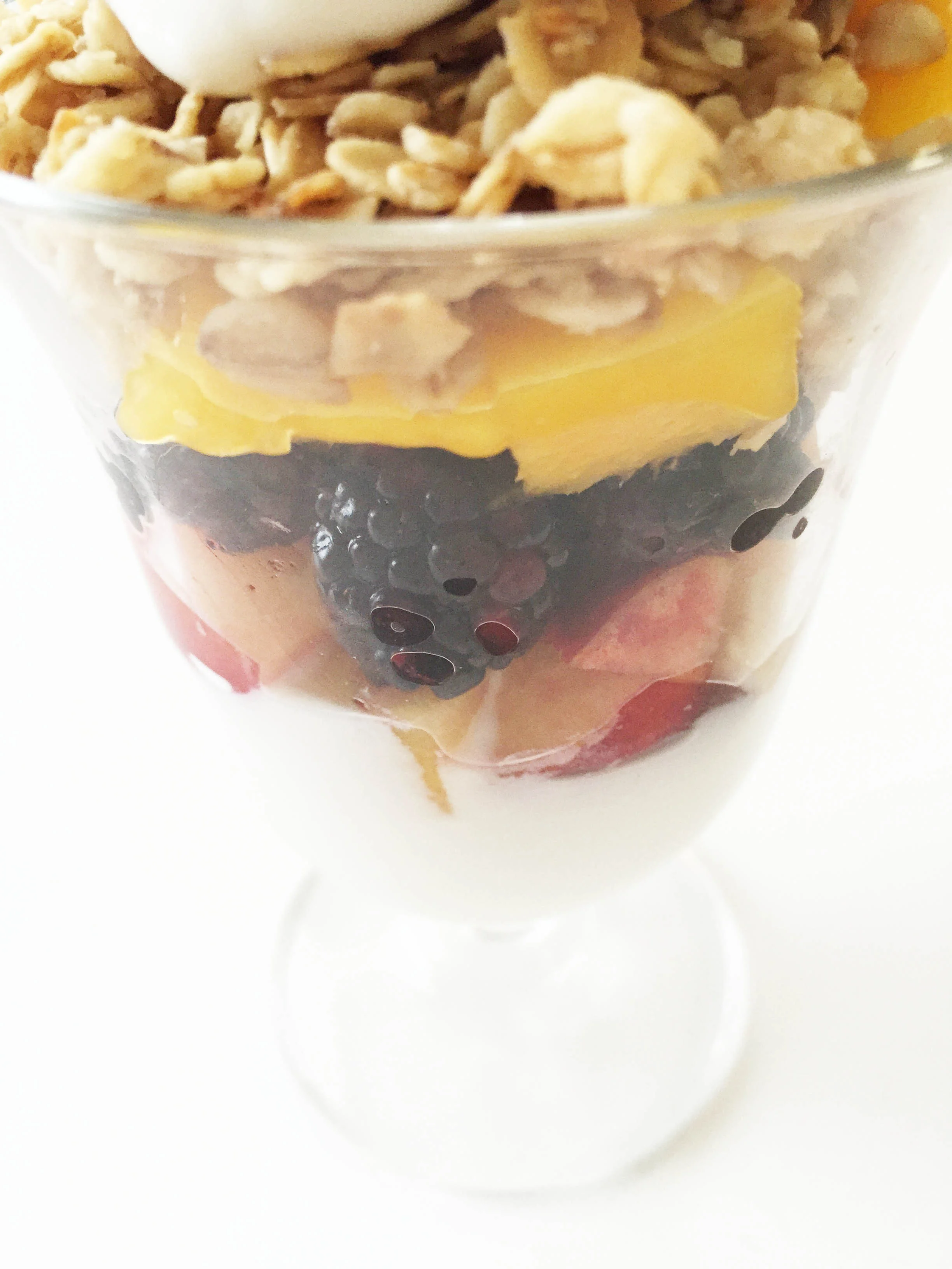 I'm calling this the 'summer' breakfast parfait because I got all these fruits in my most recent local produce box; it's always full of the most in season, ripe, delicious fruits and vegetables from our local farms here in central Texas. Since it's nearly officially summer, it's the 'summer' breakfast parfait.