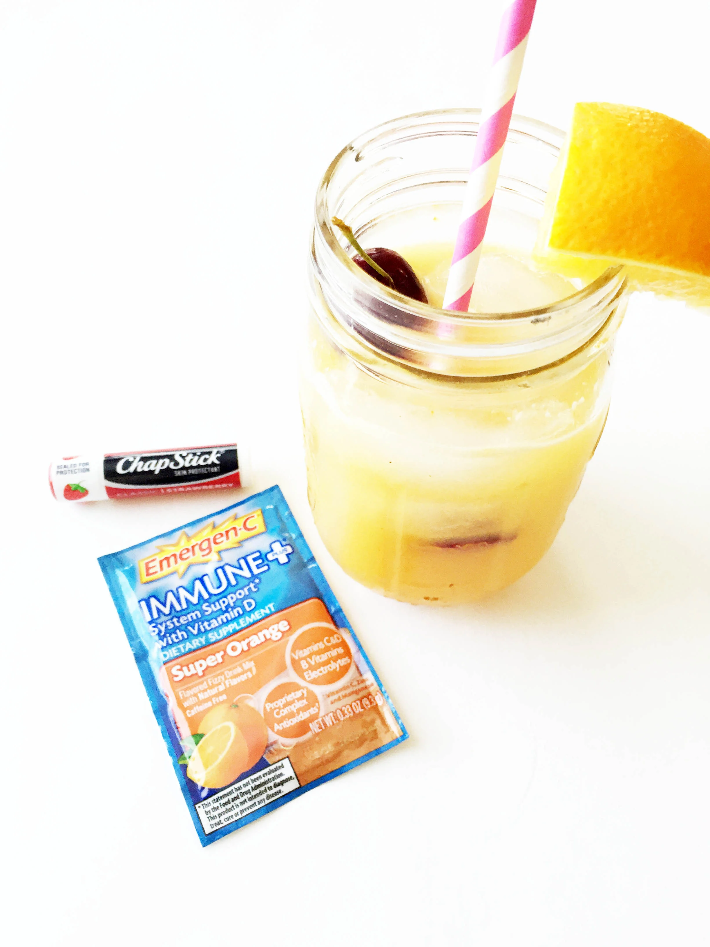 I've created the perfect drink here to help boost your immunity and get you started on your day, using Emergen-C, orange juice, limeade, and fresh fruits. Emergen-C is packed with B vitamins, antioxidants†, electrolytes plus more vitamin C than 10 oranges^. With over 20 flavors, you have plenty of delicious varieties to choose from.* For this drink I decided to go with the 'Super Orange' for the added vitamins and orange flavor to pair with my orange juice.