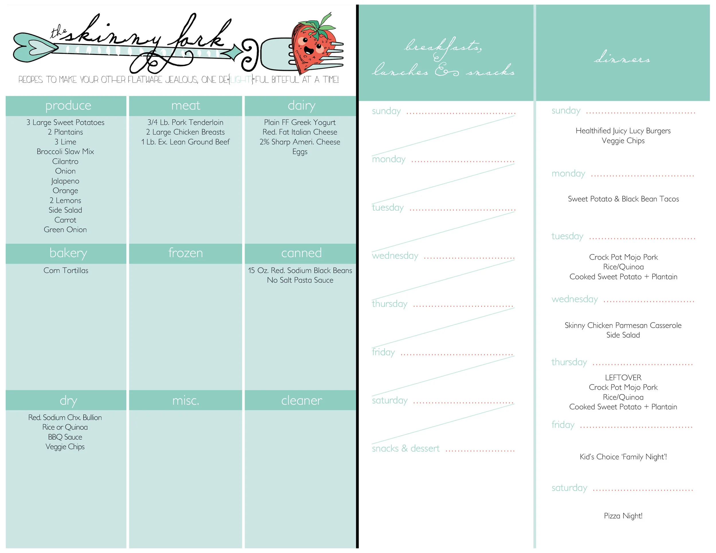 I've also created the shopping list with the notion that you have basic spices and pantry/kitchen staples on hand. So, you'll want to double check the recipes and the shopping list to be sure that you have everything you need.