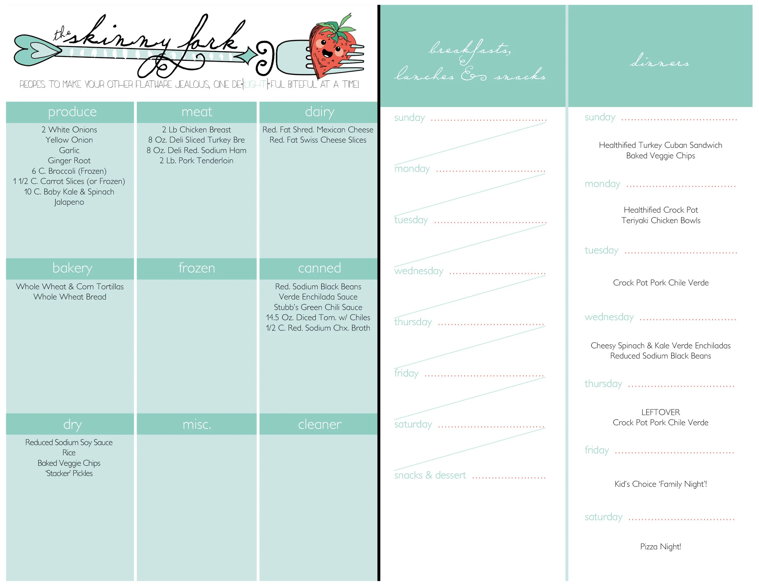 I've also created the shopping list with the notion that you have basic spices and pantry/kitchen staples on hand. So, you'll want to double check the recipes and the shopping list to be sure that you have everything you need.