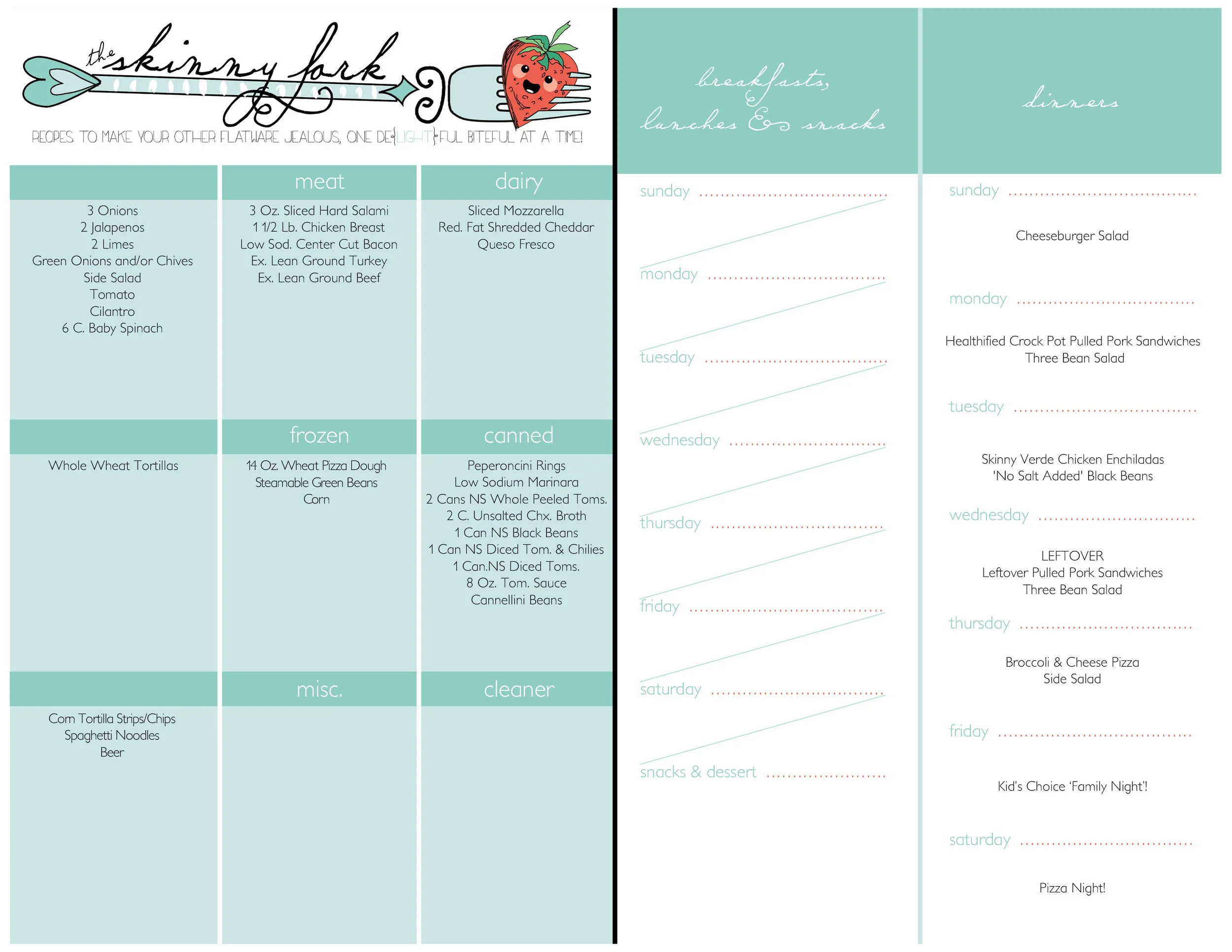 I've also created the shopping list with the notion that you have basic spices and pantry/kitchen staples on hand. So, you'll want to double check the recipes and the shopping list to be sure that you have everything you need.