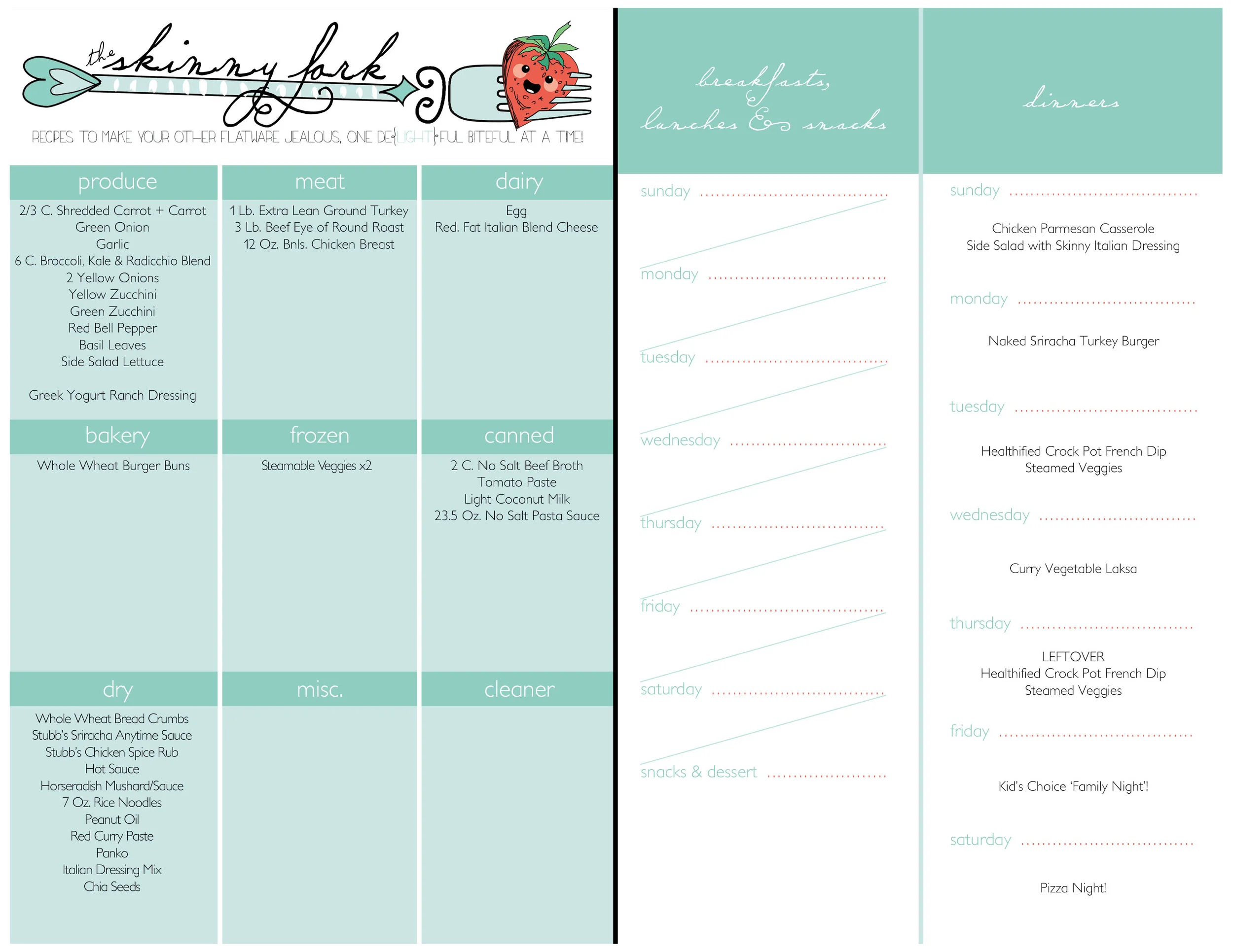I've also created the shopping list with the notion that you have basic spices and pantry/kitchen staples on hand. So, you'll want to double check the recipes and the shopping list to be sure that you have everything you need.