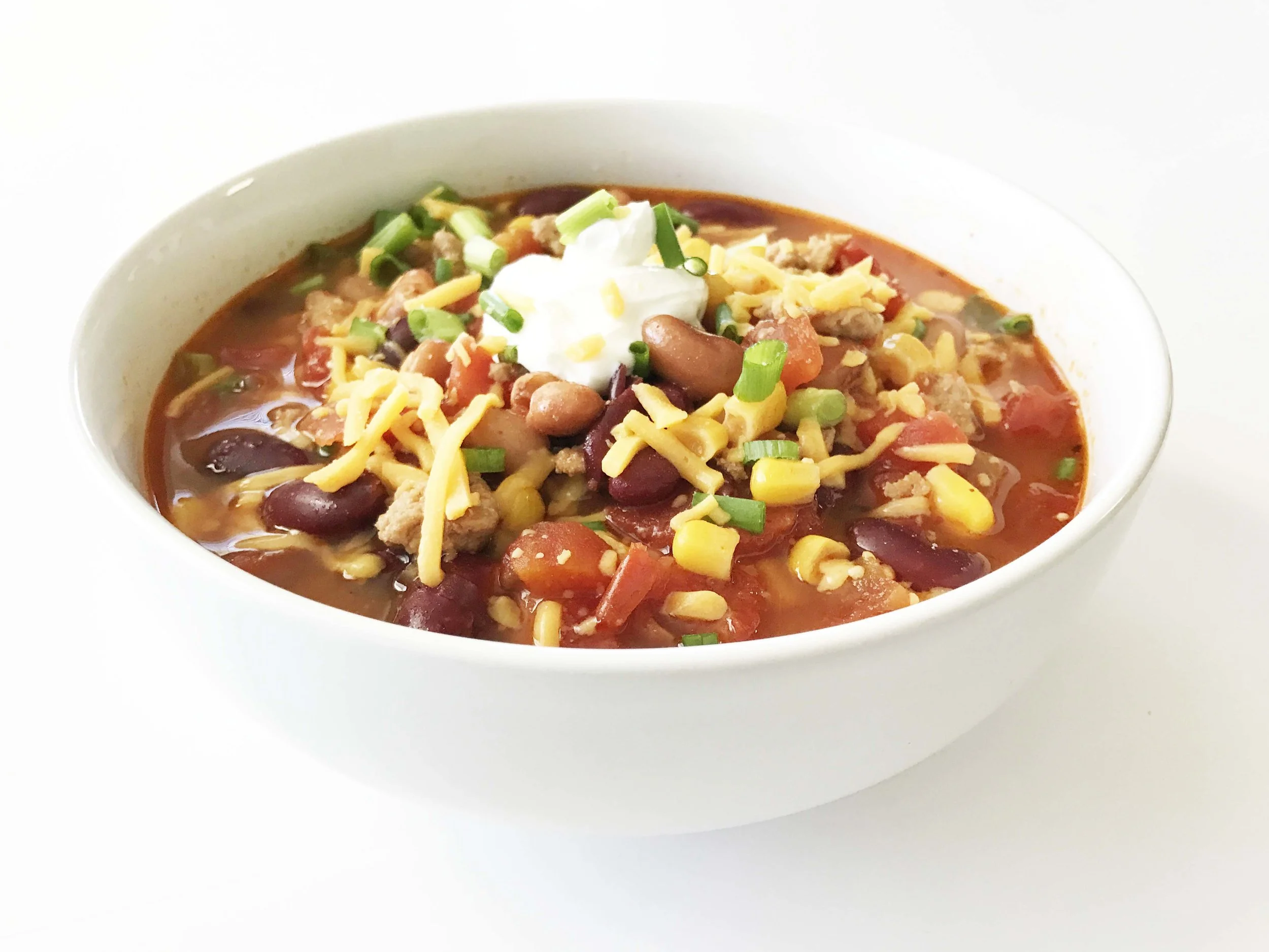 I basically lightened this soup up by using extra lean ground turkey for the meat, and my own homemade spices (though purchasing reduced sodium and salt-free packaged spices will work just as well!) I also loaded this soup up with plenty of vegetables and a variety of beans - to the point that it's almost thick enough to be a chili, which I'm not at all mad at.