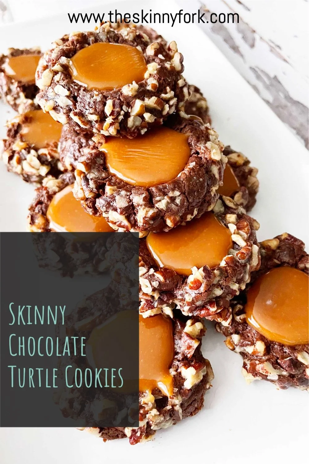These cookies have definitely become one of my favorites to make. I think that's because they remind me of one of my fondest memories from childhood. Around the holidays my great aunt would make her famous chocolate turtle. You know those lovely and addictive candies made with pecans, ooey-gooey caramel and chocolate? Yeah, those.