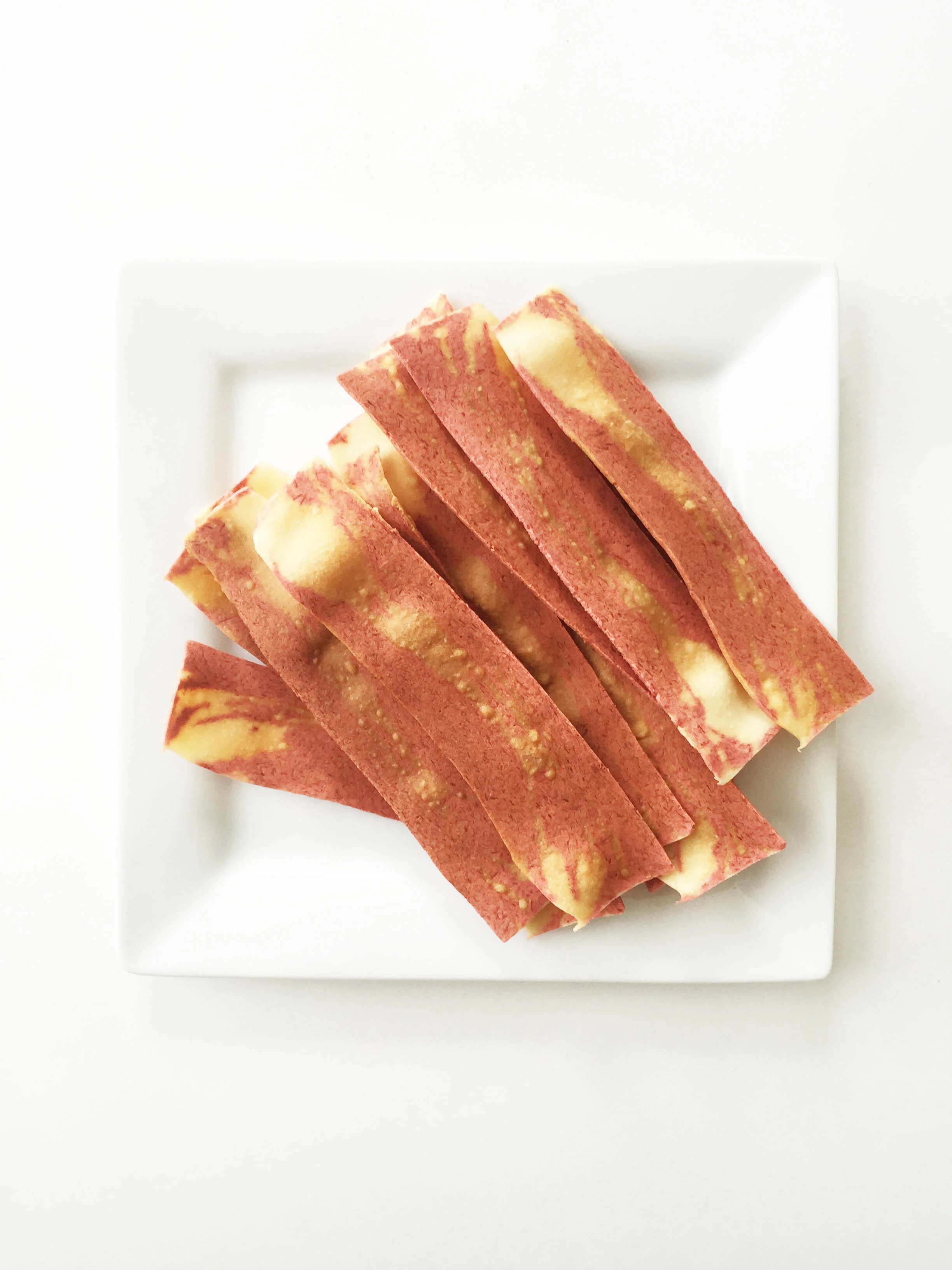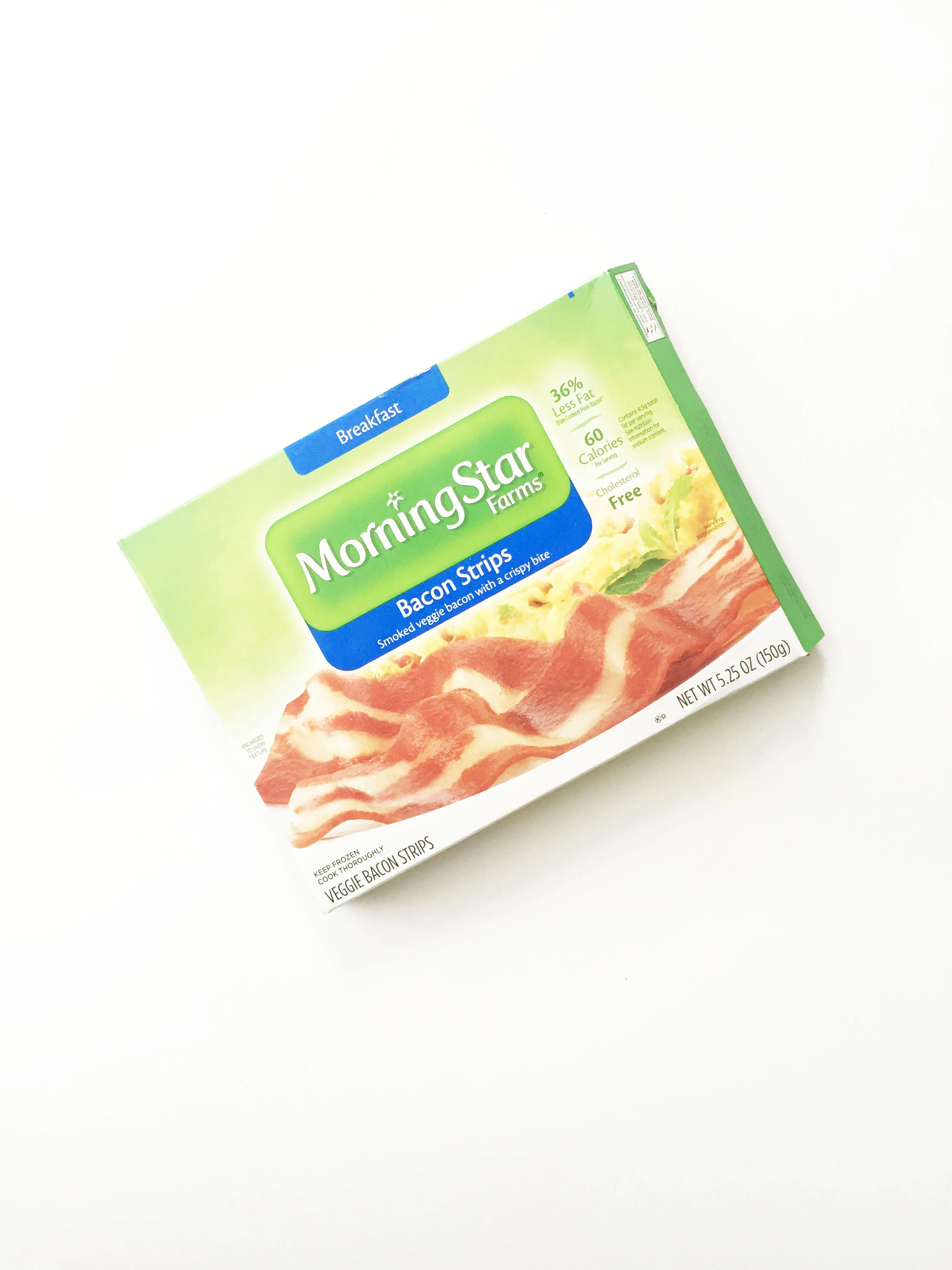 MorningStar Farms' veggie bacon strips have a great smoky flavor, and crisp right up when cooked. The veggie bacon strips also contain 36% less fat than cooked pork bacon, saving you not only fat, but calories, and guilt too!