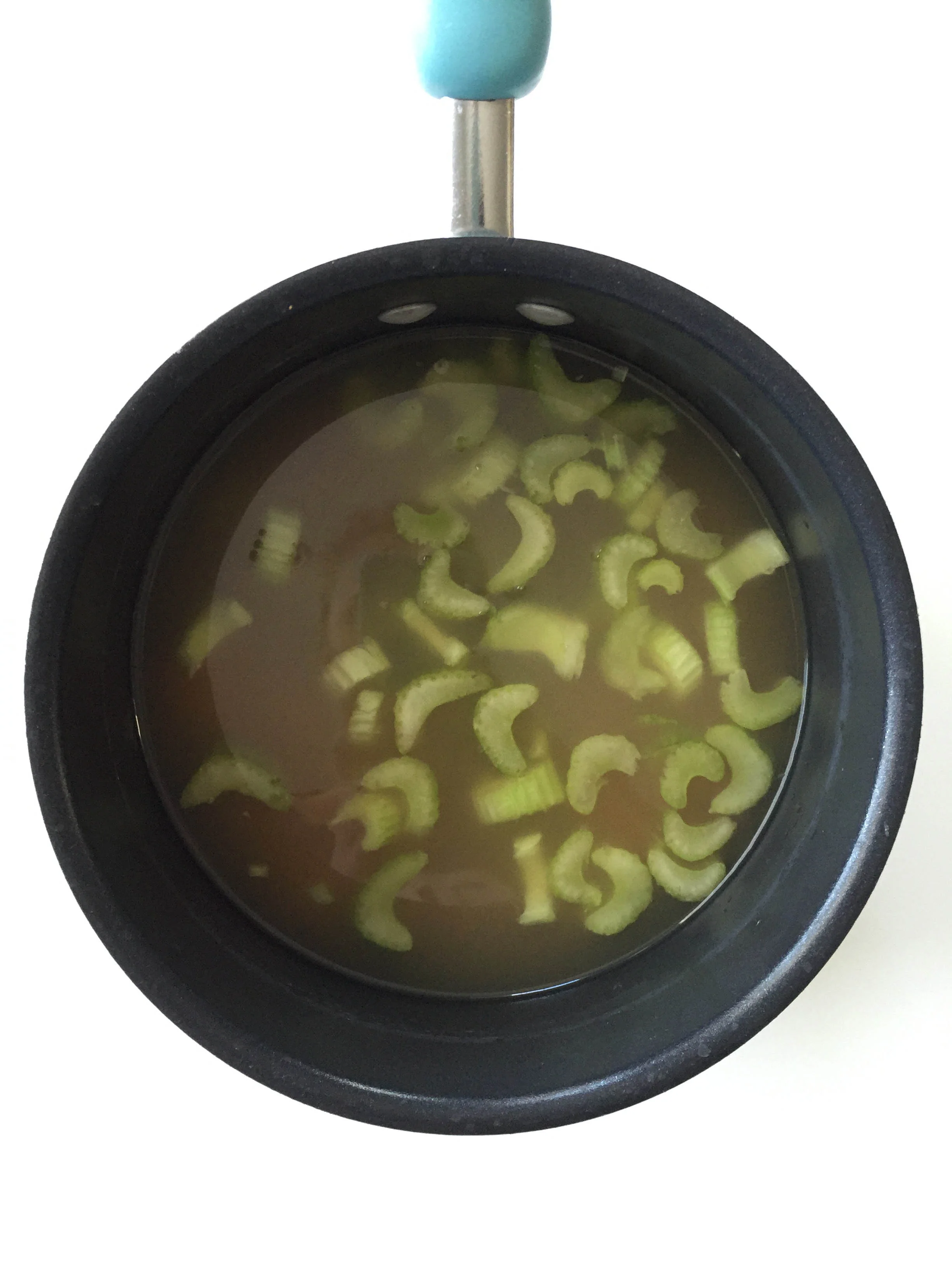 Place the 2 chopped carrots, 2 chopped celery stalks, 4 C. (1 Qt.) of broth into a large pot over high heat.