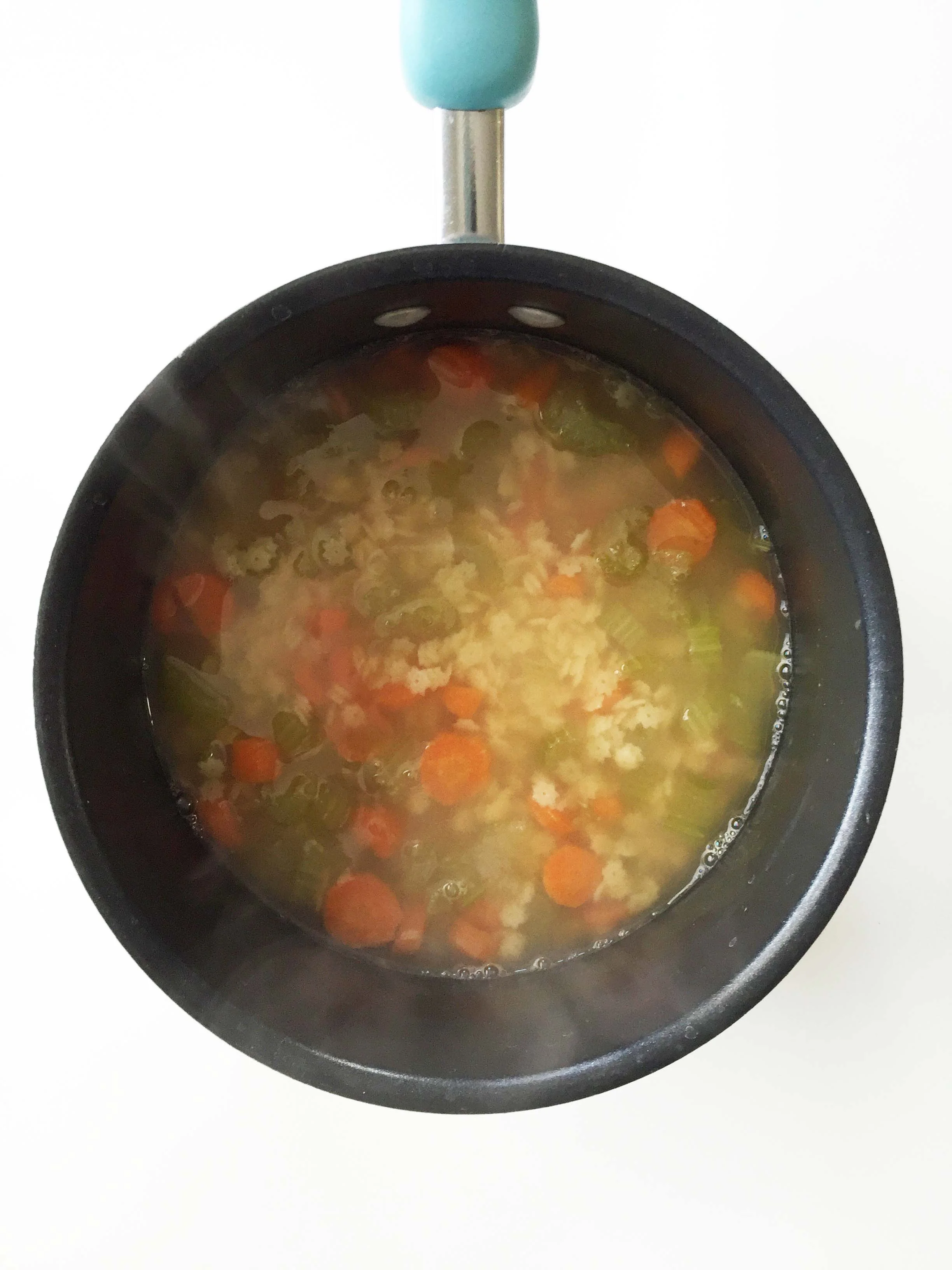 Once the veggies are tender, uncover the pot and increase the heat to bring it back to a boil.