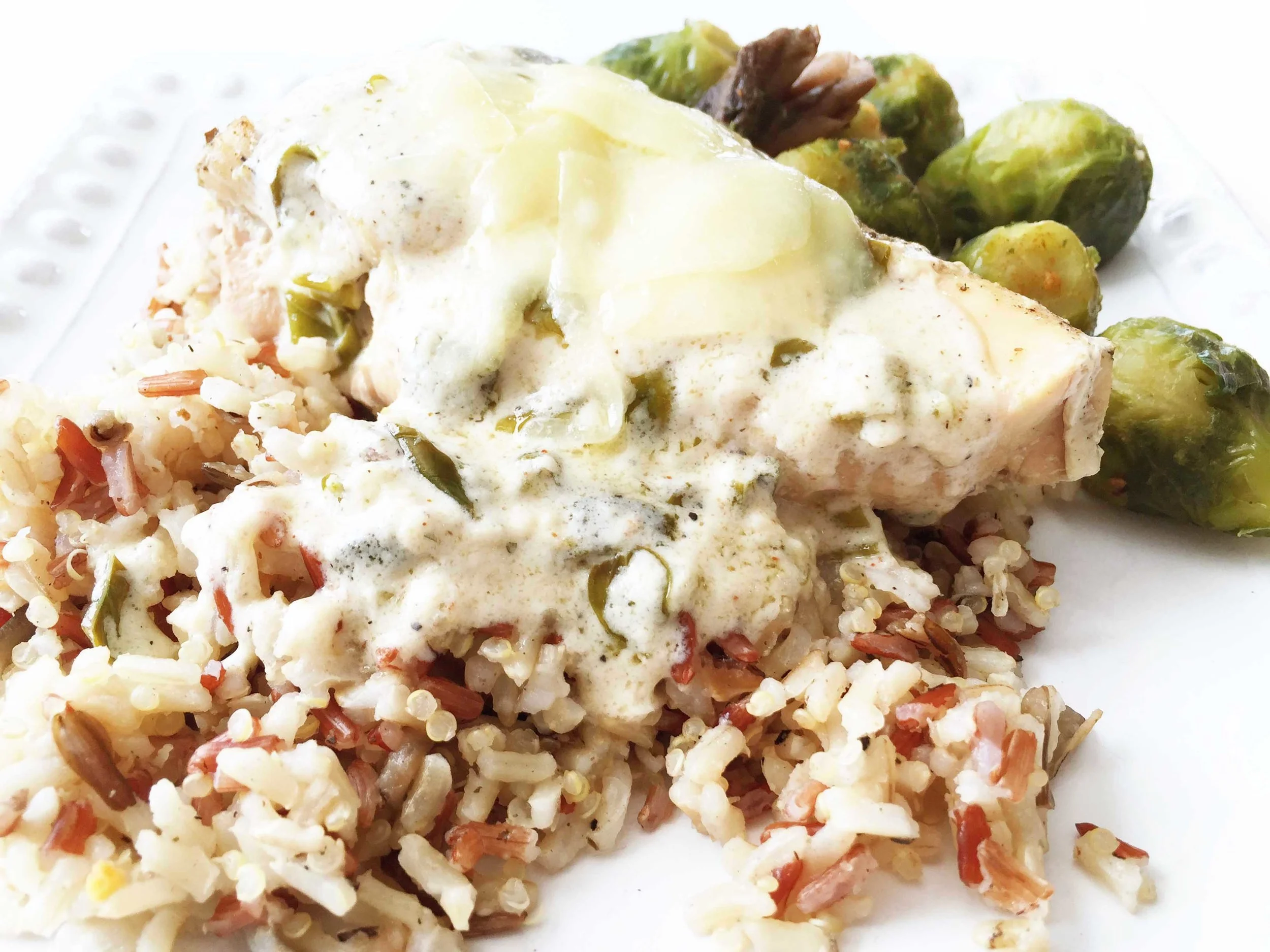 One of my favorite quotes of all times has to be, "I enjoy cooking with wine, sometimes I even put it in the food...", and today this was my mantra! I decided that in the midst of my entertaining, I would create a lightened up white wine cream sauce to pair with some lemon pepper chicken that was cooked up in the crock pot. Hey, the oven is my enemy right now when it's 100+ degrees outside.