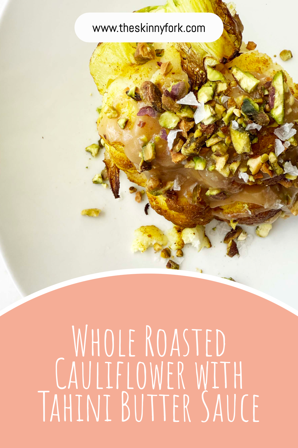 - When the cauliflower is done cooking, remove it from the oven and drizzle with the tahini butter sauce.